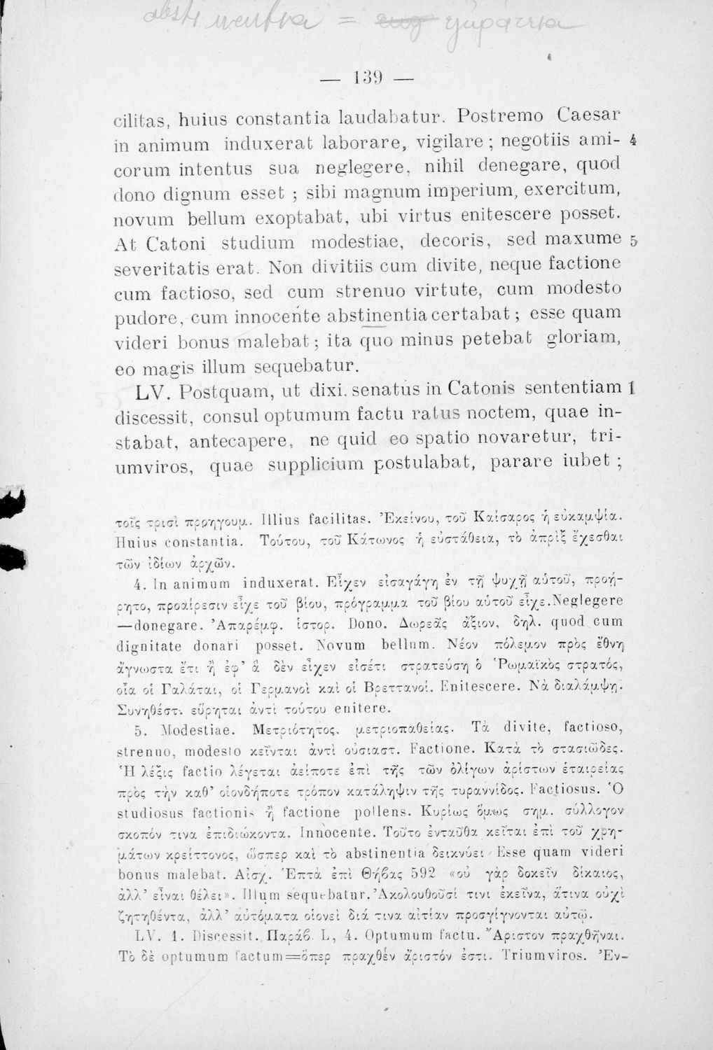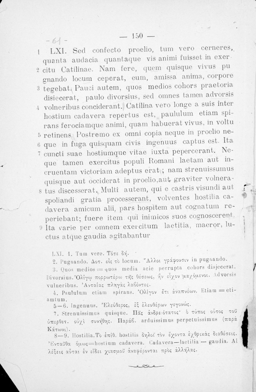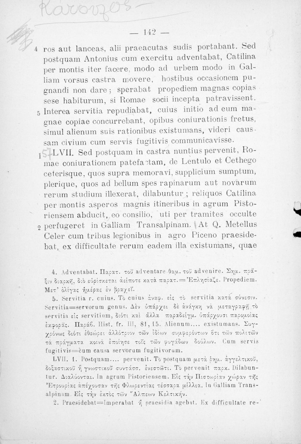 Μαθητικό βοήθημα Λατινικών που περιλαμβάνει μετάφραση του Τρίτου και Τέταρτου κατά Κατιλίνα λόγων και περίληψη της υπόθεσής τους.