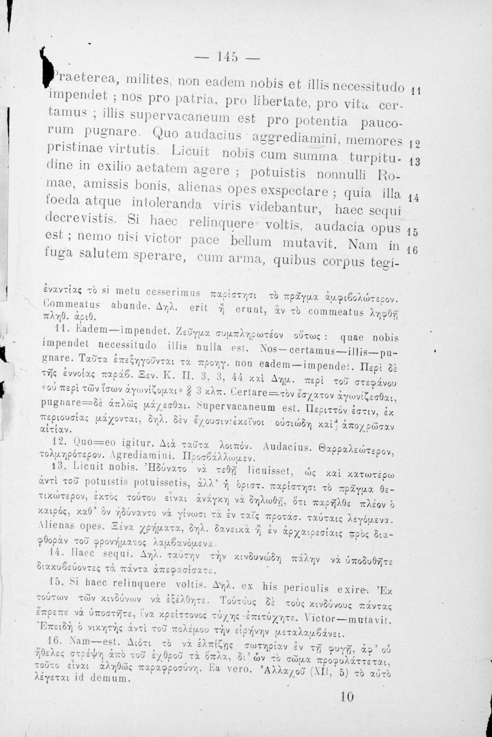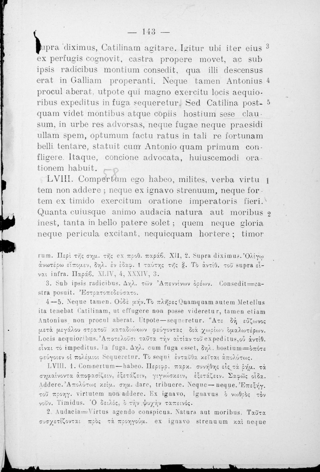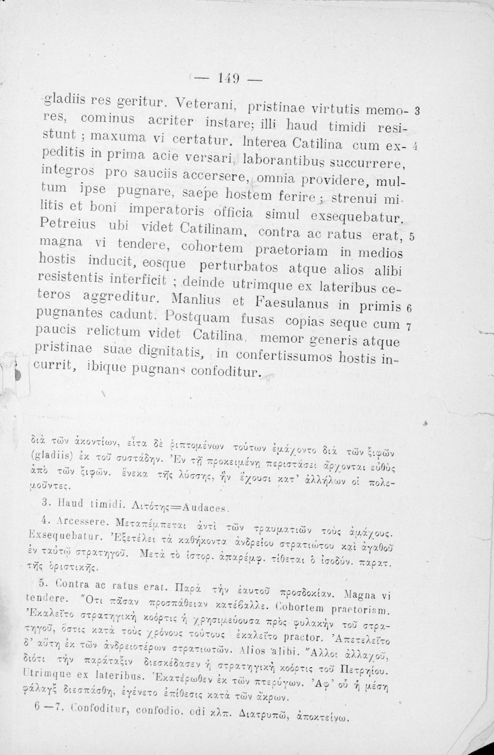 Μαθητικό βοήθημα Λατινικών που περιλαμβάνει μετάφραση του Τρίτου και Τέταρτου κατά Κατιλίνα λόγων και περίληψη της υπόθεσής τους.