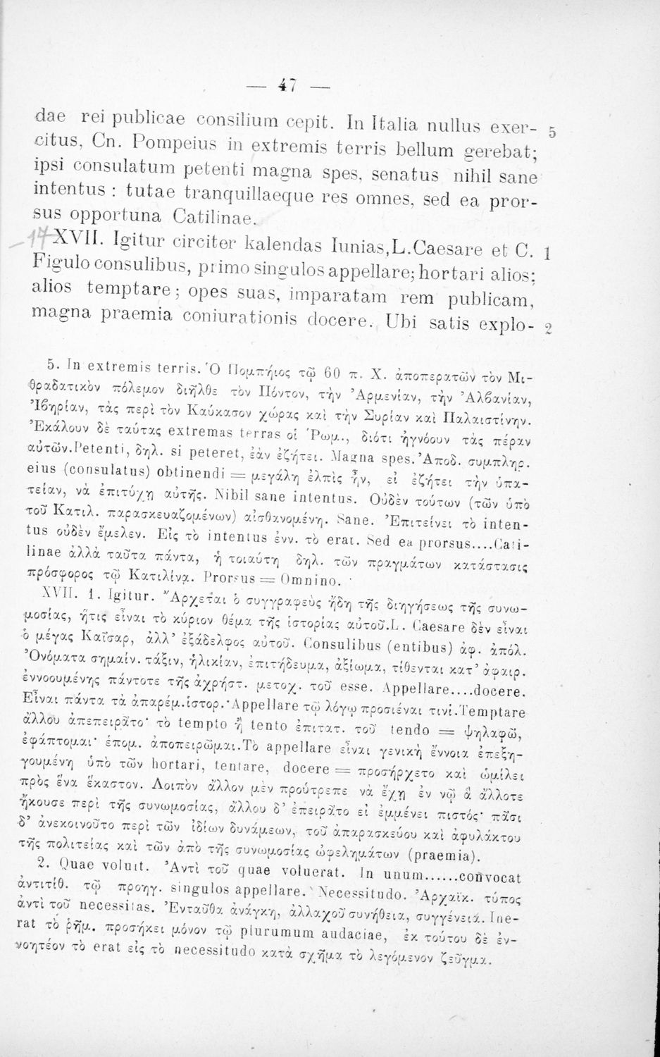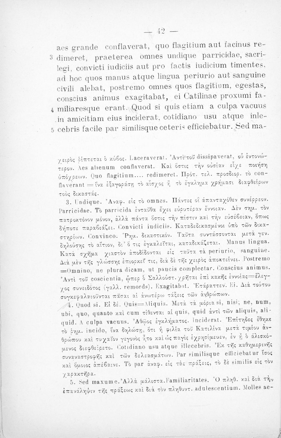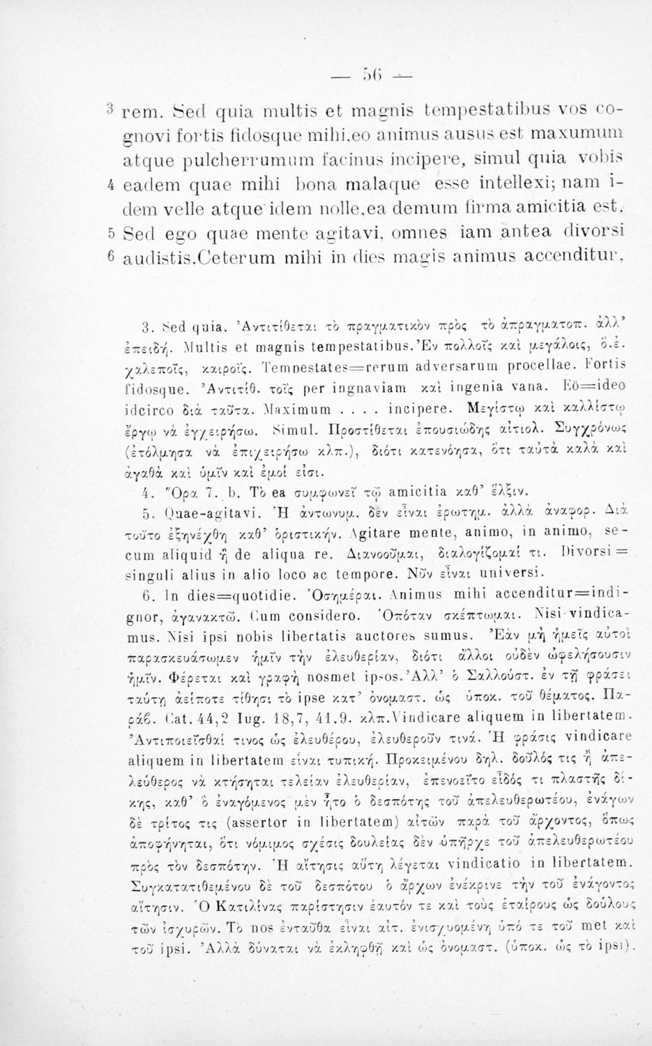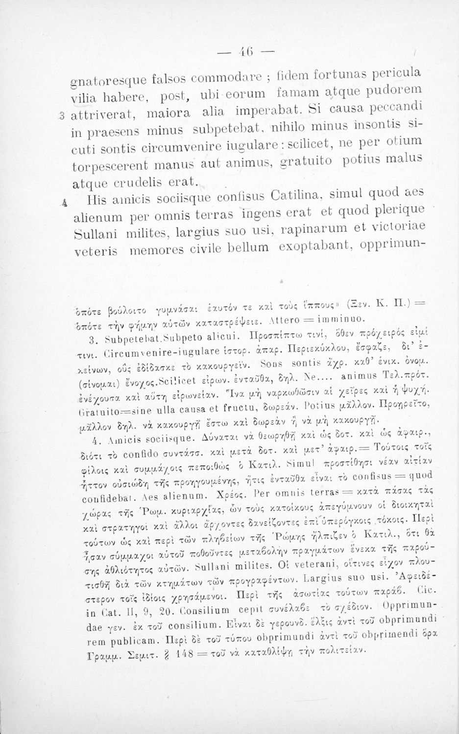 Μαθητικό βοήθημα Λατινικών που περιλαμβάνει μετάφραση του Τρίτου και Τέταρτου κατά Κατιλίνα λόγων και περίληψη της υπόθεσής τους.