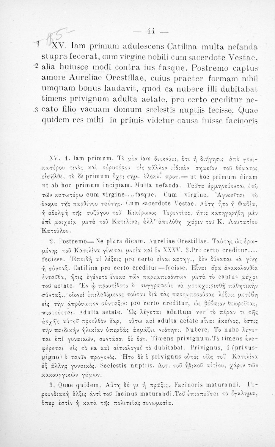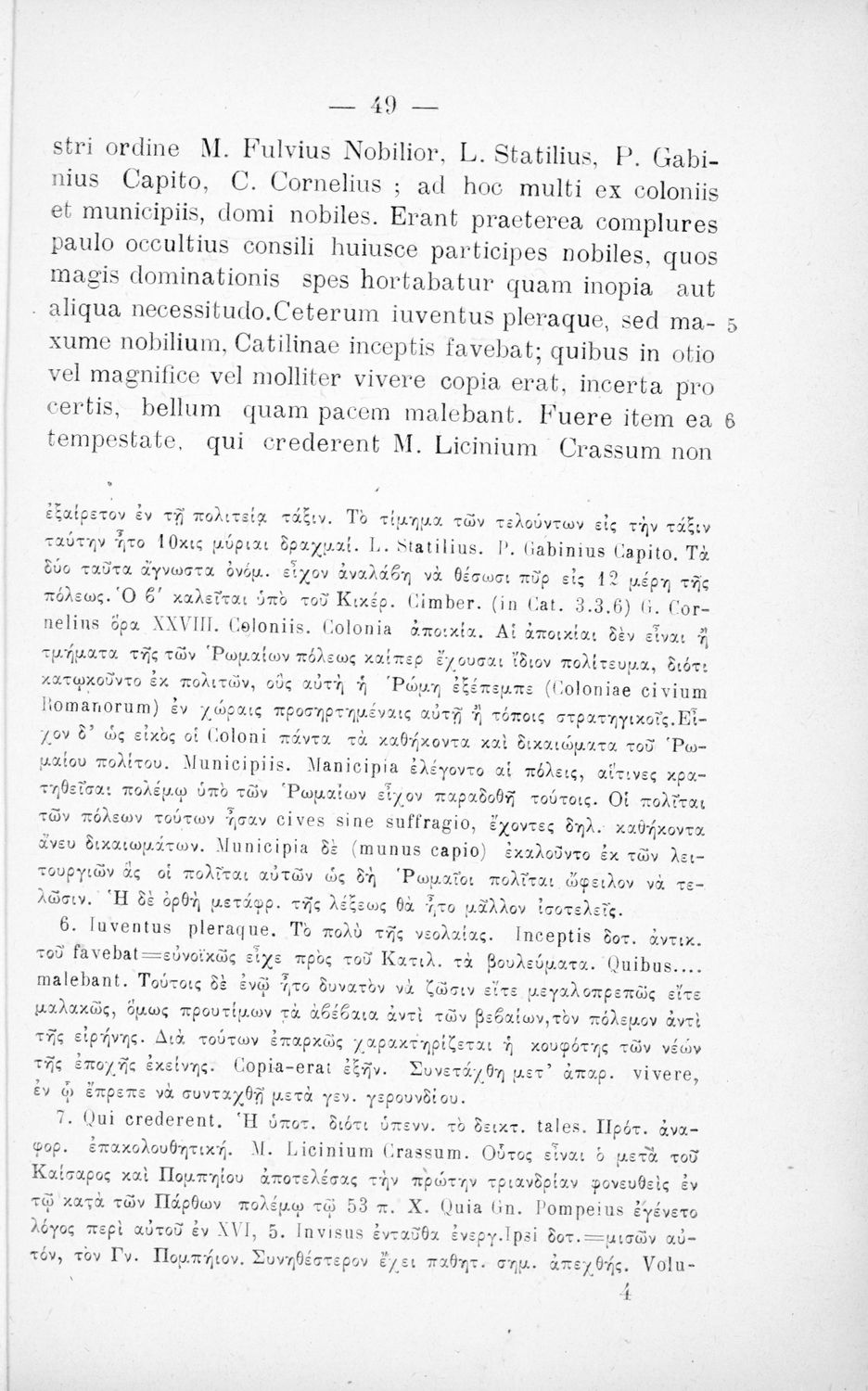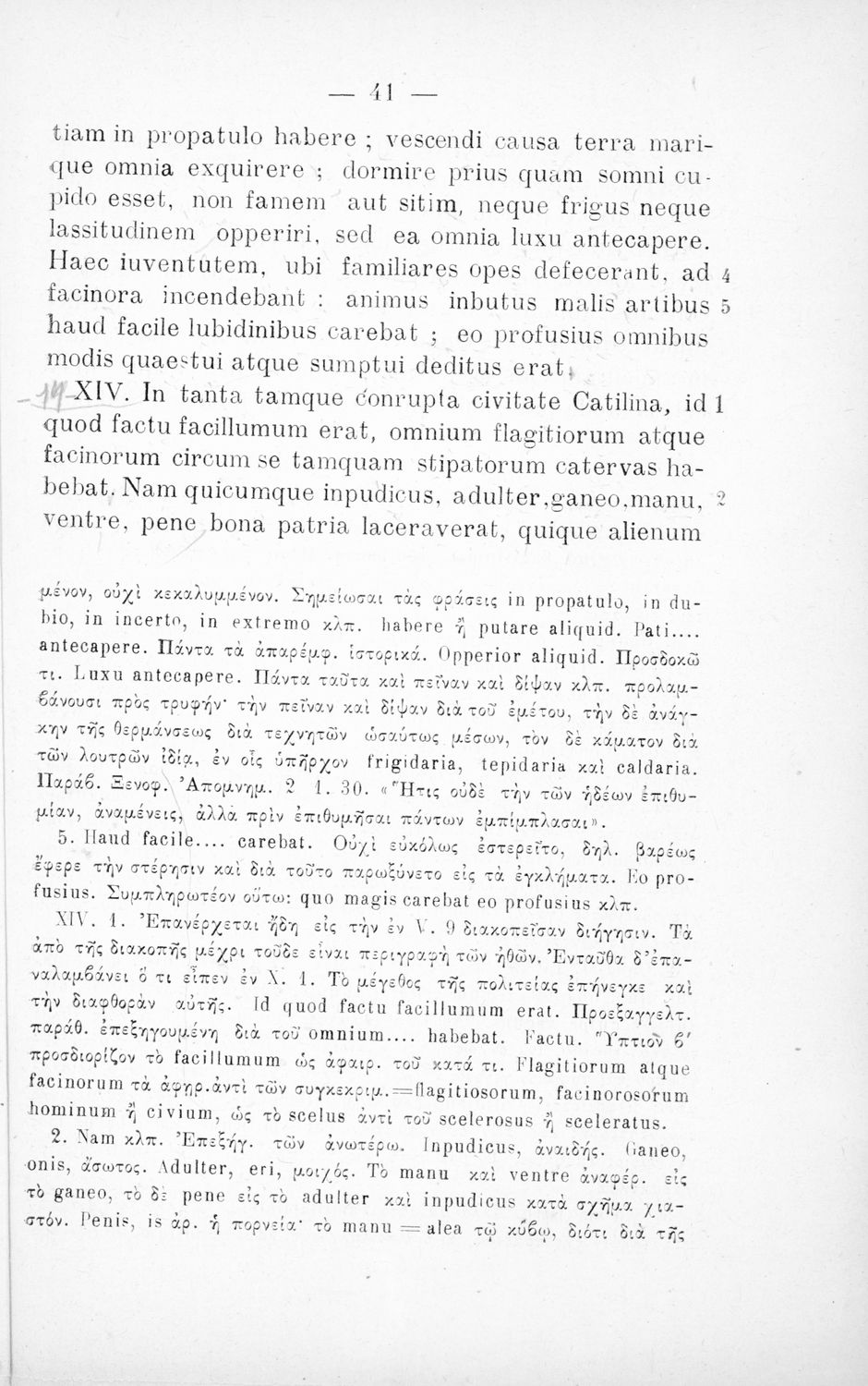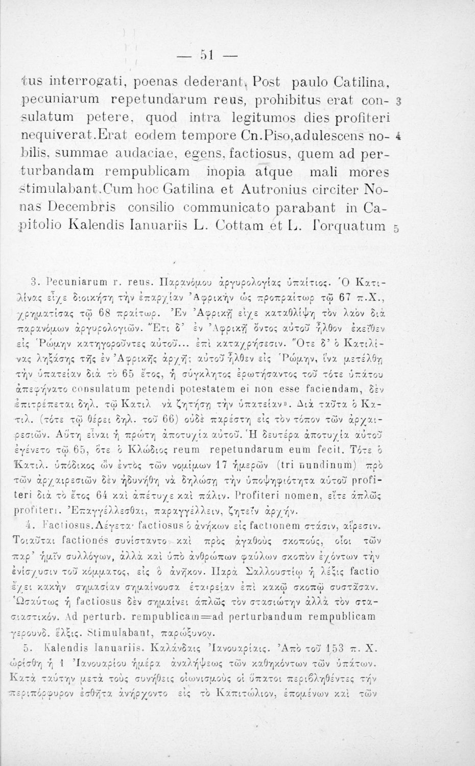 Μαθητικό βοήθημα Λατινικών που περιλαμβάνει μετάφραση του Τρίτου και Τέταρτου κατά Κατιλίνα λόγων και περίληψη της υπόθεσής τους.