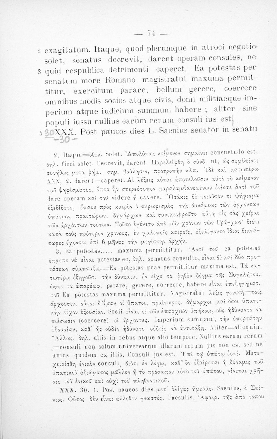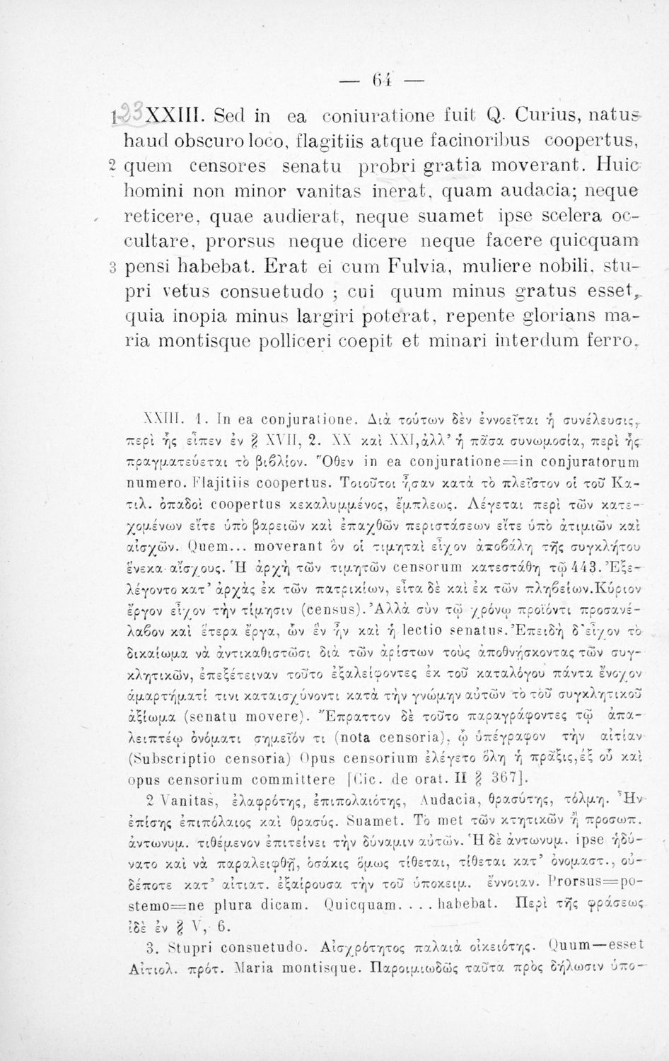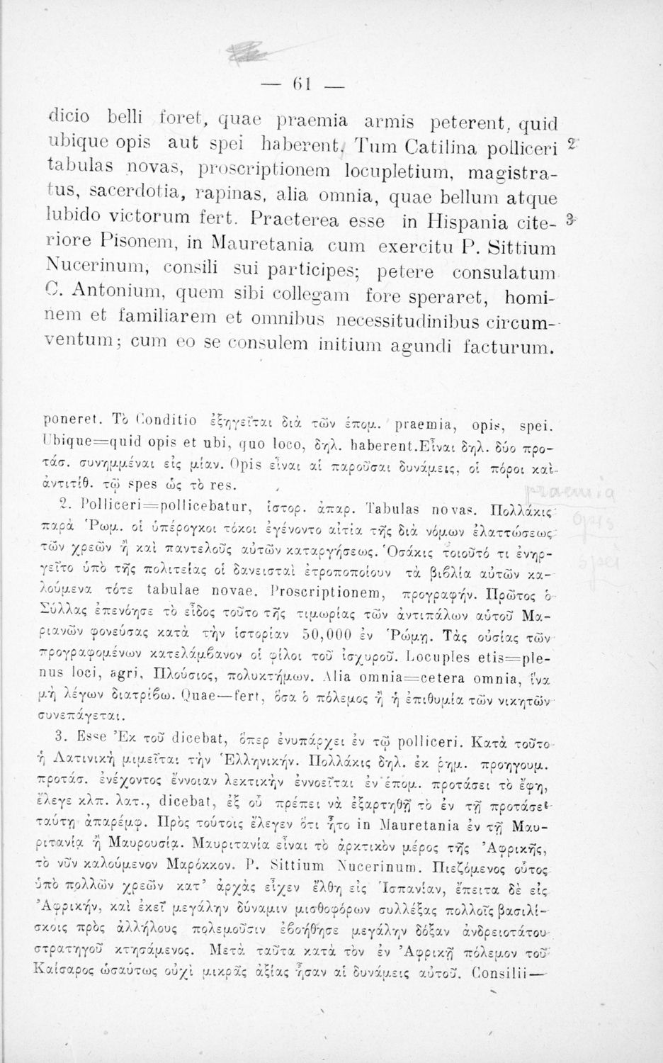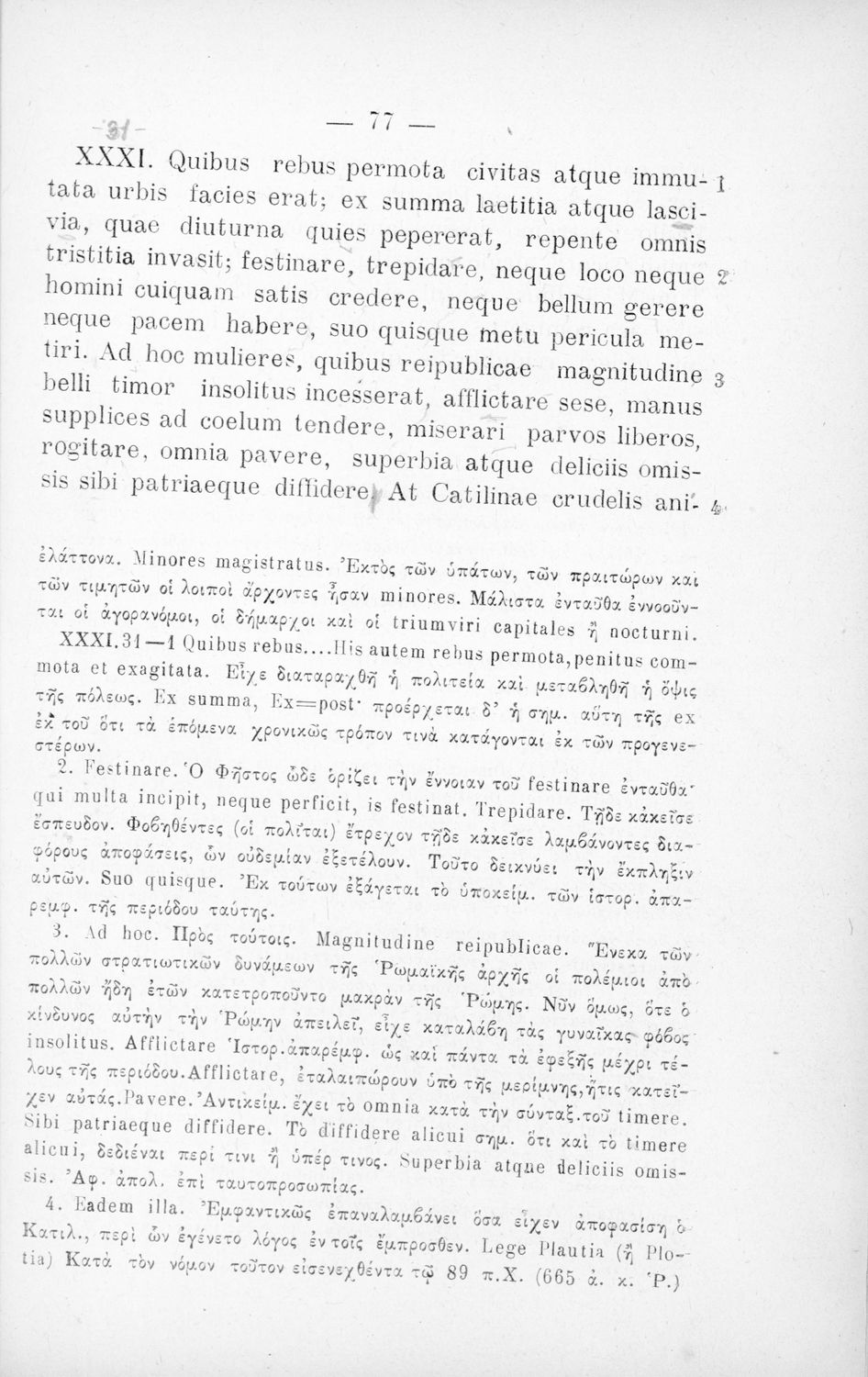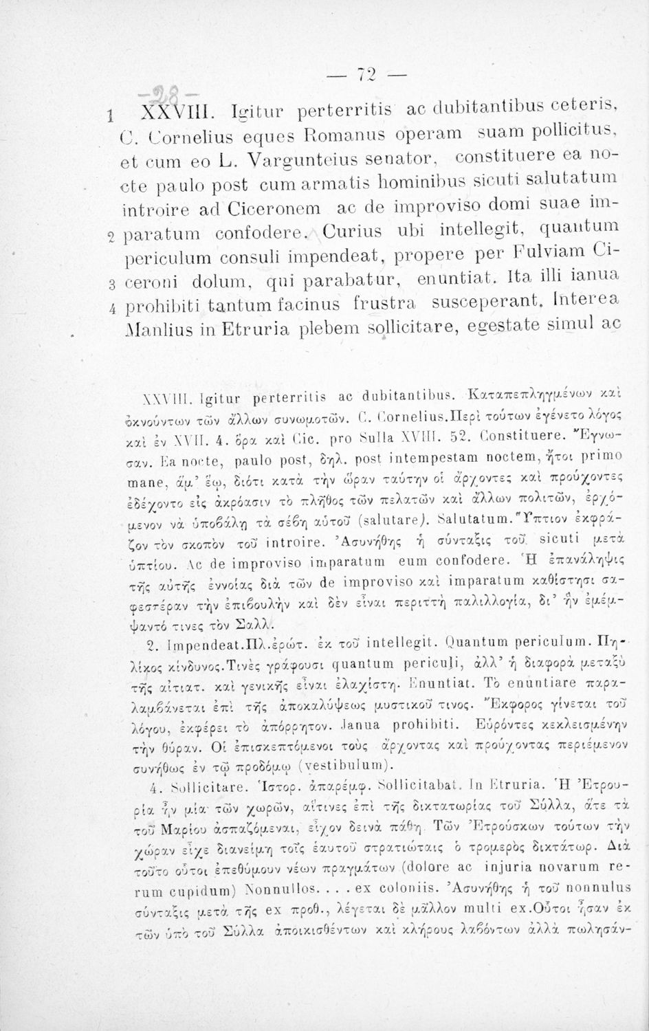 Μαθητικό βοήθημα Λατινικών που περιλαμβάνει μετάφραση του Τρίτου και Τέταρτου κατά Κατιλίνα λόγων και περίληψη της υπόθεσής τους.