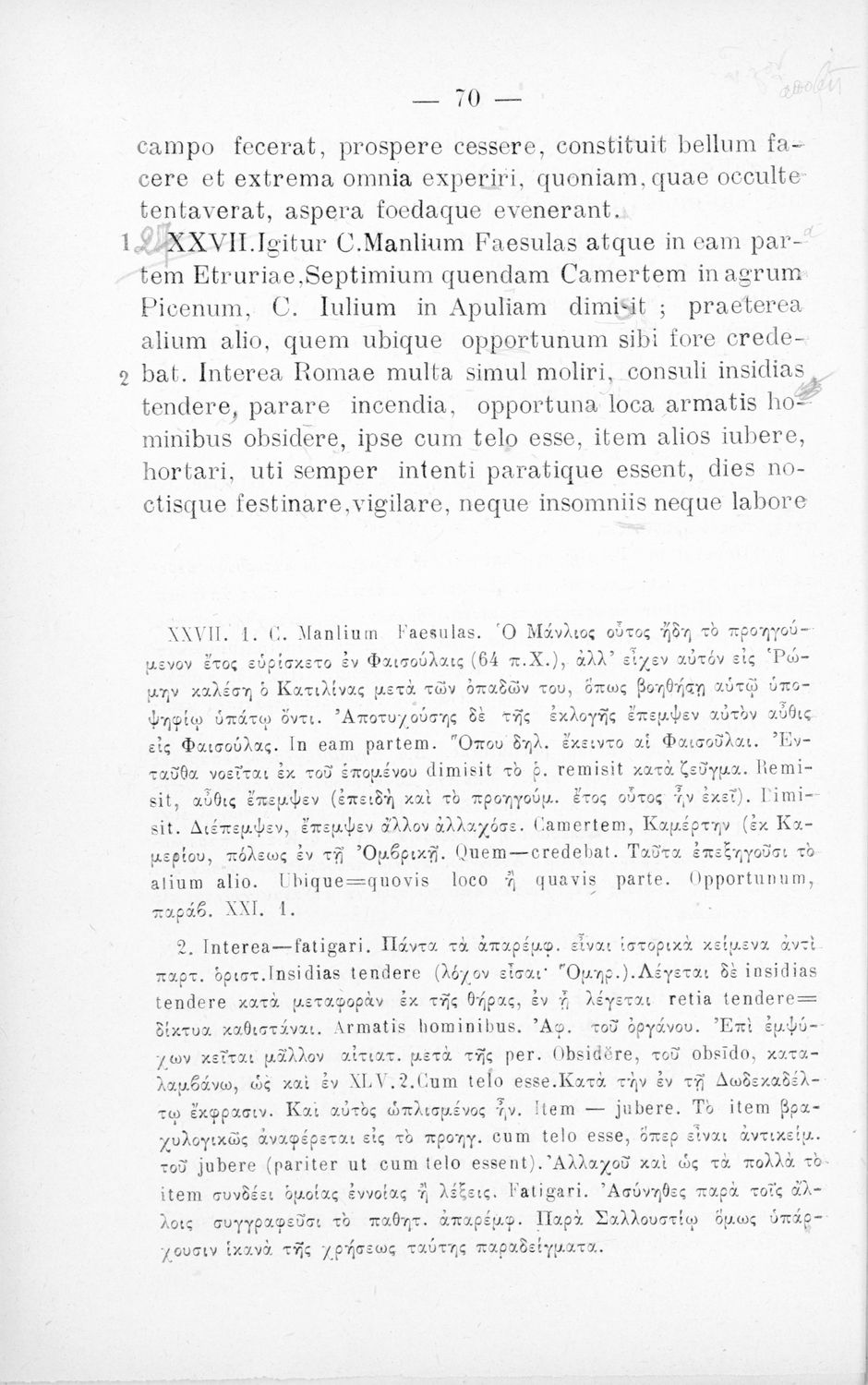 Μαθητικό βοήθημα Λατινικών για την Z΄ τάξη των Οκταταξίων Γυμνασίων που περιέχει κείμενο, μετάφραση, γραμματικά, σημασιολογικά και συντακτικά σχόλια, νόημα και περίληψη.