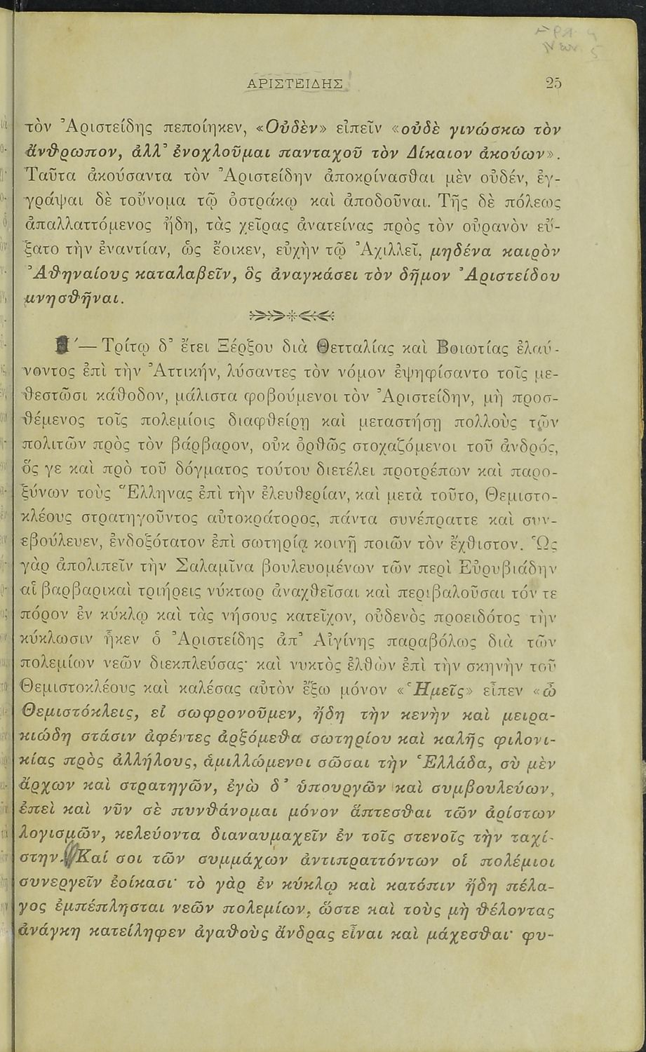 Σχολικό εγχειρίδιο Αρχαίων Ελληνικών για τα Γυμνάσια, Διδασκαλεία και Αστικά Σχολεία Θηλέων που περιλαμβάνει το έργο του Πλούταρχου Αριστείδης, εισαγωγή στη ζωή και το έργο του και λεξιλογικά και ερμηνευτικά ...