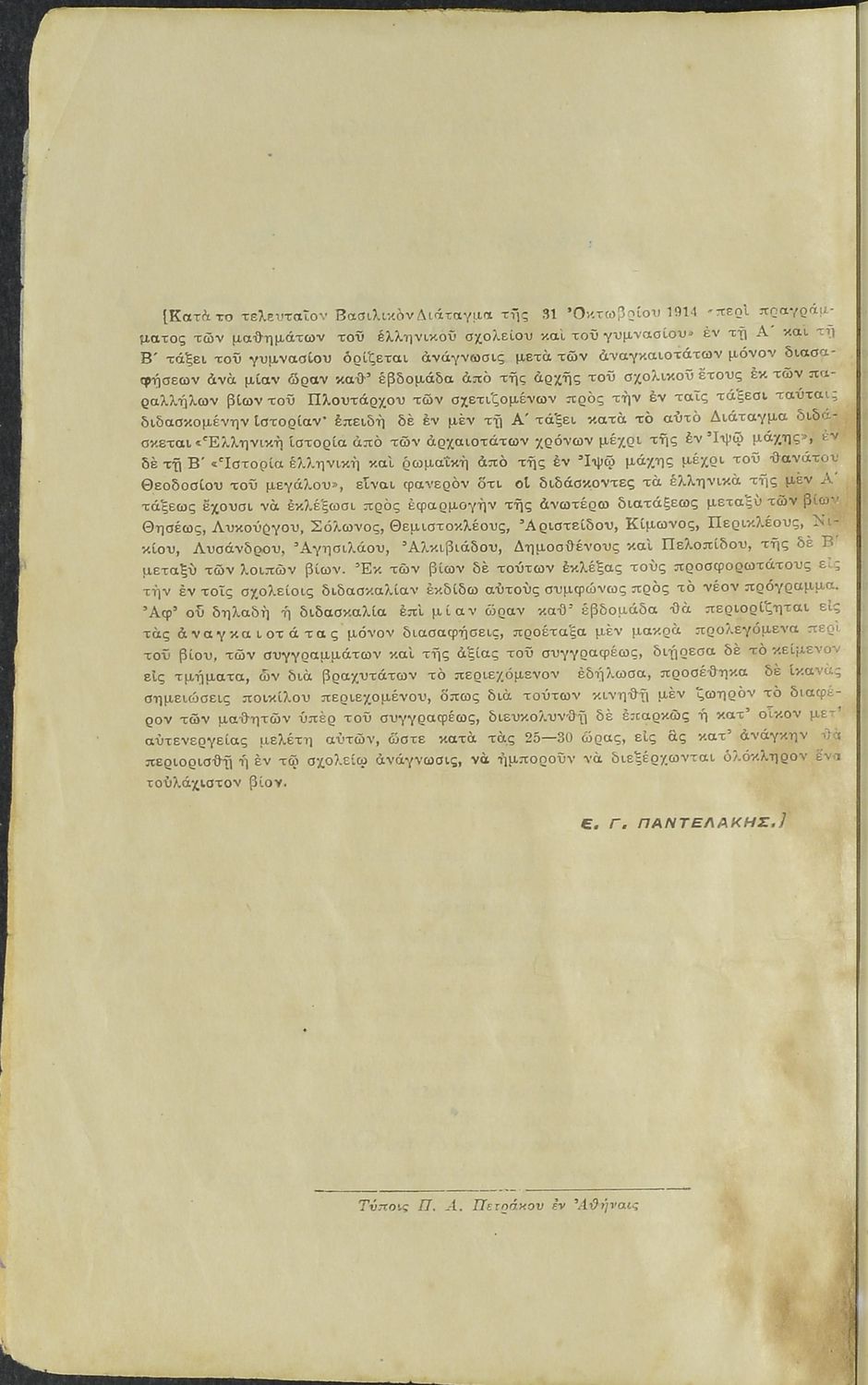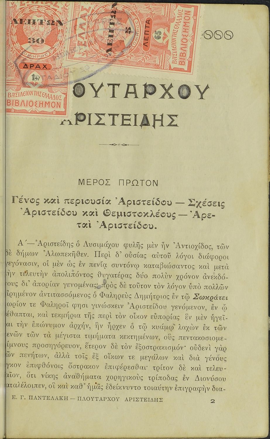 LDR 01202 2200217 4500 035 ## _a01-42028 040 ## _aΙνστιτούτο Εκπαιδευτικής Πολιτικής 041 ## _ael 100 ## _aΠλούταρχος _aΕμμ. Γ. Παντελάκης (σχόλια) 110 ## _a42028 245 0# _aΠλουτάρχου Αριστείδης. Μετά προλεγομένων και σημειώσεων. Προς χρήσιν των μαθητευόντων 250 ## _a1η Έκδοση 260 ## _aΑθήνα _bΒιβλιοπωλείο: Γεώργιος Χ. Κορνάρος _c1917 300 ## _a71 520 ## _aΣχολικό εγχειρίδιο της Β΄ και Γ΄ Γυμνασίου για το μάθημα των Αρχαίων Ελληνικών. Περιλαμβάνει το έργο του Πλούταρχου Αριστείδης και ερμηνευτικά σχόλια. 521 ## _aΑ' Γυμνασίου / Β' Γυμνασίου 522 ## _aΕλλάδα 546 ## _aΚαθαρεύουσα 563 ## _aΜαλακό Εξώφυλλο 583 ## _a117/1917 _c1917 650 #4 _aΑθηναίοι _aΑρετή _aΑριστείδης _aΈλληνες _aΠλούταρχος