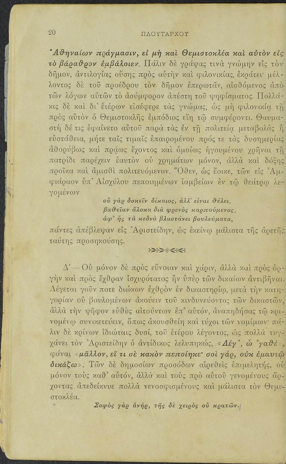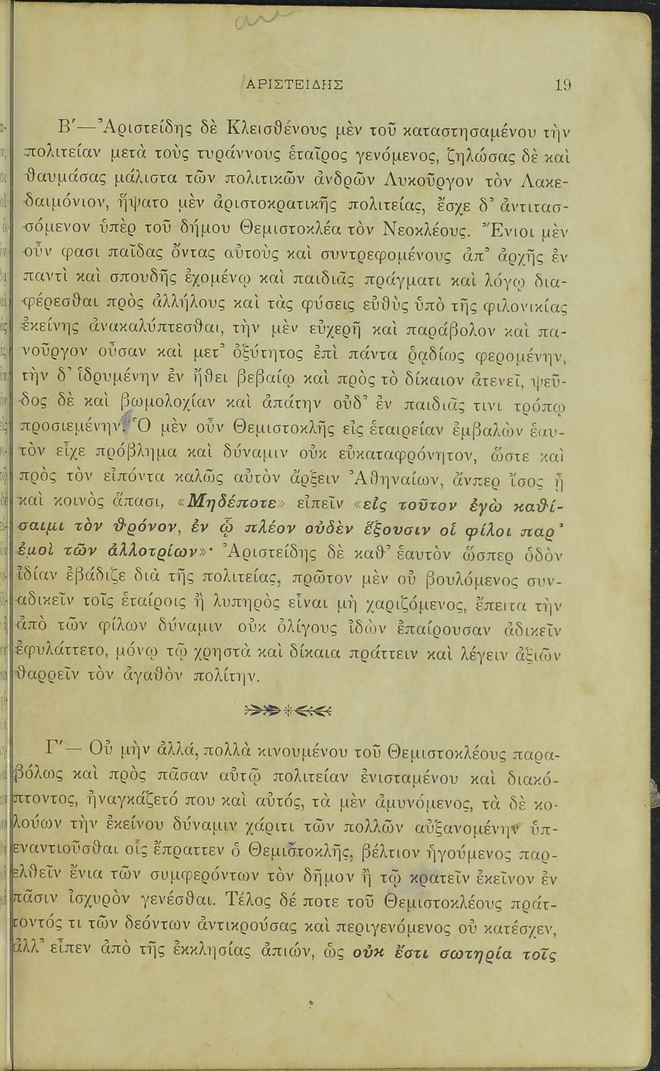 Σχολικό εγχειρίδιο της Β΄ και Γ΄ Γυμνασίου για το μάθημα των Αρχαίων Ελληνικών. Περιλαμβάνει το έργο του Πλούταρχου Αριστείδης και ερμηνευτικά σχόλια.