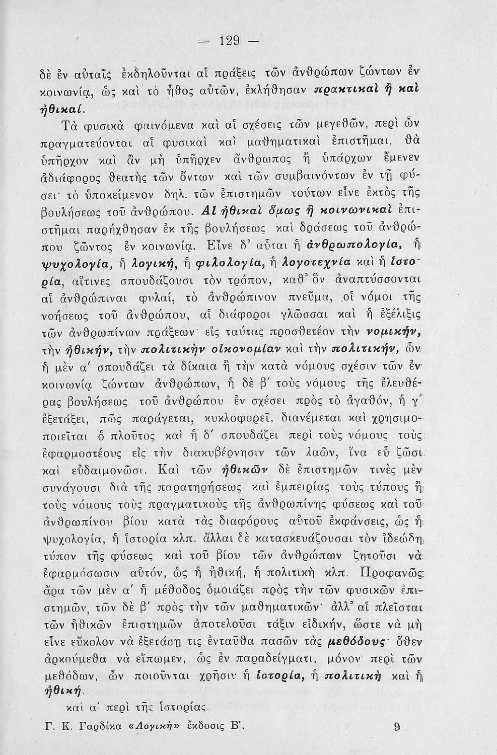 Σχολικό εγχειρίδιο Λογικής Γυμνασίου που περιέχει στοιχεία τυπικής λογικής και μεθοδολογία των επιστημών. Ο συγγραφέας ήταν καθηγητής των Ελληνικών Γραμμάτων στο Εθνικό Πανεπιστήμιο και γυμνασιάρχης στο Αρσάκειο.