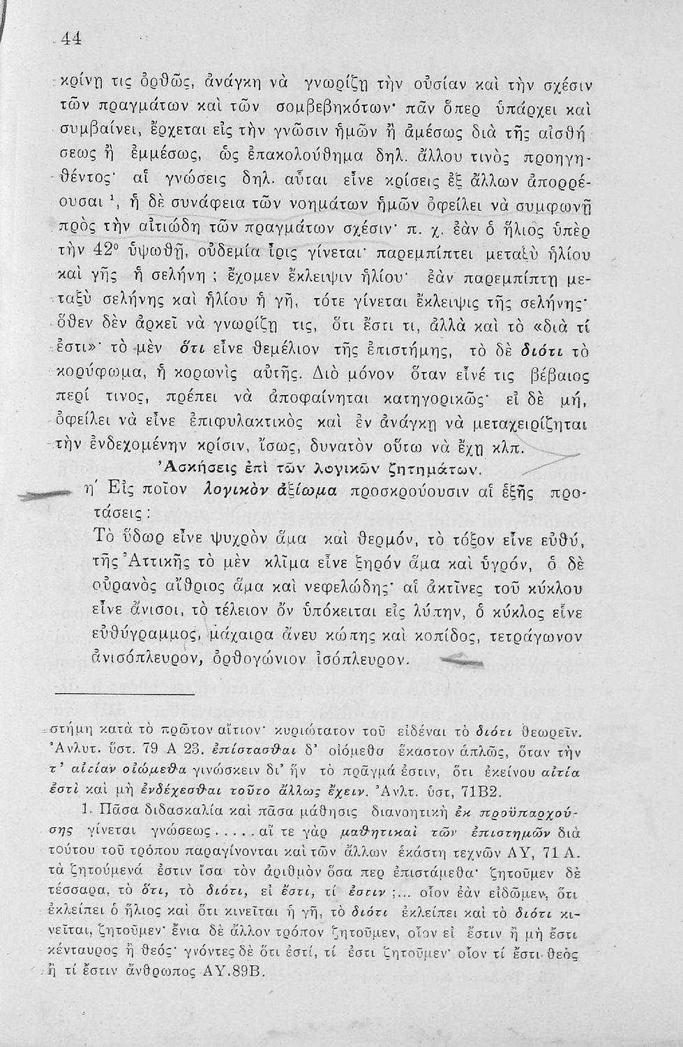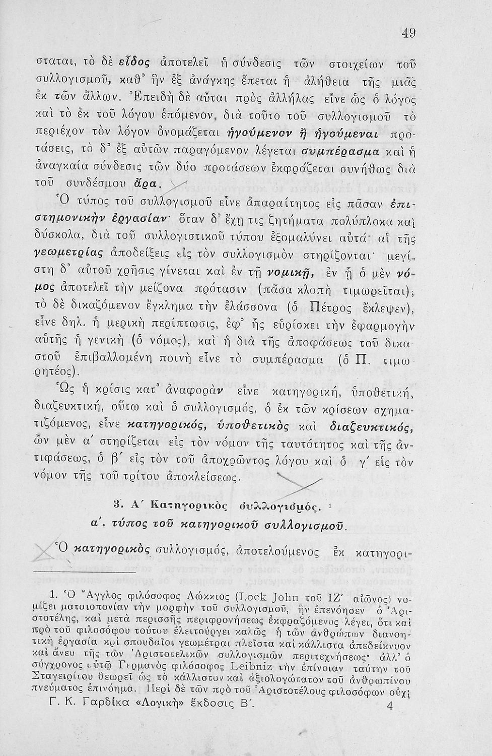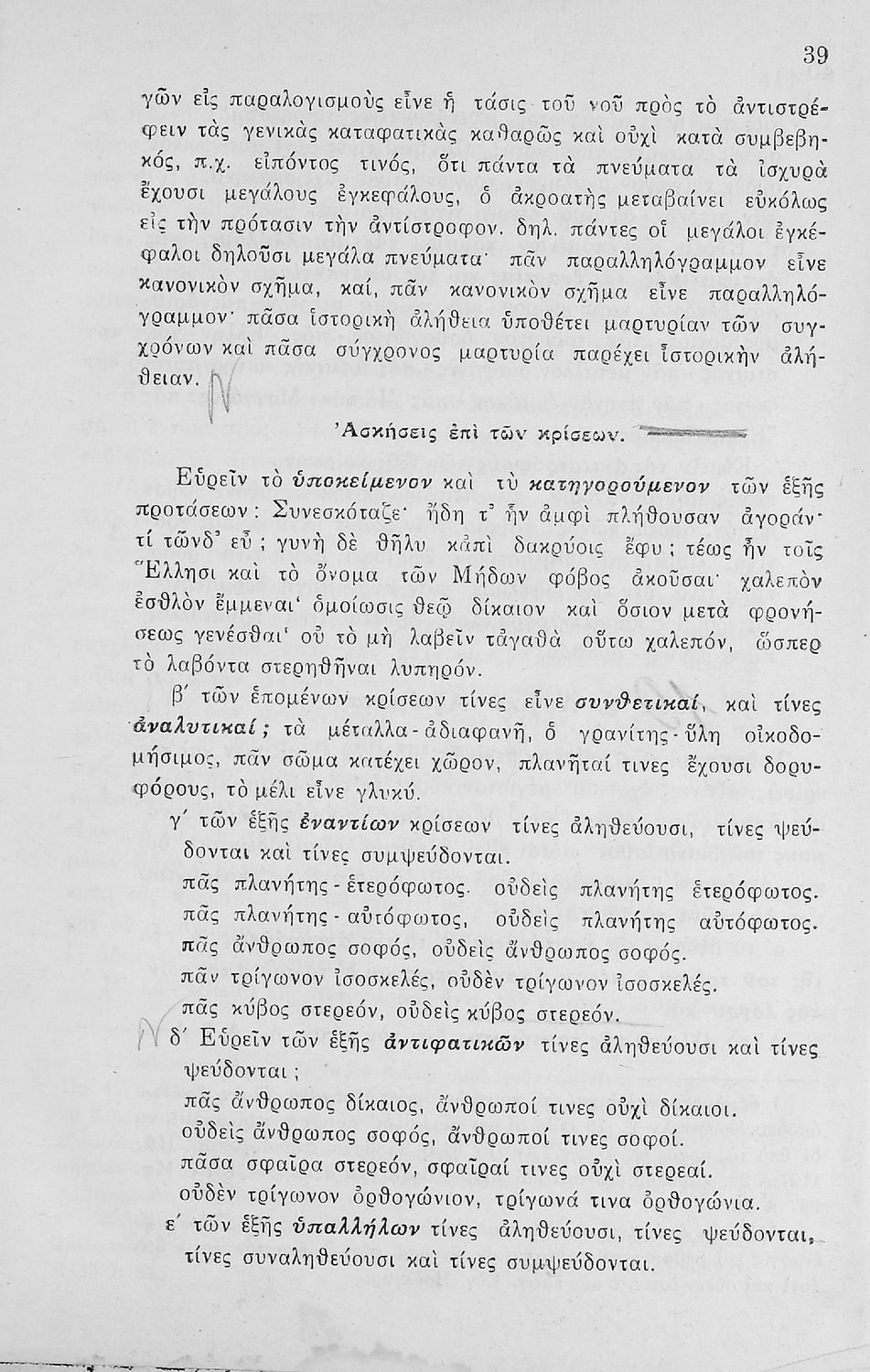 Σχολικό εγχειρίδιο Λογικής Γυμνασίου που περιέχει στοιχεία τυπικής λογικής και μεθοδολογία των επιστημών. Ο συγγραφέας ήταν καθηγητής των Ελληνικών Γραμμάτων στο Εθνικό Πανεπιστήμιο και γυμνασιάρχης στο Αρσάκειο.