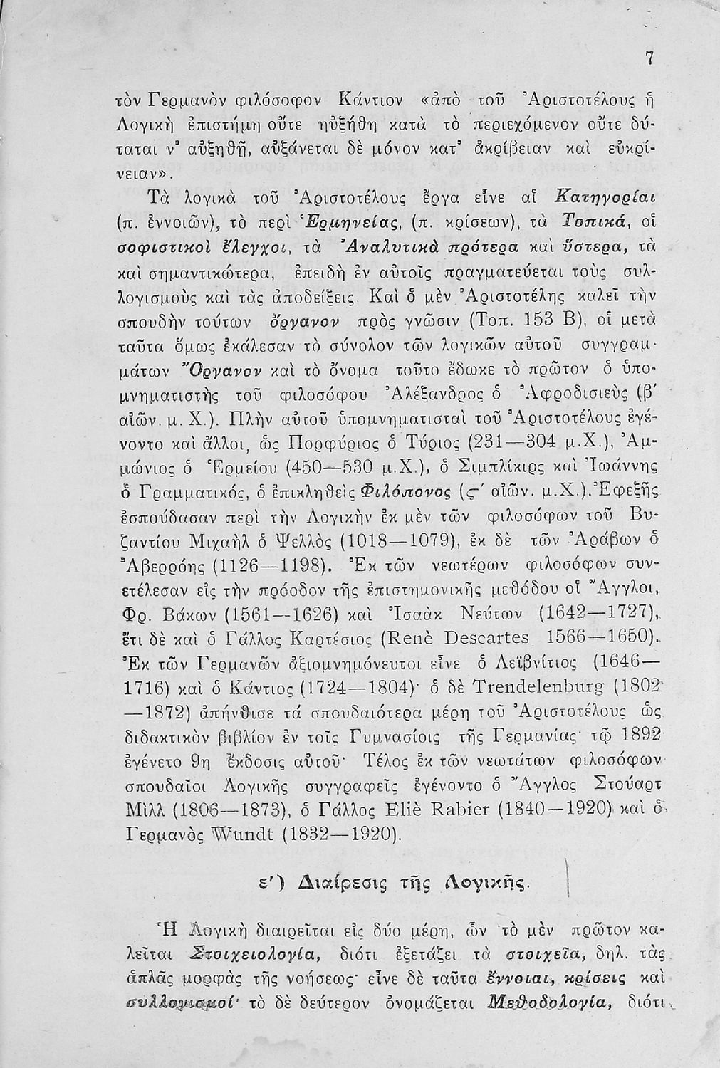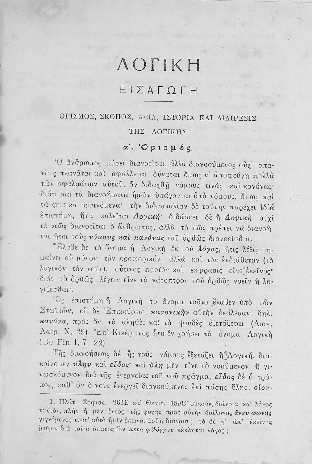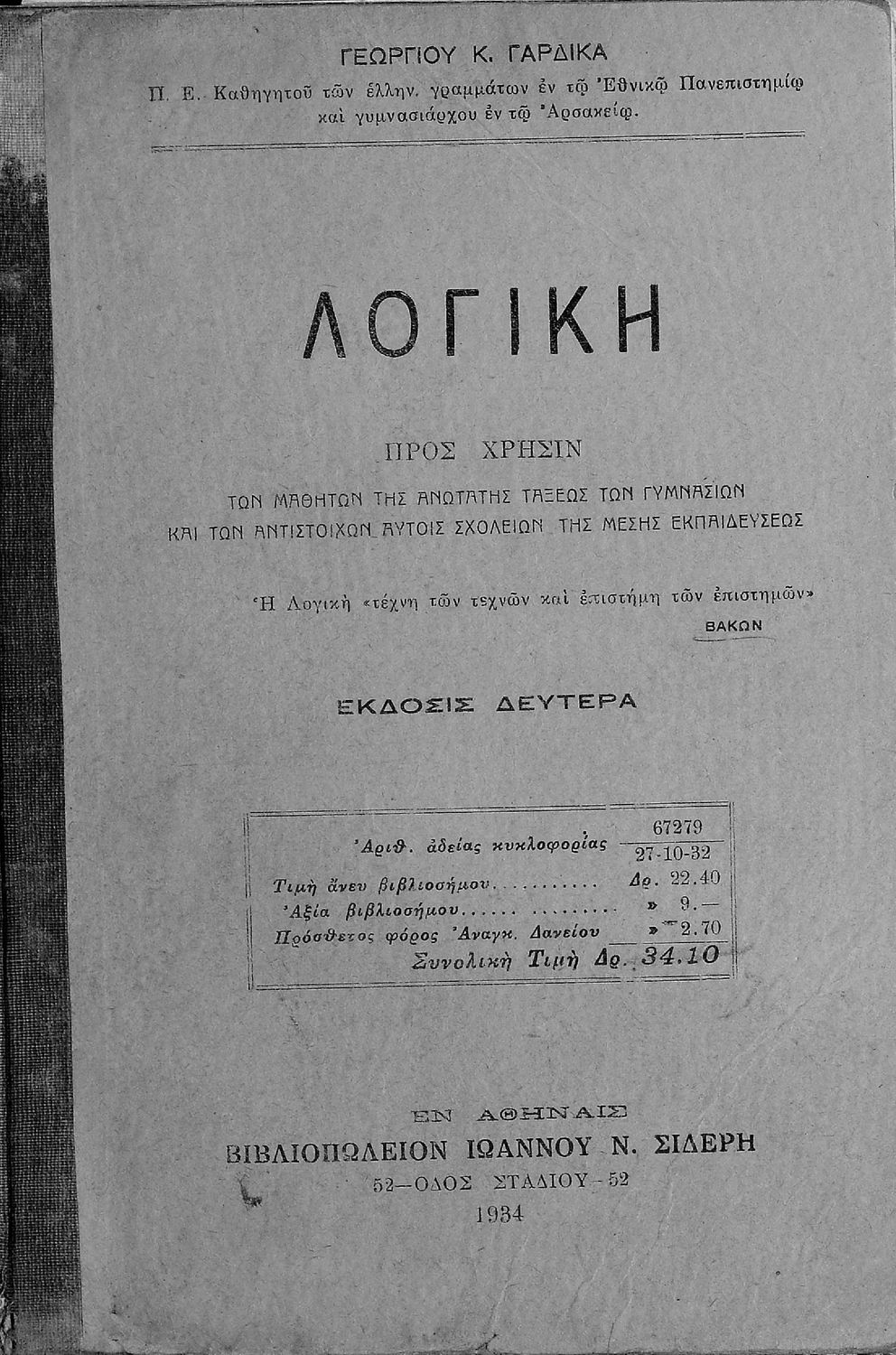 Λογική προς χρήσιν των μαθητών της ανωτάτης τάξεως των Γυμνασίων και των αντιστοίχων αυτοίς σχολείων της Μέσης Εκπαιδεύσεως