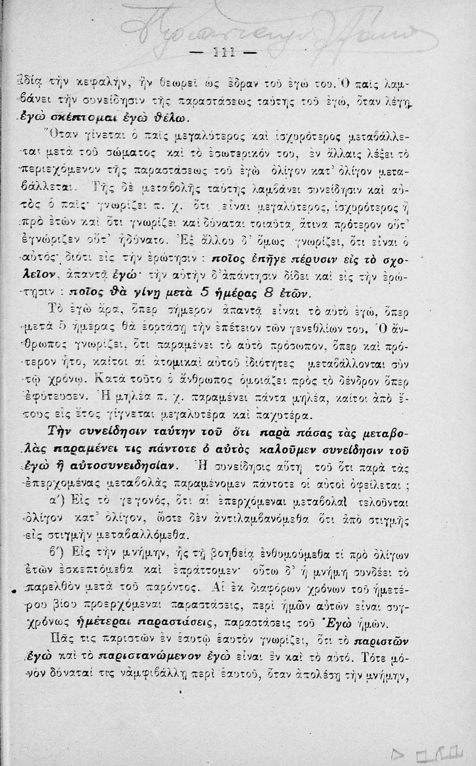 Σχολικό εγχειρίδιο Εμπειρικής Ψυχολογίας για τη Γ΄ Γυμνασίου χωρισμένο σε τρία τμήματα: το γνωστικό, το συναισθηματικό και το βουλητικό. Εξετάζει και τις ανωμαλίες της συνείδησης.