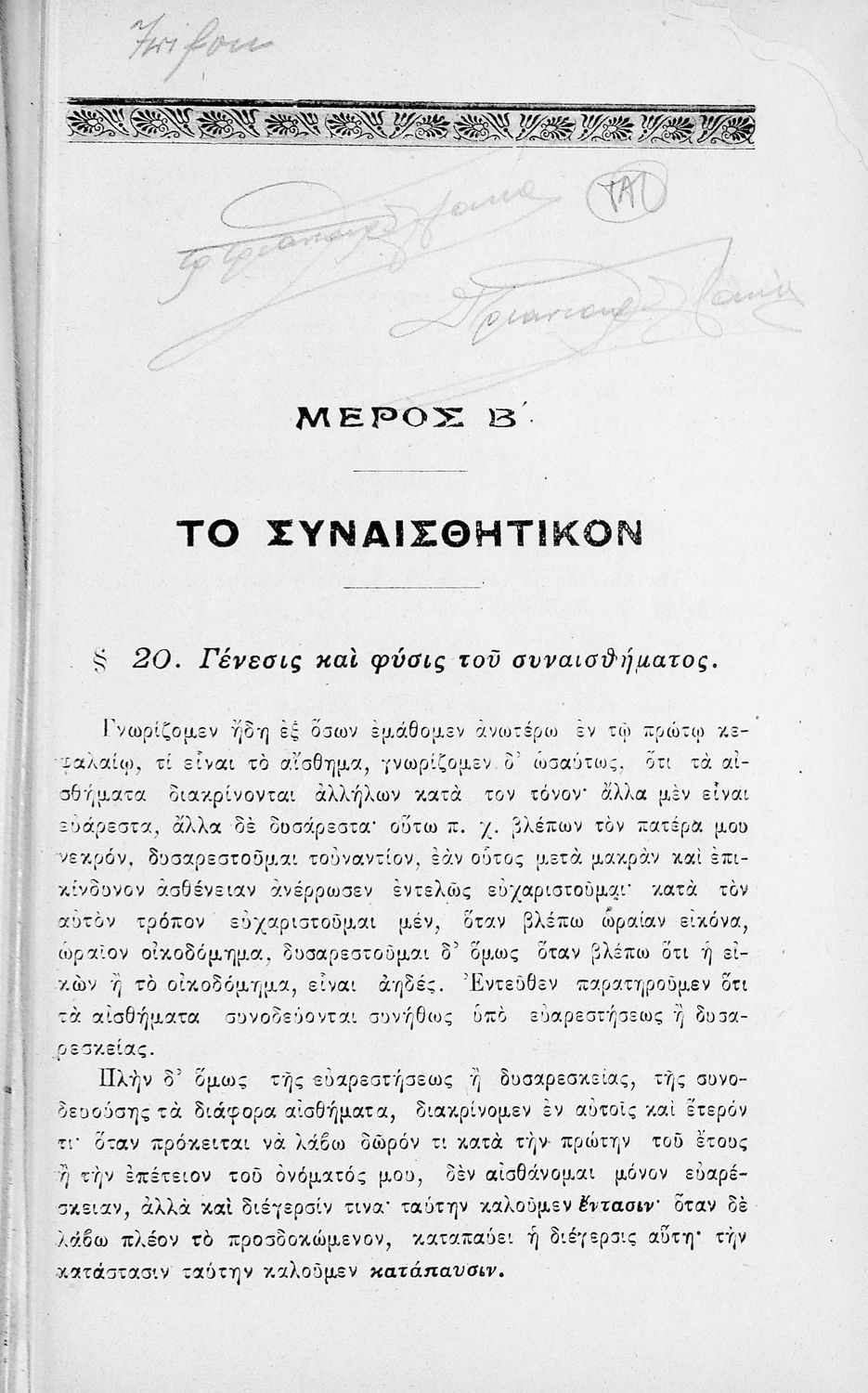 Σχολικό εγχειρίδιο Εμπειρικής Ψυχολογίας για τη Γ΄ Γυμνασίου χωρισμένο σε τρία τμήματα: το γνωστικό, το συναισθηματικό και το βουλητικό. Εξετάζει και τις ανωμαλίες της συνείδησης.