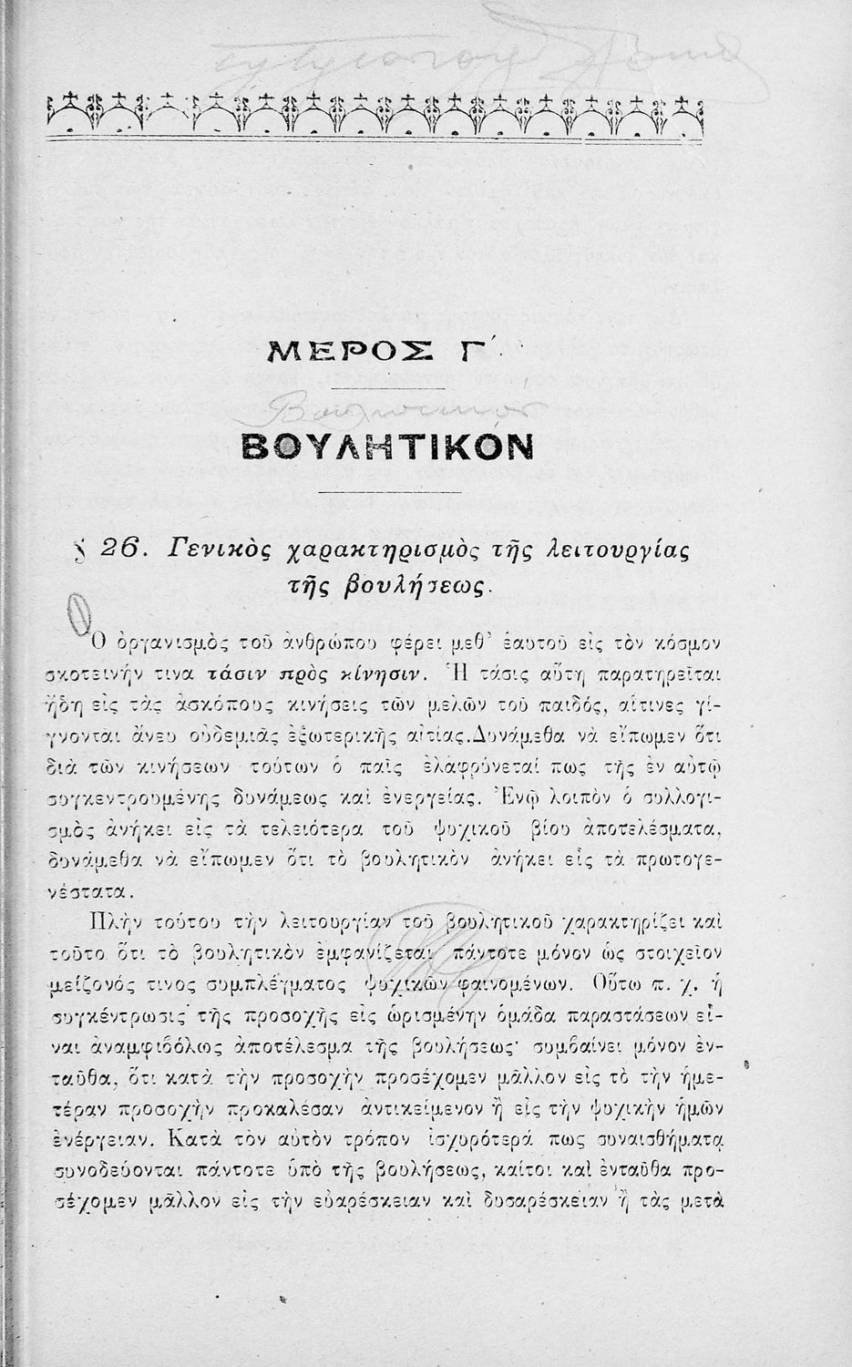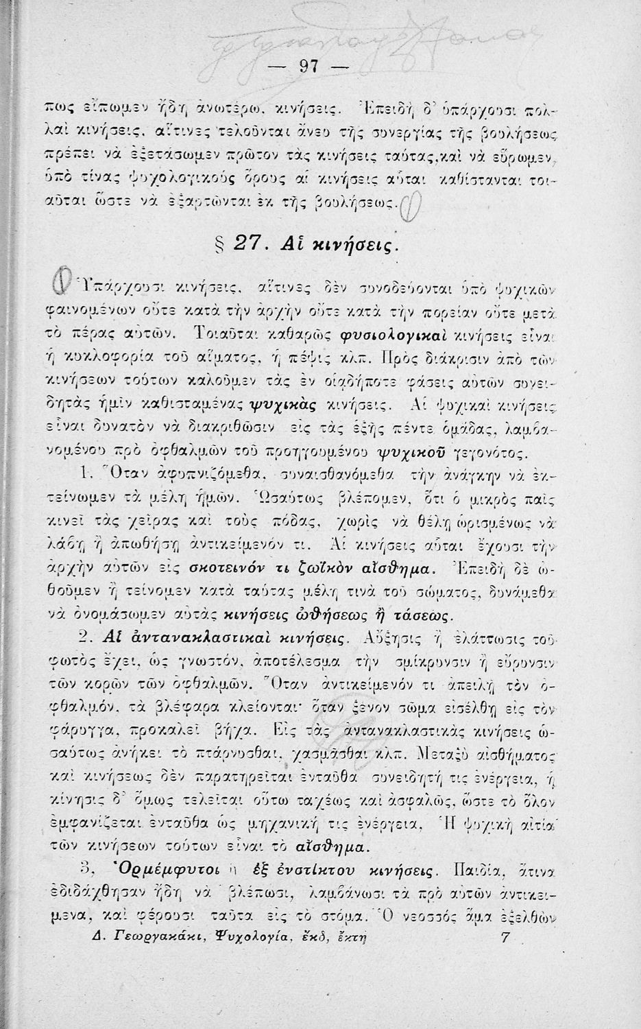 Σχολικό εγχειρίδιο Εμπειρικής Ψυχολογίας για τη Γ΄ Γυμνασίου χωρισμένο σε τρία τμήματα: το γνωστικό, το συναισθηματικό και το βουλητικό. Εξετάζει και τις ανωμαλίες της συνείδησης.