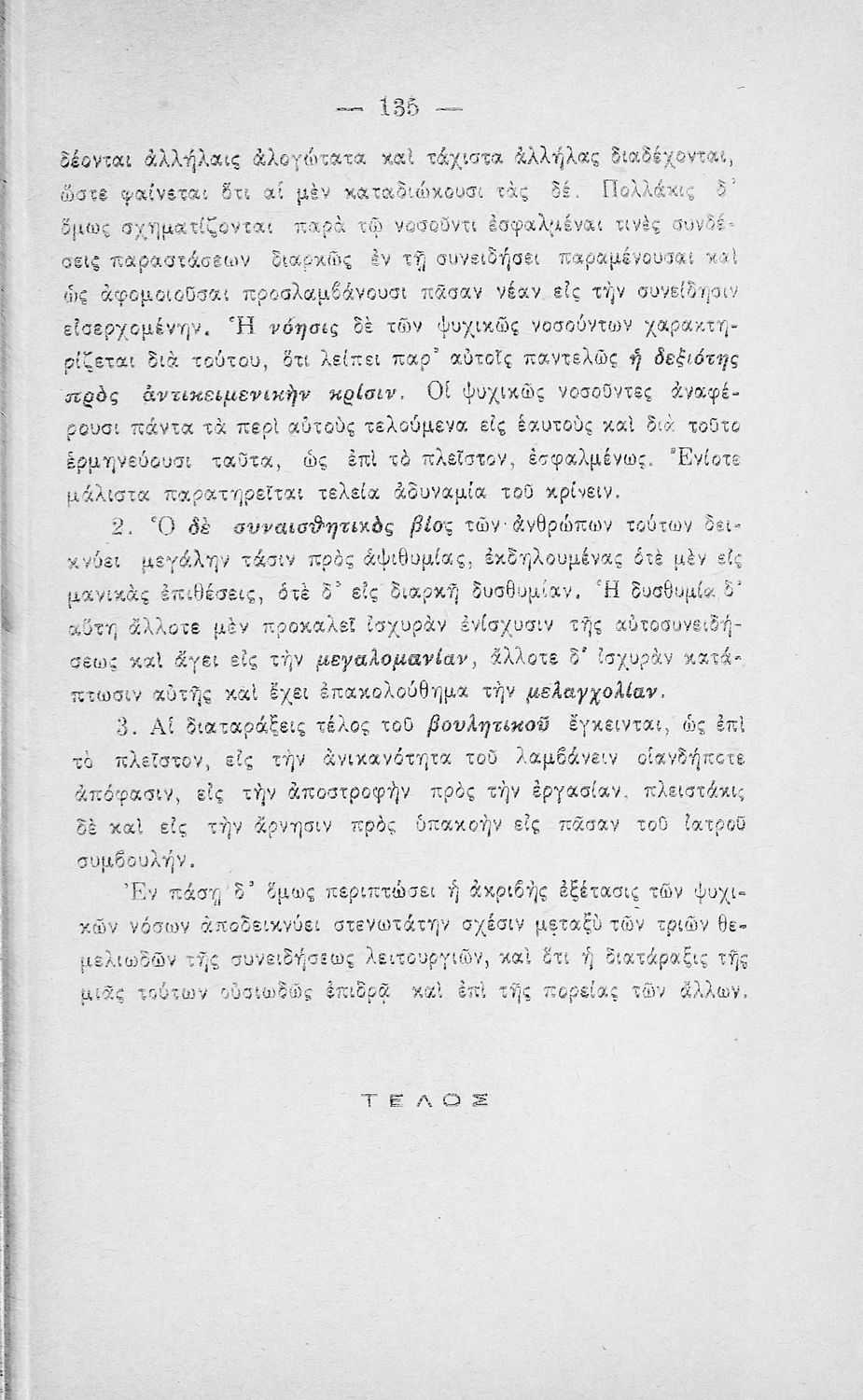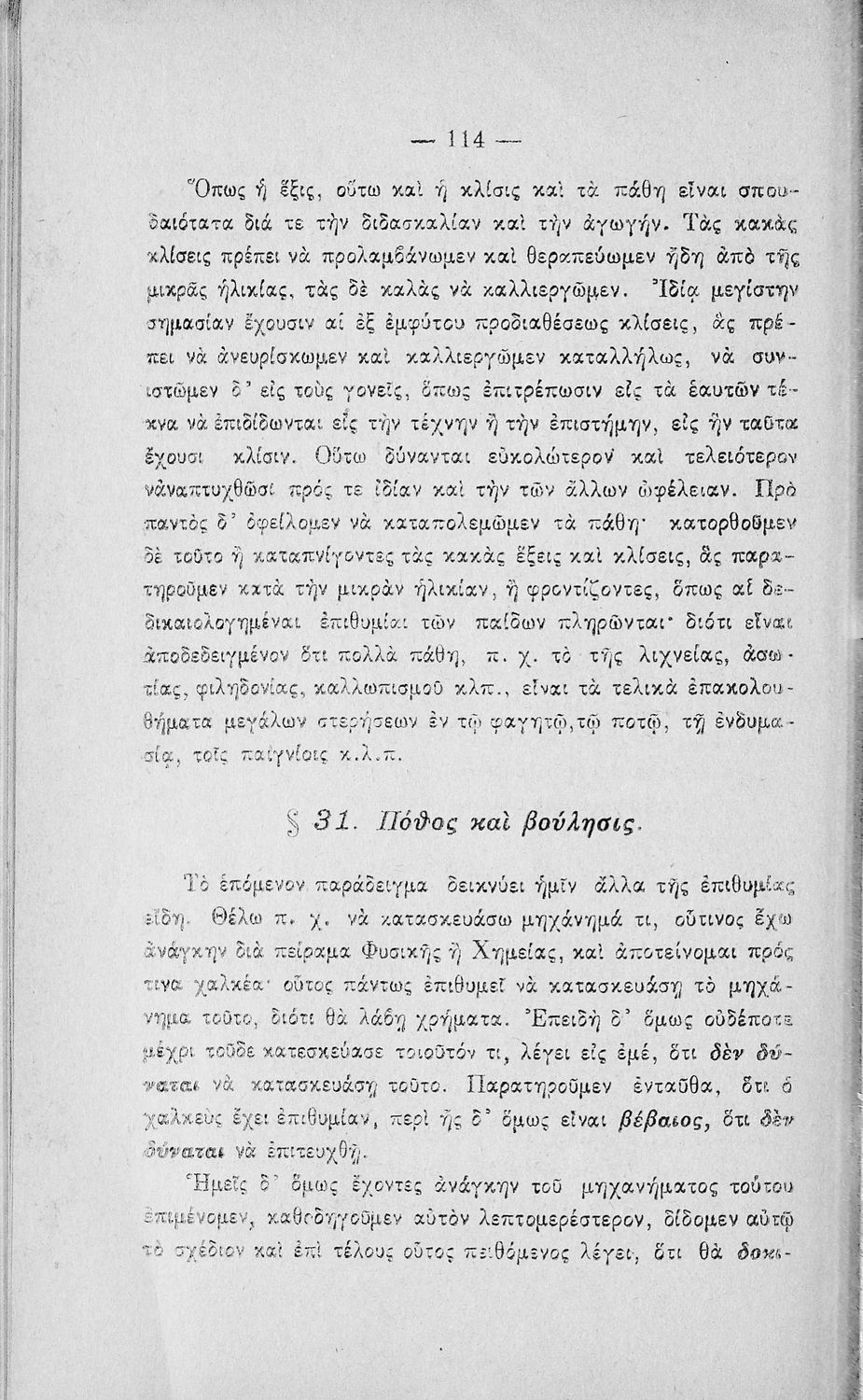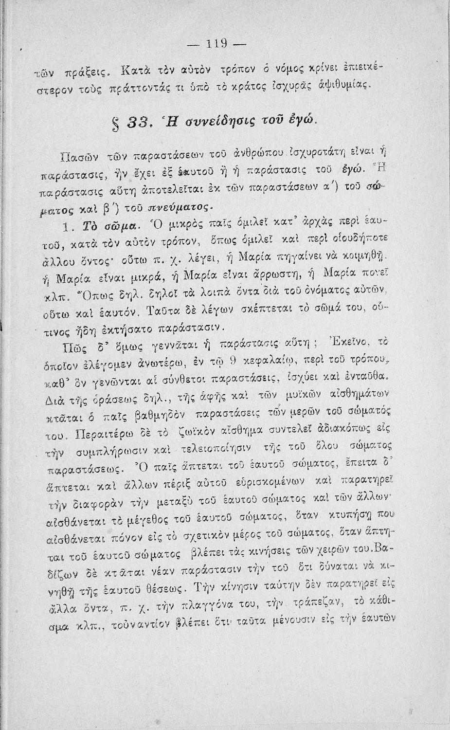 Σχολικό εγχειρίδιο Πειραματικής Ψυχολογίας για τη Γ΄ Γυμνασίου χωρισμένο σε τρία τμήματα: το παριστάναι, το συναισθάνεσθαι, και το βούλεσθαι.