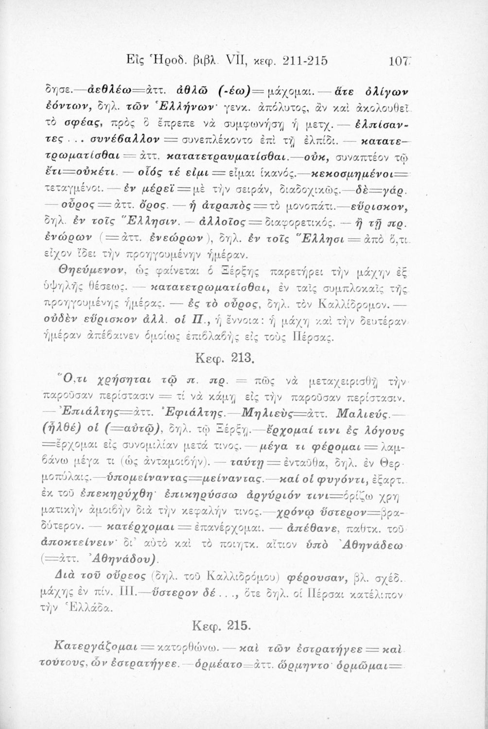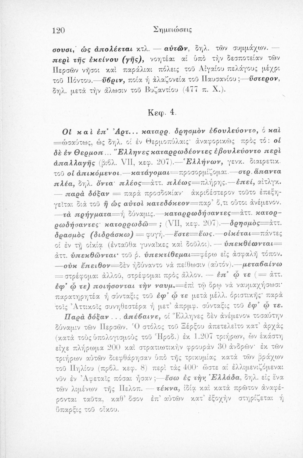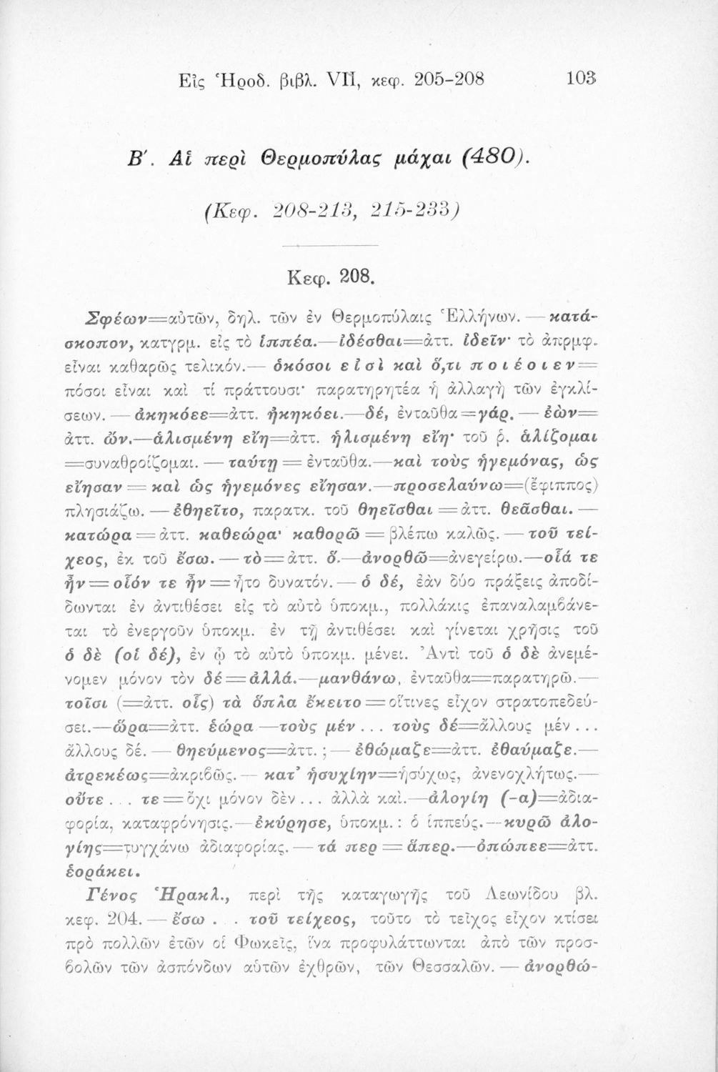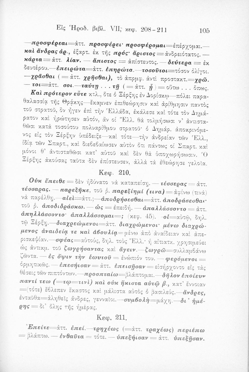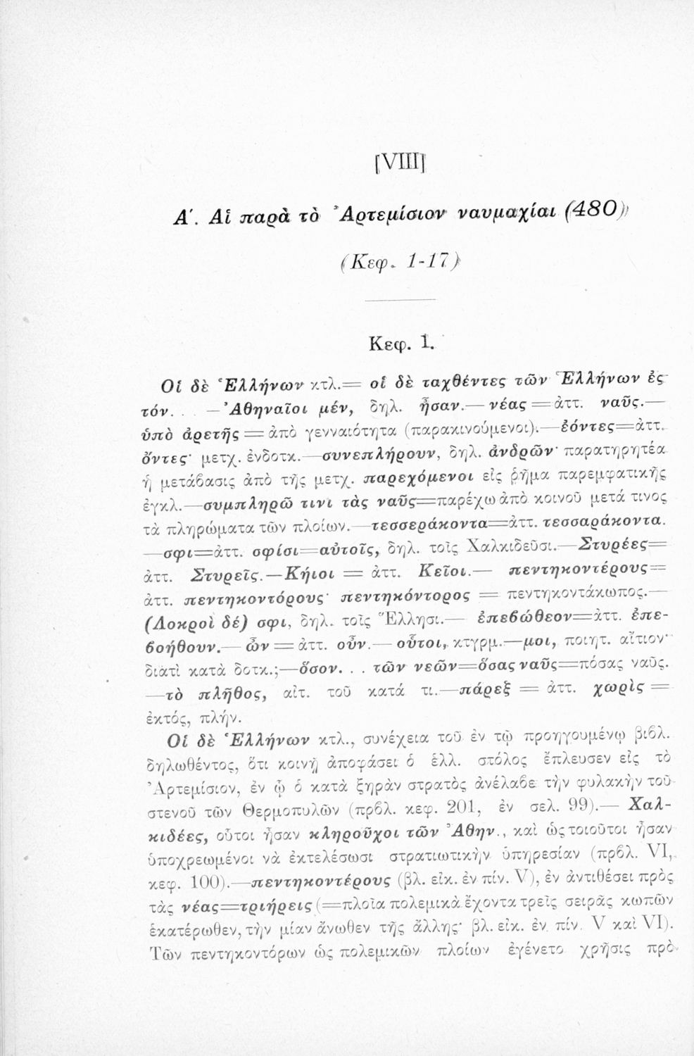 Σχολικό εγχειρίδιο Αρχαίων Ελληνικών Α΄ Γυμνασίου και Α' Διδασκαλείου που περιλαμβάνει αποσπάσματα από το έργο του Ηρόδοτου, ερμηνευτικές σημειώσεις, πραγματολογικά, λεξικολογικά και γραμματικά σχόλια.