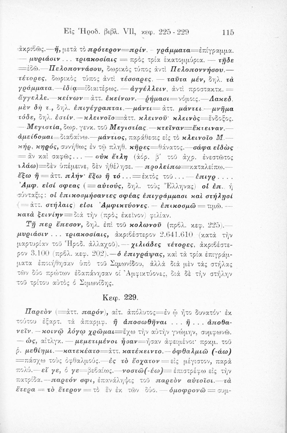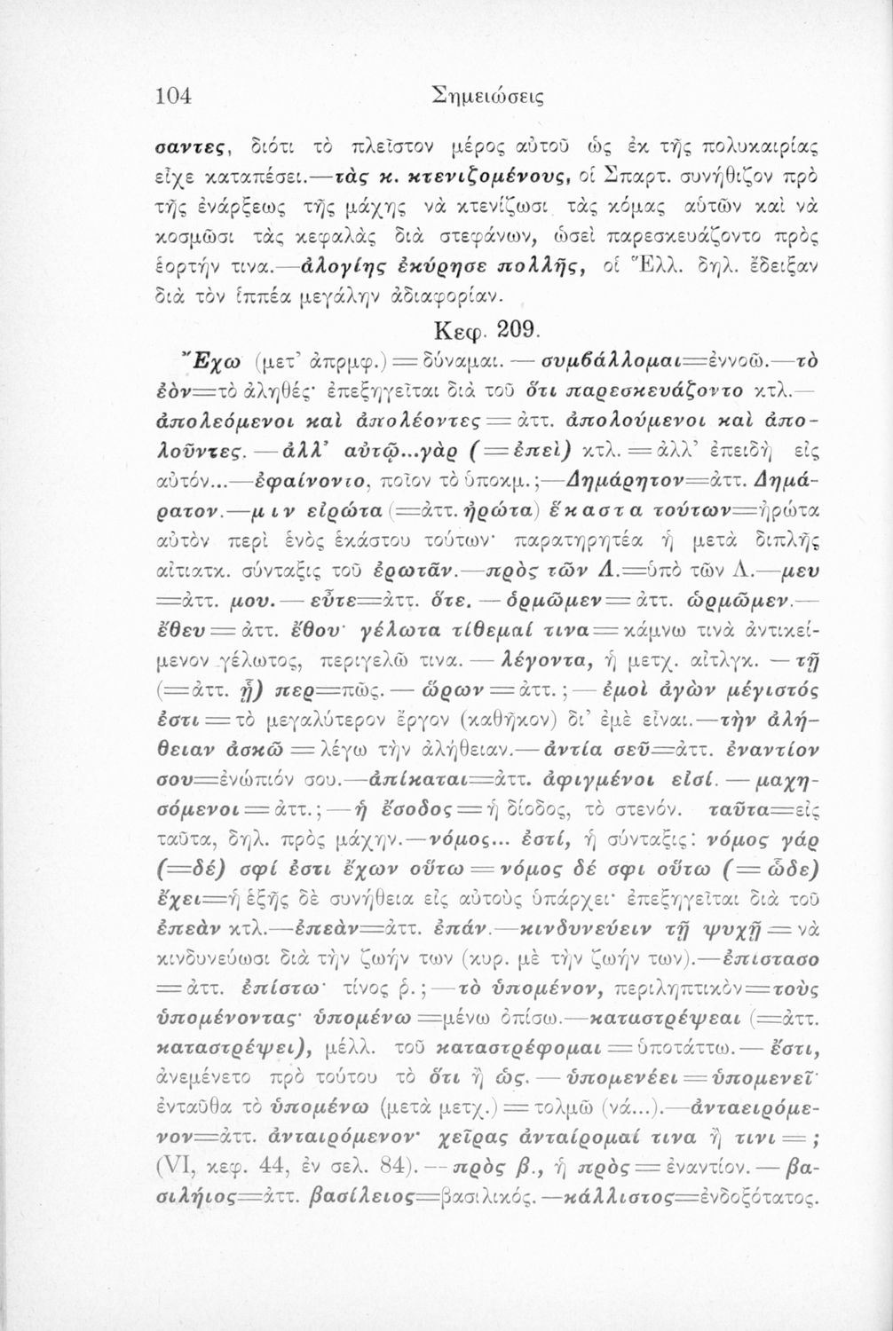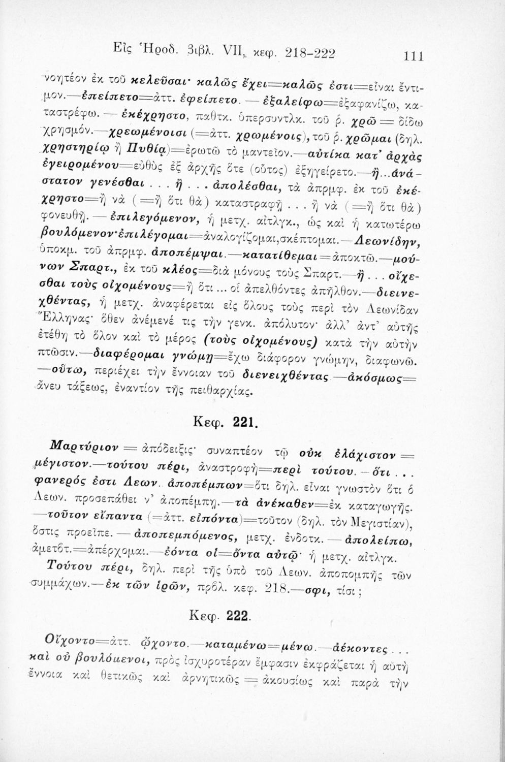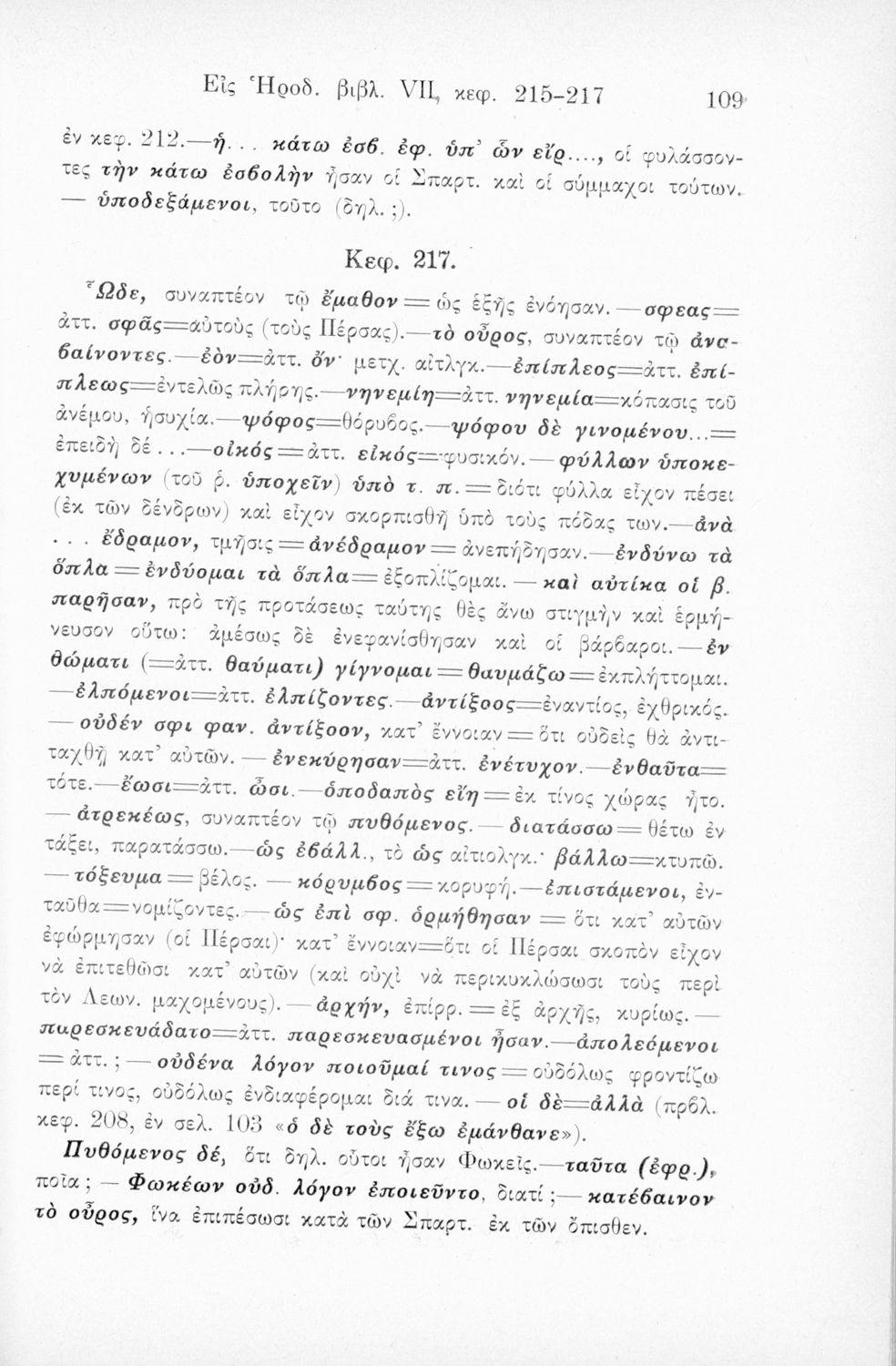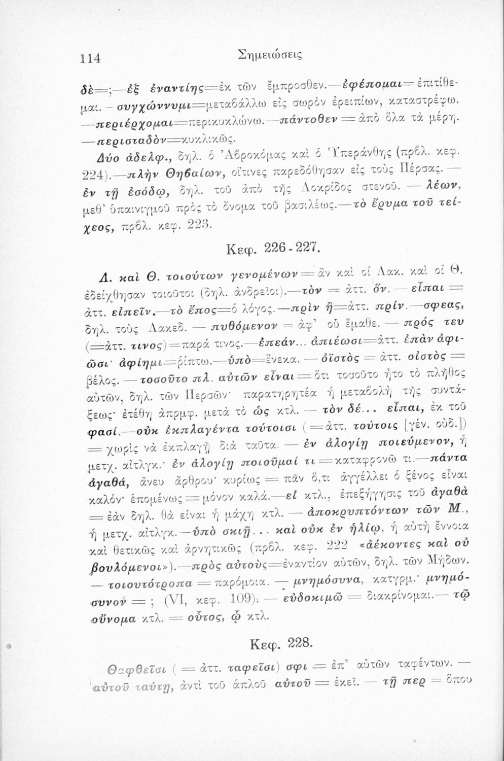 Σχολικό εγχειρίδιο Αρχαίων Ελληνικών Α΄ Γυμνασίου και Α' Διδασκαλείου που περιλαμβάνει αποσπάσματα από το έργο του Ηρόδοτου, ερμηνευτικές σημειώσεις, πραγματολογικά, λεξικολογικά και γραμματικά σχόλια.
