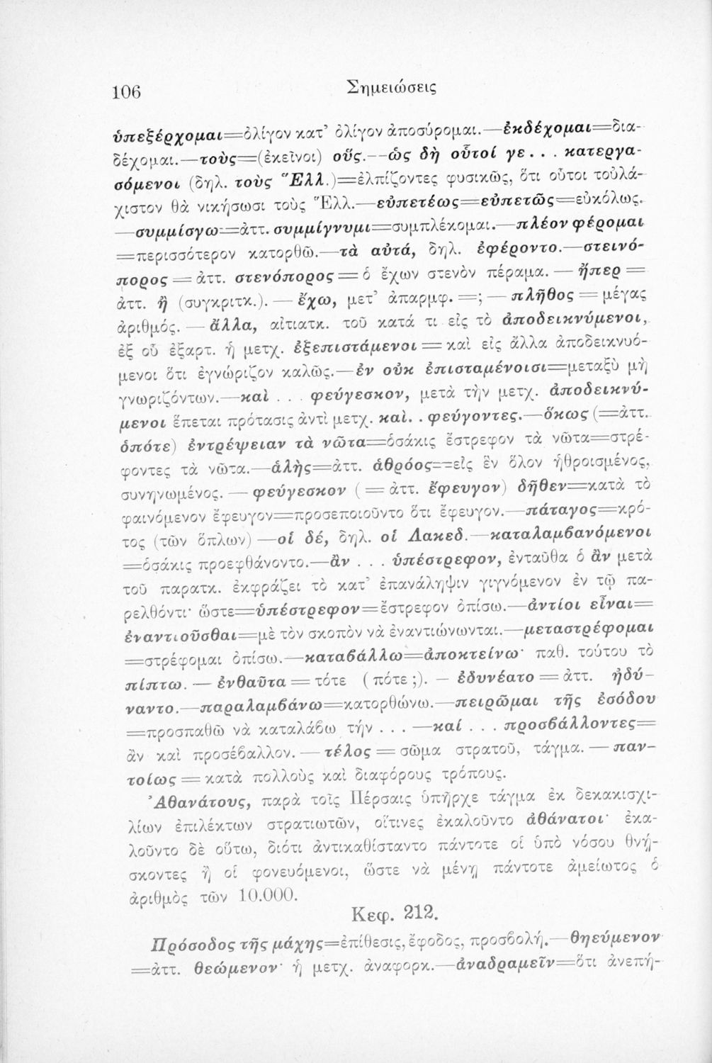 Σχολικό εγχειρίδιο της Γ' Ελληνικού Σχολείου και Αστικών Σχολείων για το μάθημα των Αρχαίων Ελληνικών. Το σύγγραμμα περιλαμβάνει κείμενα κατ΄ επιλογή από τα τέσσερα τελευταία βιβλία του έργου Κύρου Ανάβασις. ...