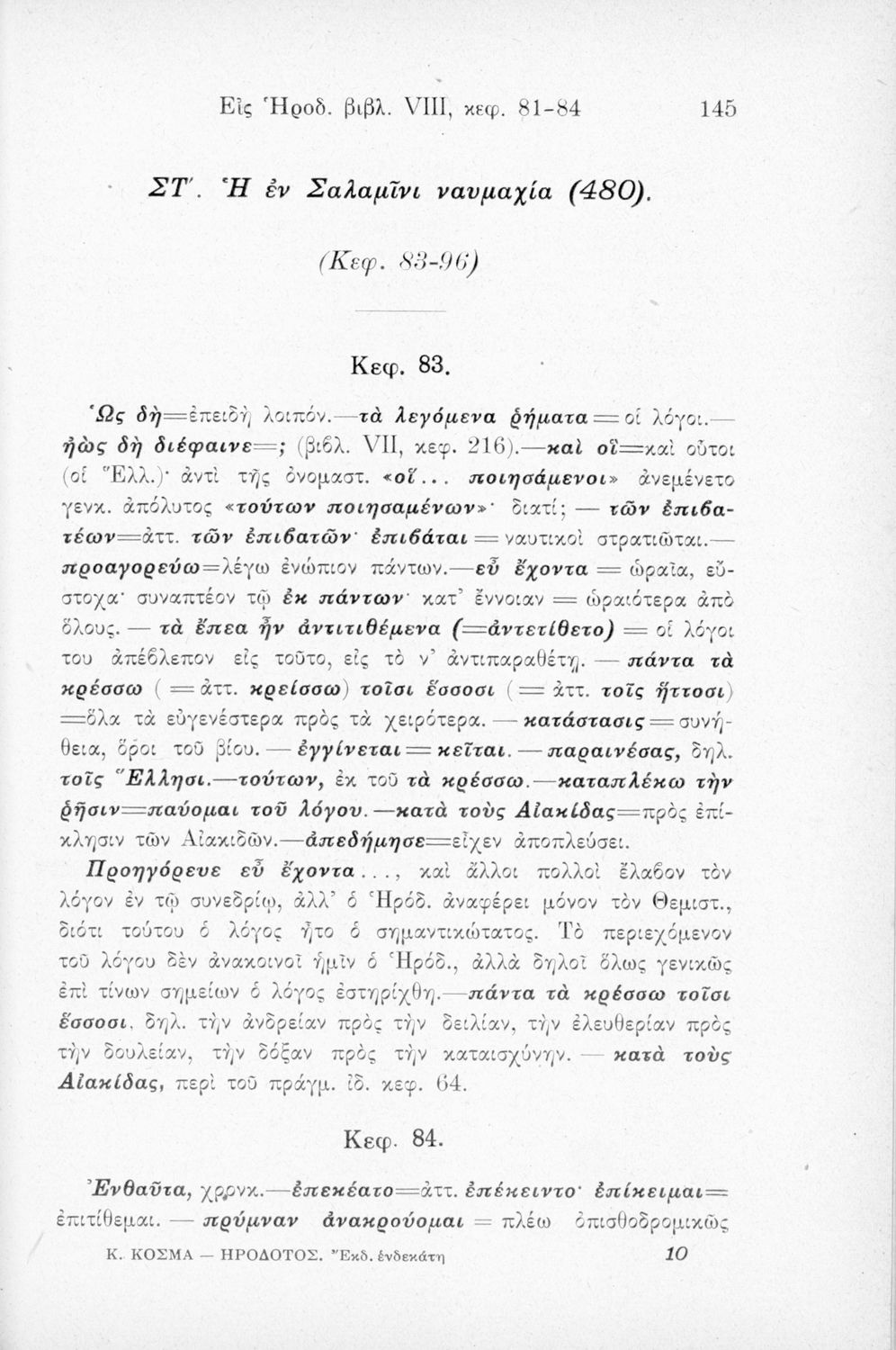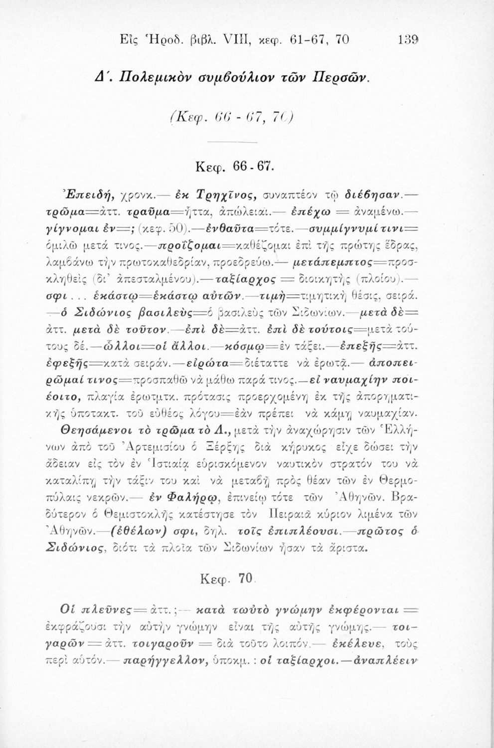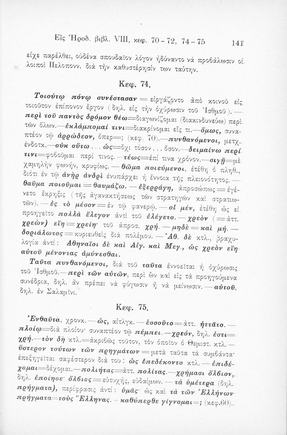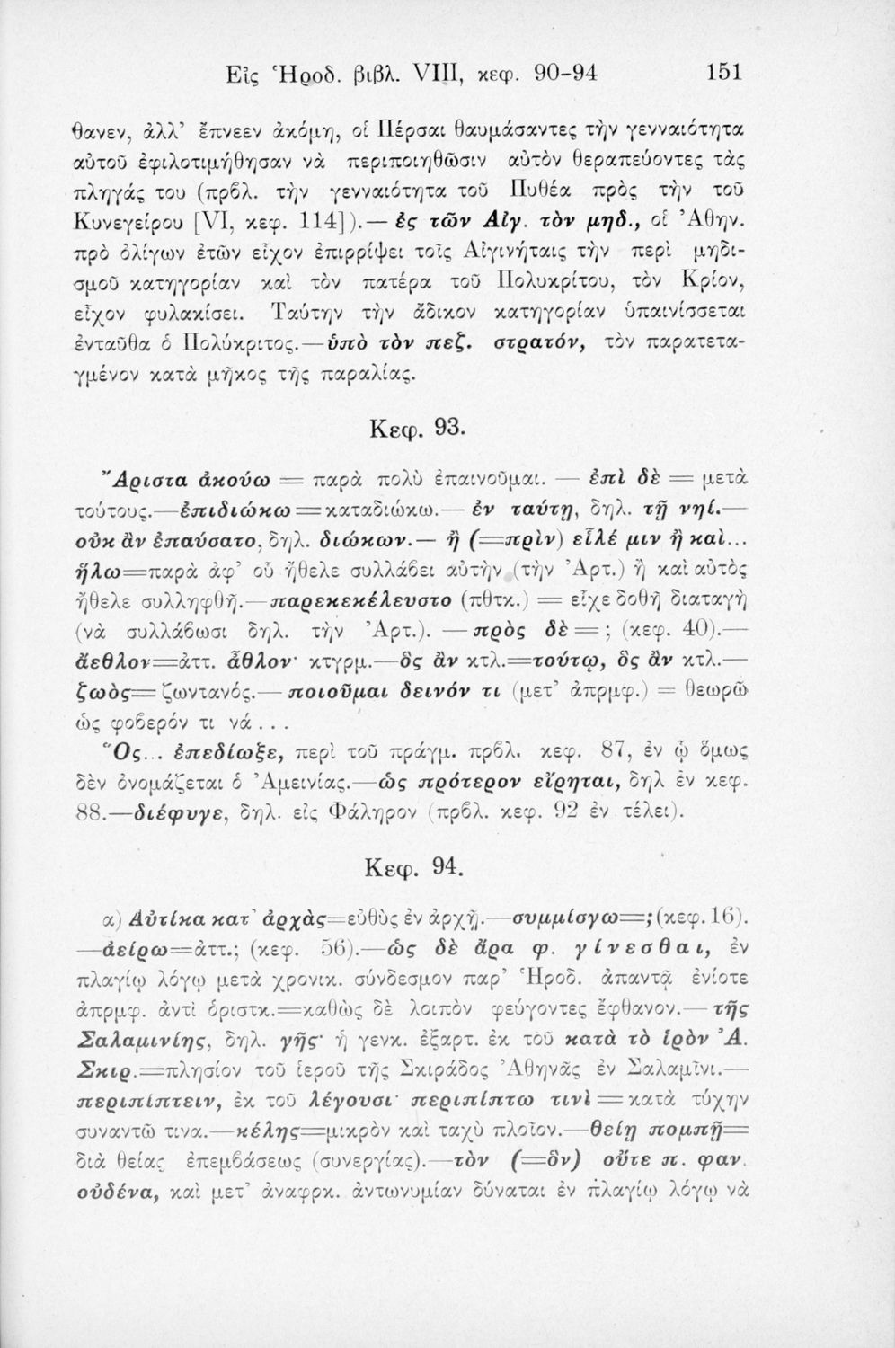 Σχολικό εγχειρίδιο Αρχαίων Ελληνικών Α΄ Γυμνασίου που περιλαμβάνει αποσπάσματα από την Ιστορία του Ηροδότου, βιογραφικά στοιχεία, εισαγωγή στο έργο και τη διάλεκτο του καθώς και ερμηνευτικά και πραγματολογικά σχόλια.
