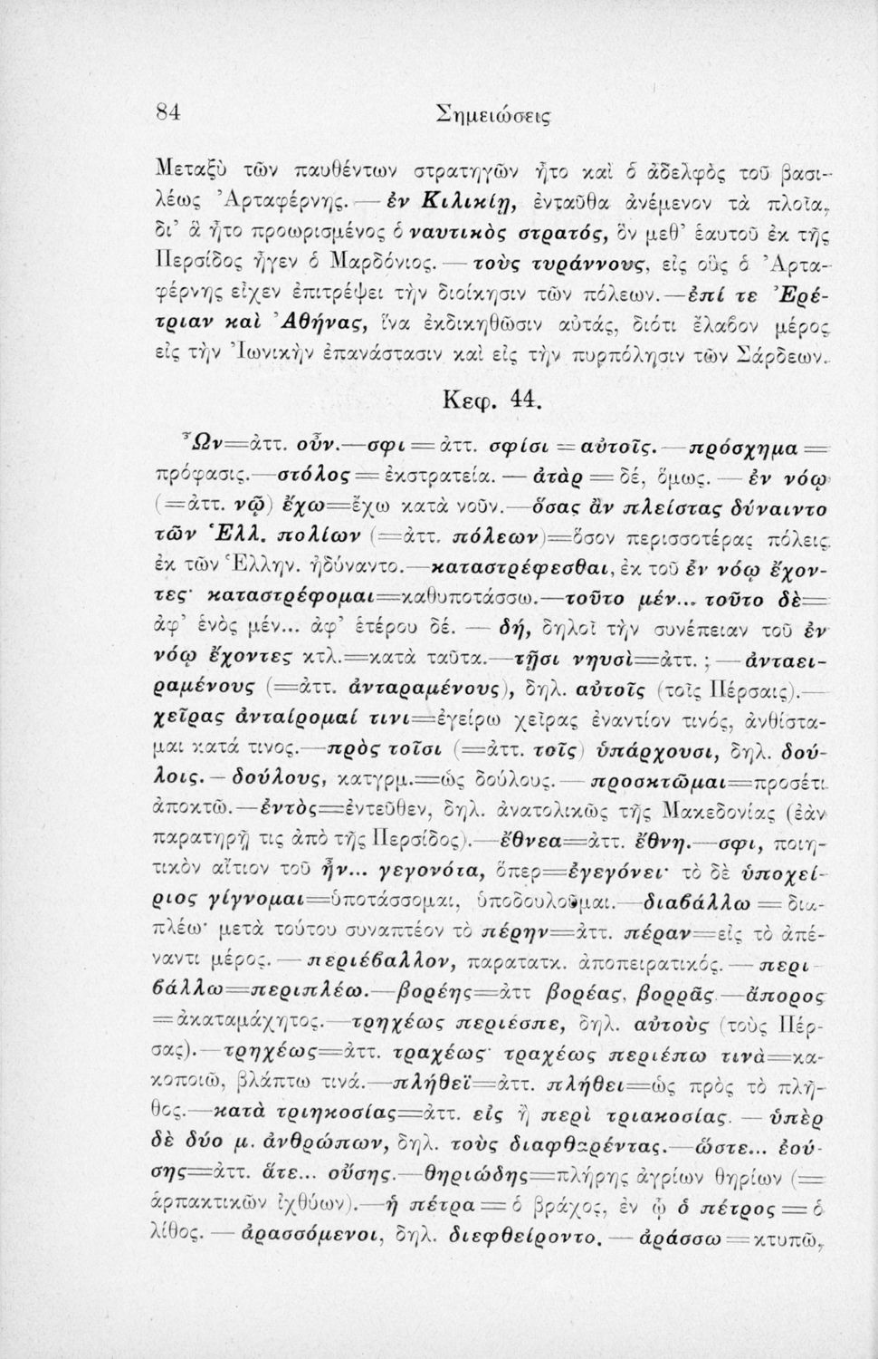 Σχολικό εγχειρίδιο της Γ' Ελληνικού Σχολείου και Αστικών Σχολείων για το μάθημα των Αρχαίων Ελληνικών. Το σύγγραμμα περιλαμβάνει κείμενα κατ΄ επιλογή από τα τέσσερα τελευταία βιβλία του έργου Κύρου Ανάβασις. ...
