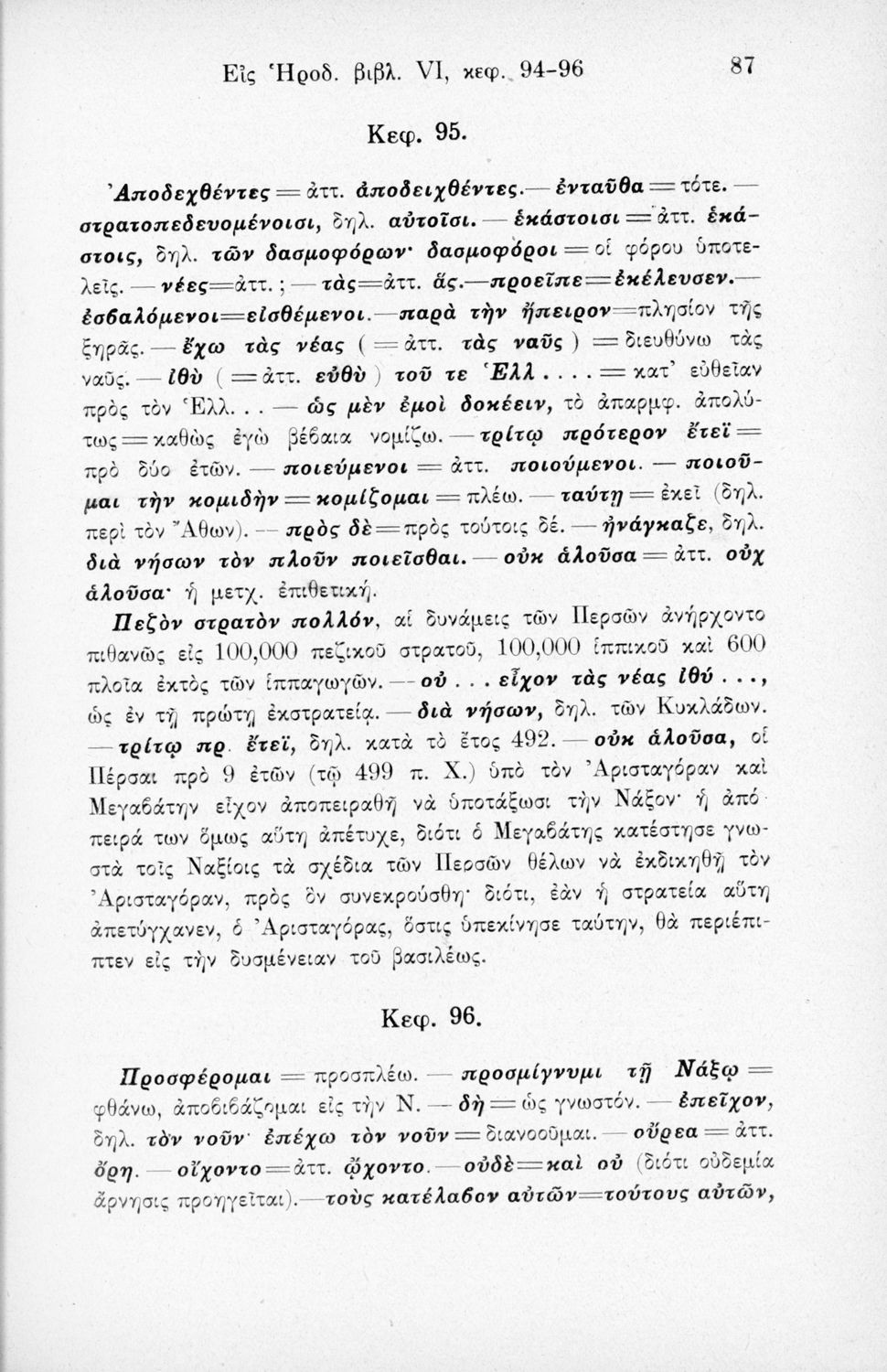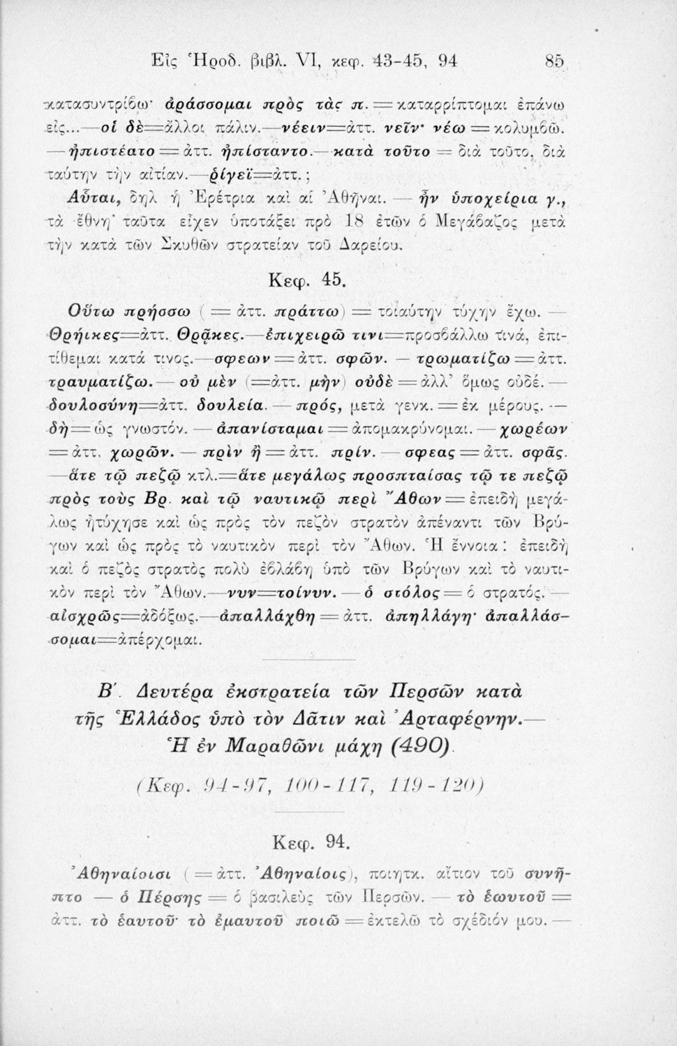 Σχολικό εγχειρίδιο Αρχαίων Ελληνικών Α΄ Γυμνασίου και Α' Διδασκαλείου που περιλαμβάνει αποσπάσματα από το έργο του Ηρόδοτου, ερμηνευτικές σημειώσεις, πραγματολογικά, λεξικολογικά και γραμματικά σχόλια.