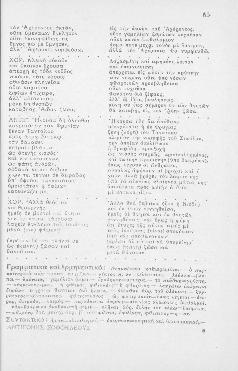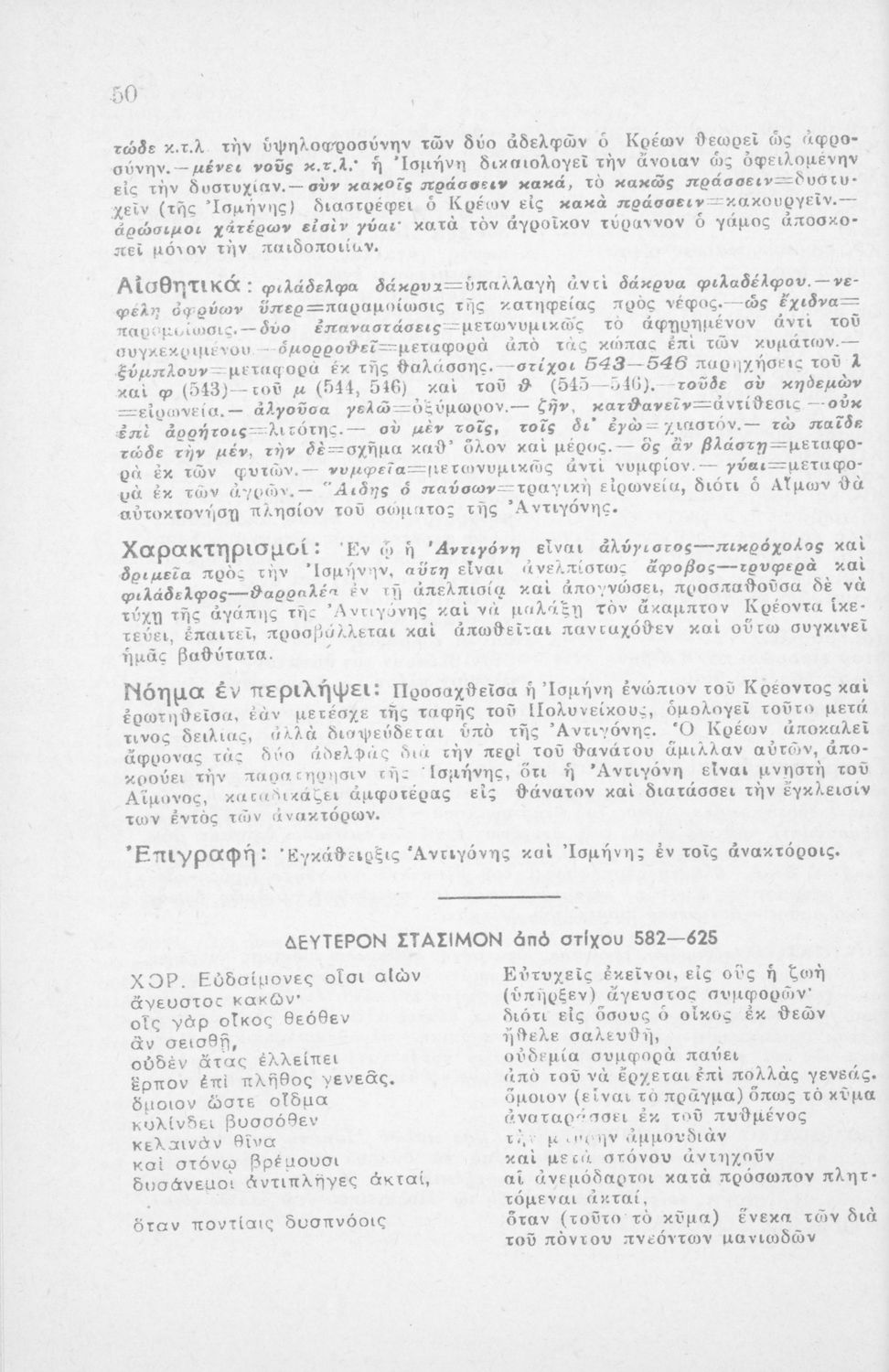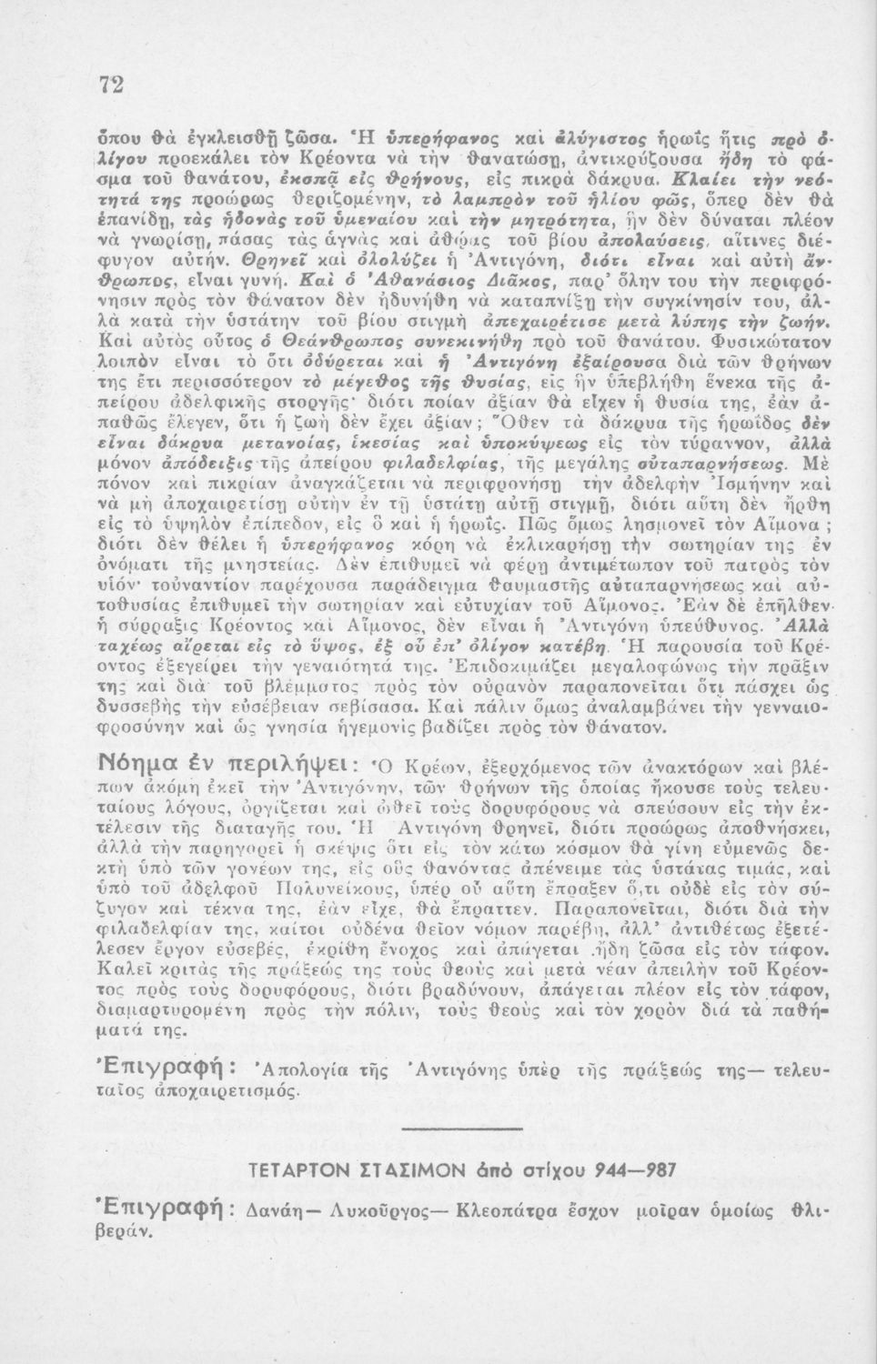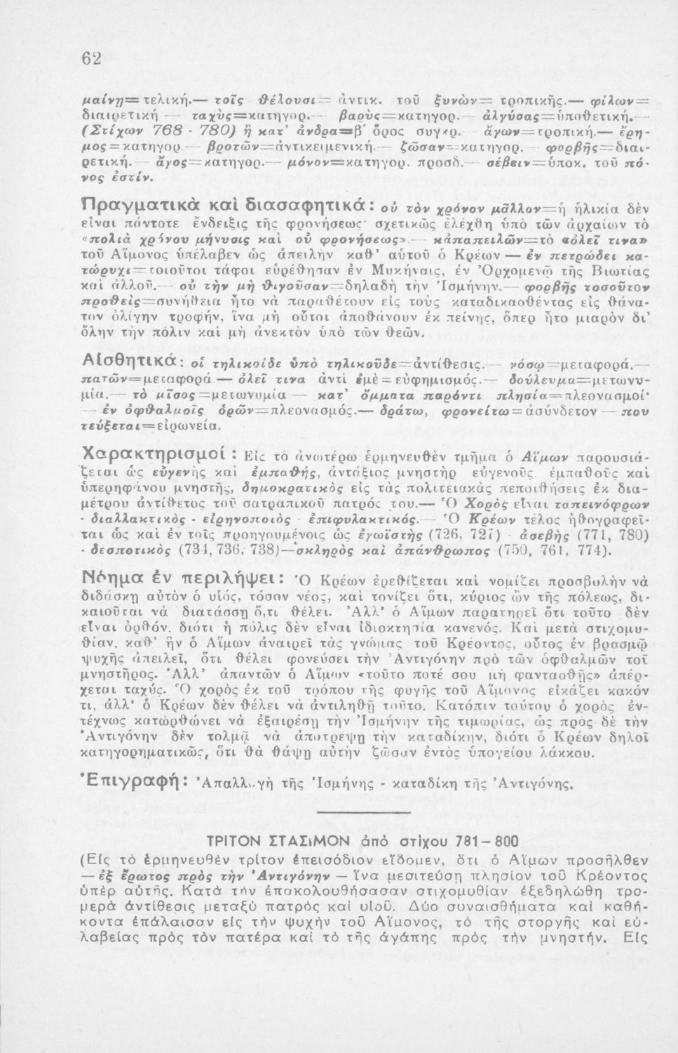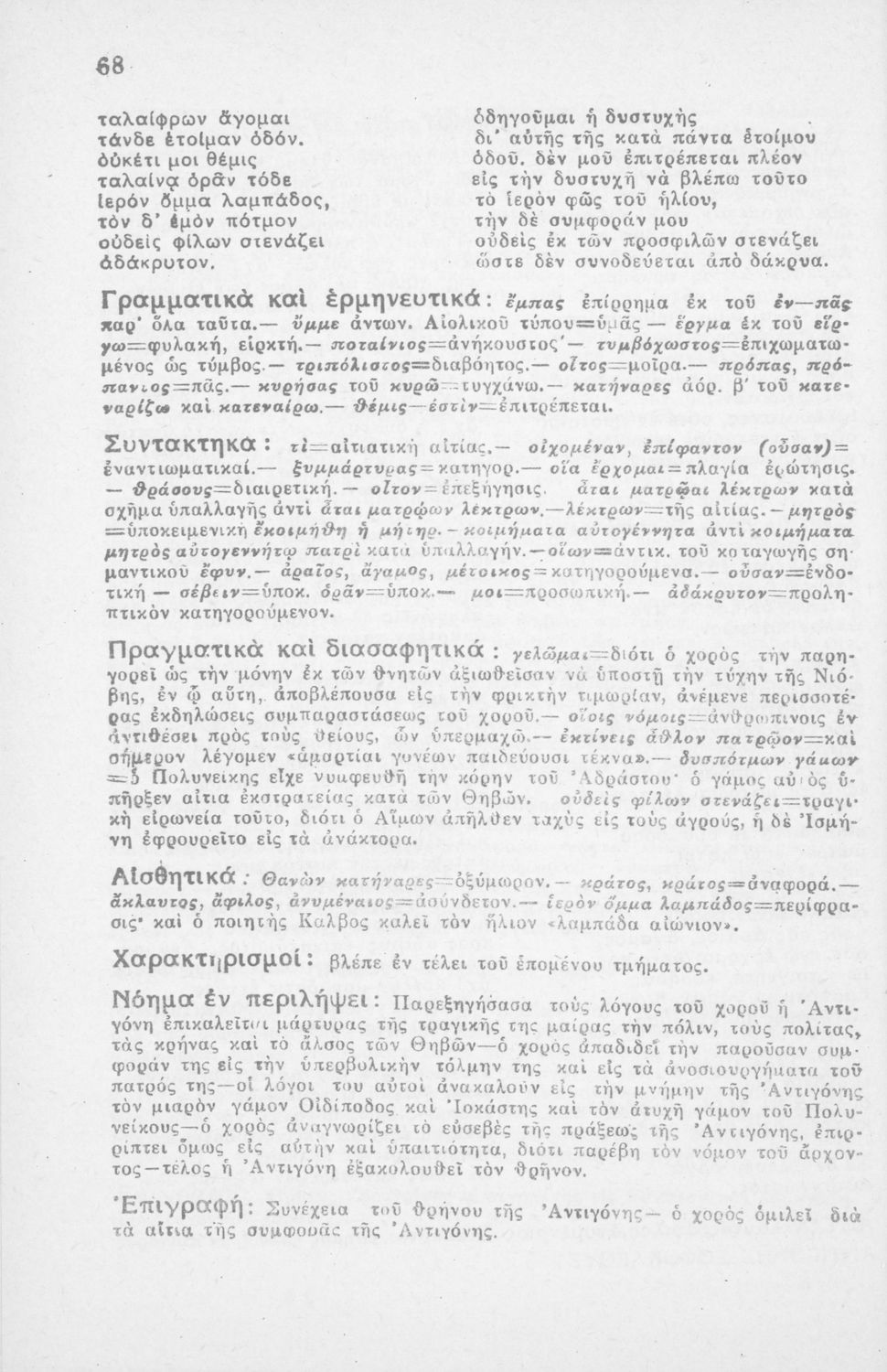 Αντιγόνη, Σοφοκλέους, δια τους μαθητάς της Η΄ τάξεως των Οκτατάξιων Γυμνασίων κατά το εγκεκριμένον βιβλίον του Ο.Ε.Σ.Β.