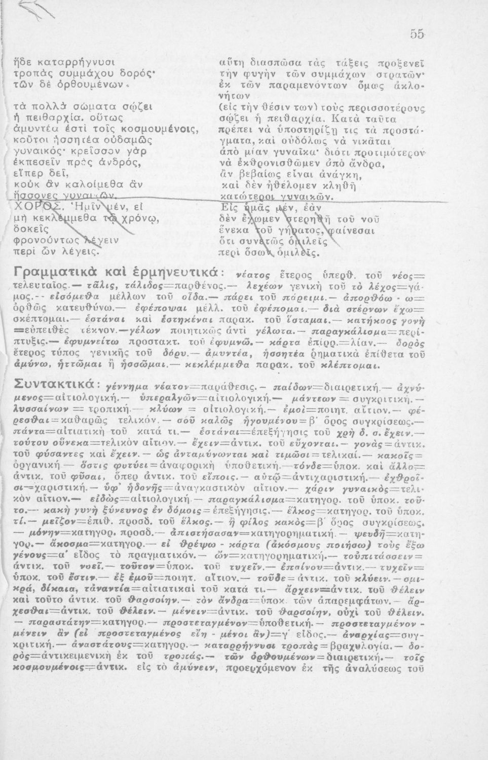 Μαθητικό βοήθημα Αρχαίων Ελληνικών Β' Λυκείου που περιλαμβάνει μετάφραση, ερμηνευτικές παρατηρήσεις καθώς και συντακτική ανάλυση.