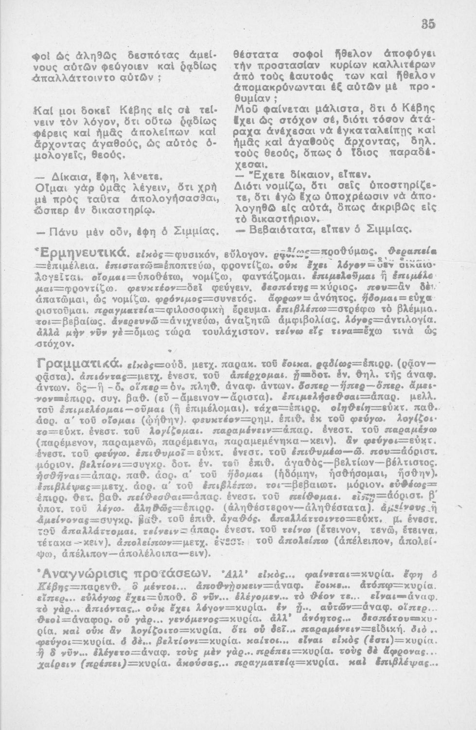 Μαθητικό βοήθημα Αρχαίων Ελληνικών για τους μαθητές της Η΄ τάξης των οκταταξίων Γυμνασίων. Περιέχει το κείμενο, την μετάφραση, γραμματικά και συντακτικά σχόλια.