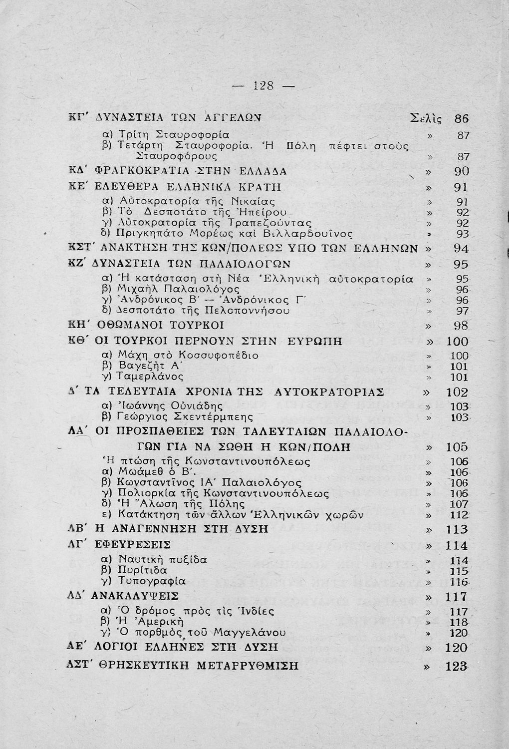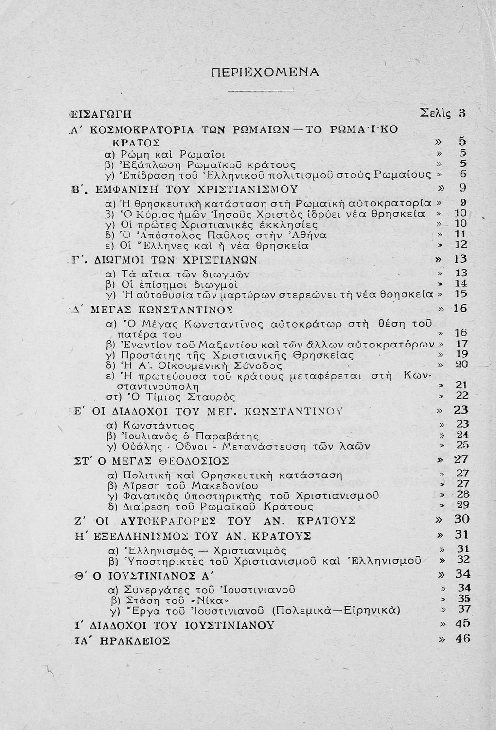 Μαθητικό βοήθημα Ιστορίας Δ΄ Δημοτικού που καλύπτει την περίοδο της Ρωμαϊκής και Βυζαντινής Αυτοκρατορίας μέχρι και την άλωση της Κωνσταντινούπολης. Ο συγγραφέας ήταν επιθεωρητής Δημοτικών Σχολείων.
