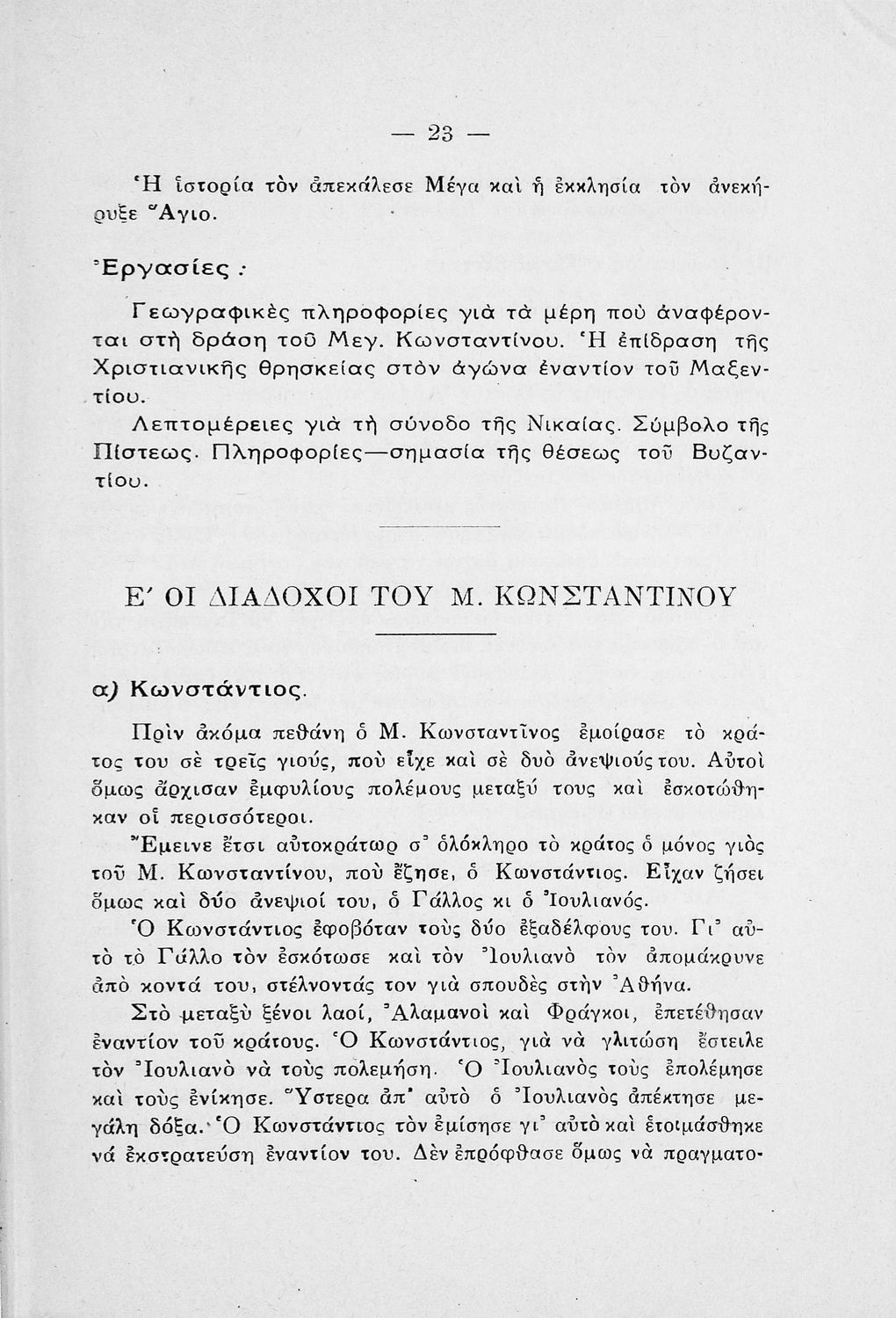 Μαθητικό βοήθημα Ιστορίας Δ΄ Δημοτικού που καλύπτει την περίοδο της Ρωμαϊκής και Βυζαντινής Αυτοκρατορίας μέχρι και την άλωση της Κωνσταντινούπολης. Ο συγγραφέας ήταν επιθεωρητής Δημοτικών Σχολείων.