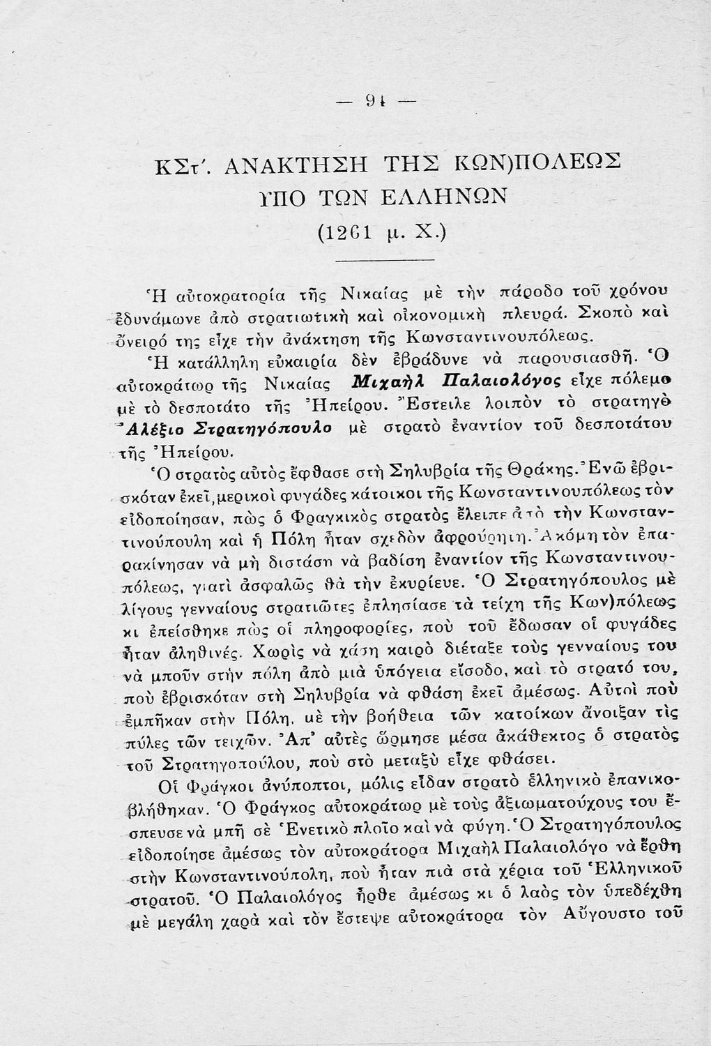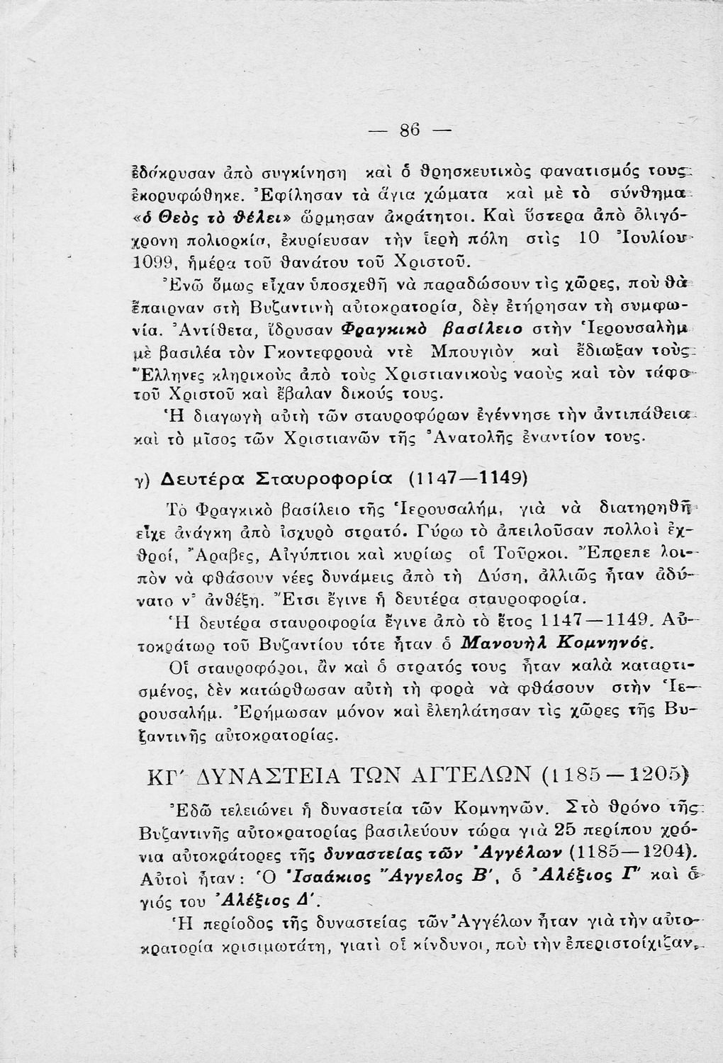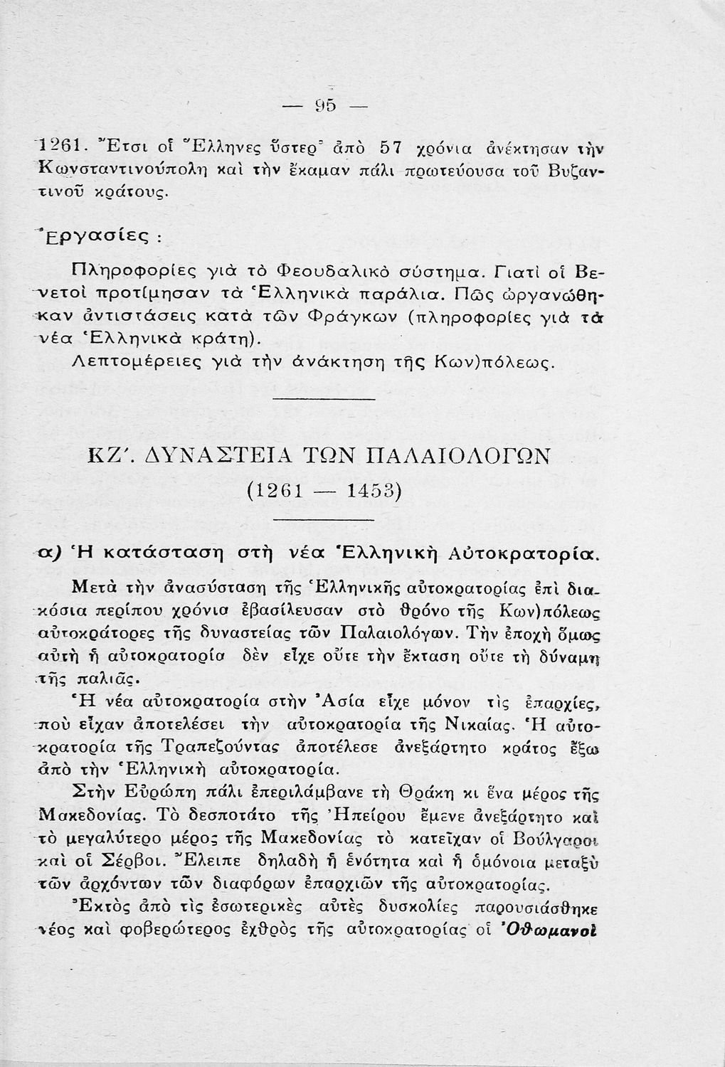 Σχολικό εγχειρίδιο για το μάθημα της Ιστορίας στους μαθητές του Δημοτικού. Αναφέρεται στα χρόνια της Βυζαντινής Αυτοκρατορίας μέχρι και την άλωση της Πόλης. Το τελευταίο κεφάλαιο αναφέρεται στα επιτεύγματα της