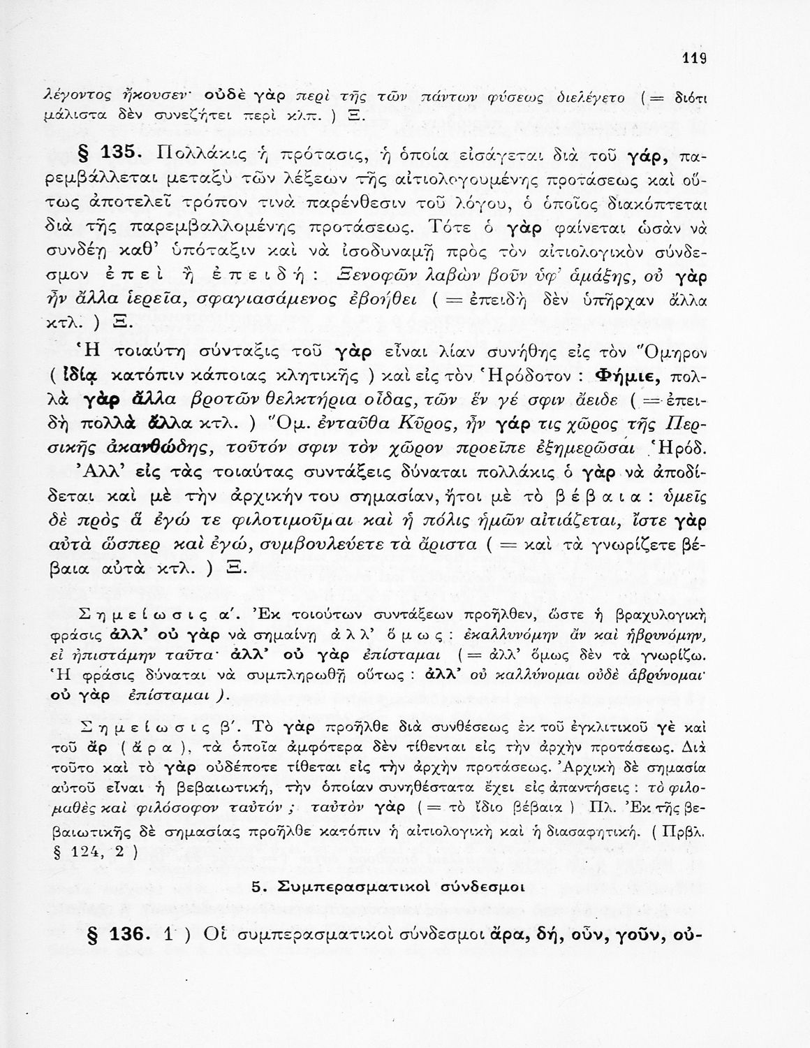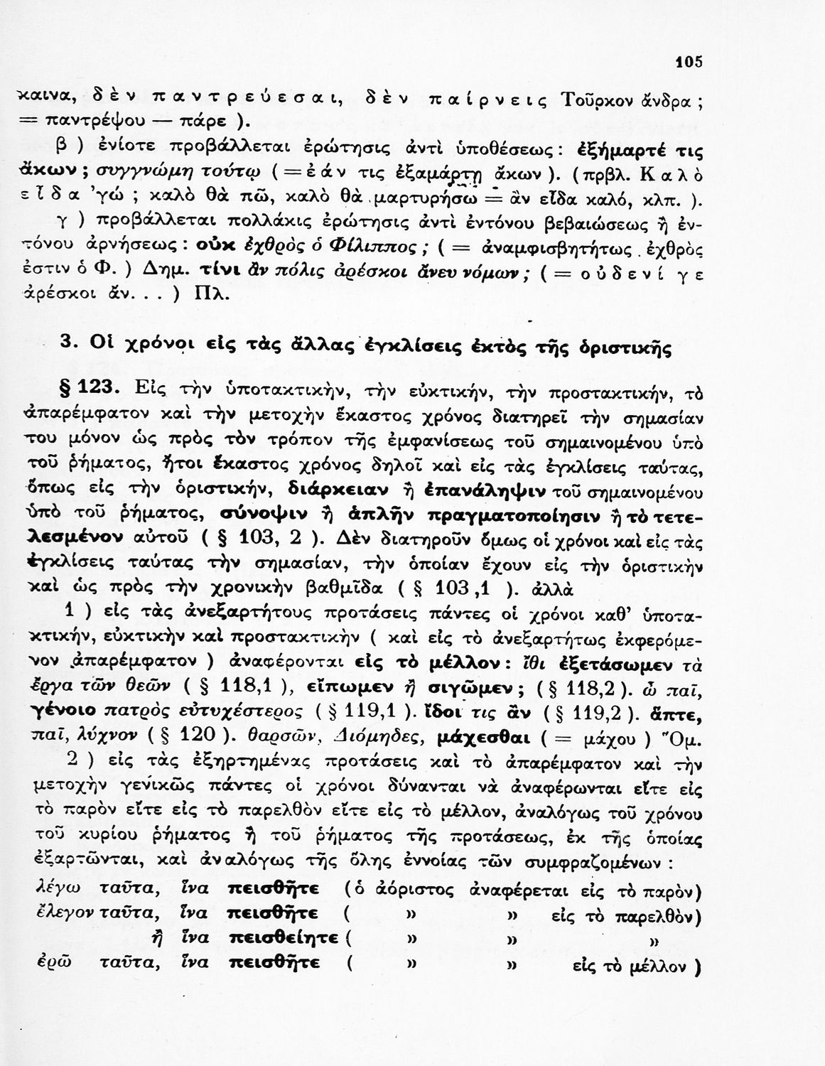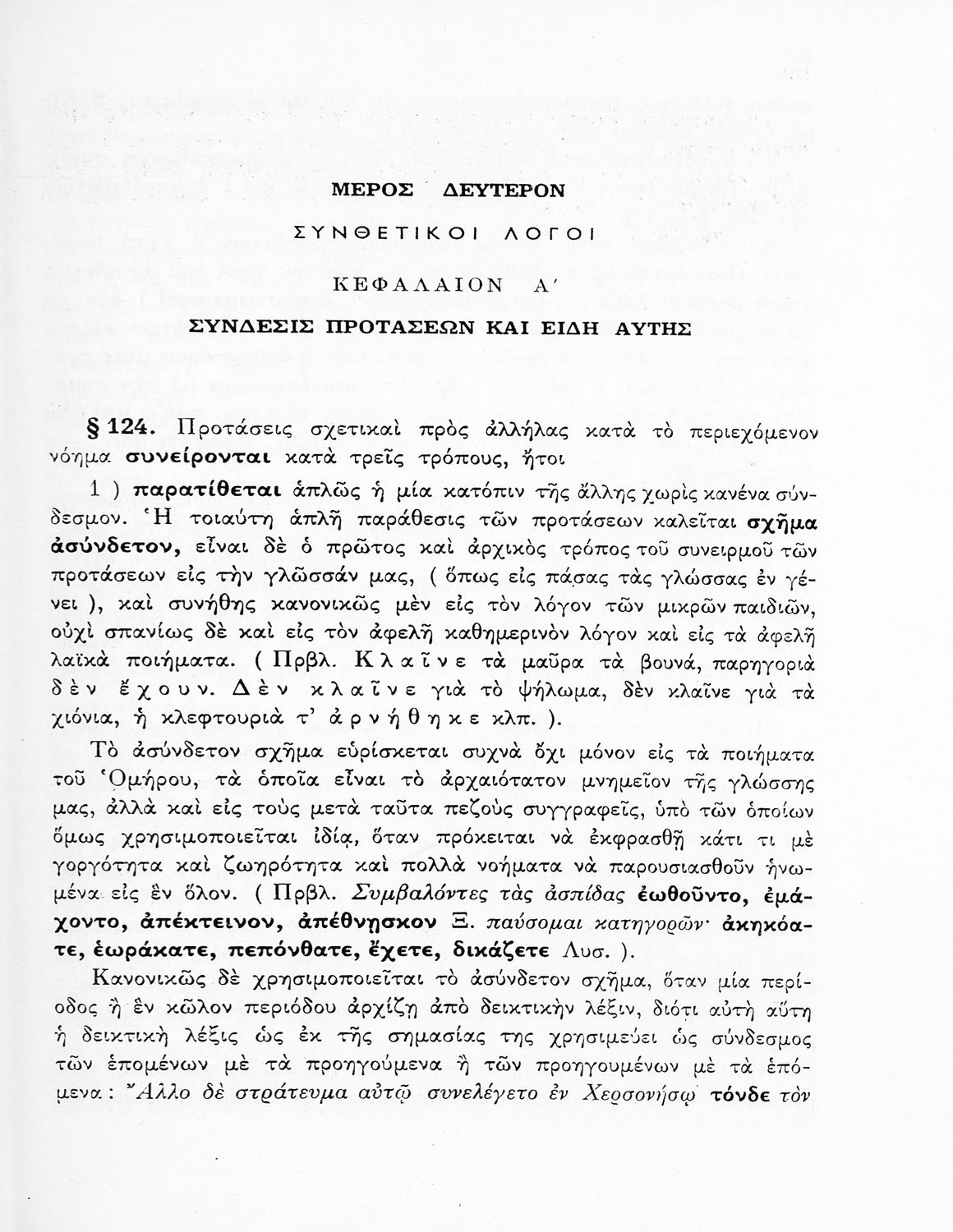 Βαθμίδα εκπαίδευσης: Δευτεροβάθμια Μάθημα: Αρχαία Ελληνικά Γλώσσα: Καθαρεύουσα Παρουσίαση περιεχομένου: Σχολικό εγχειρίδιο Αρχαίων Ελληνικών Γυμνασίου που εξετάζει τα μέρη του λόγου και την σύνταξή τους. |