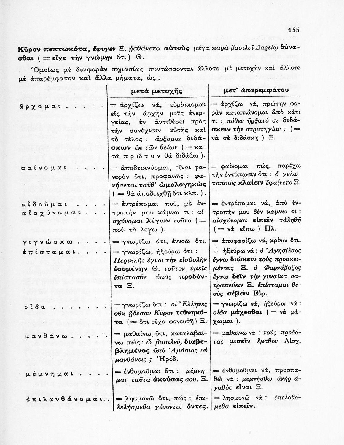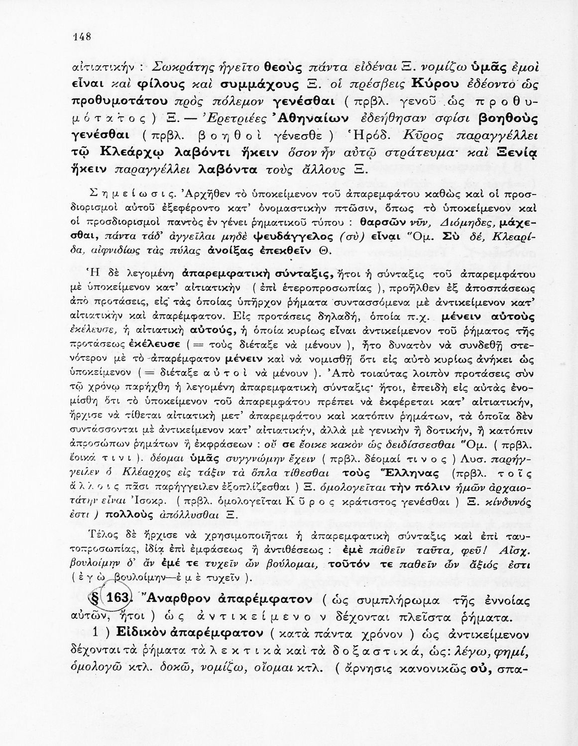 Σχολικό Εγχειρίδιο Αρχαίων Ελληνικών που περιλαμβάνει κείμενα προσαρμοσμένα στη διδασκαλία των γραμματικών και συντακτικών φαινομένων, και ερμηνευτικές και λεξιλογικές σημειώσεις.
