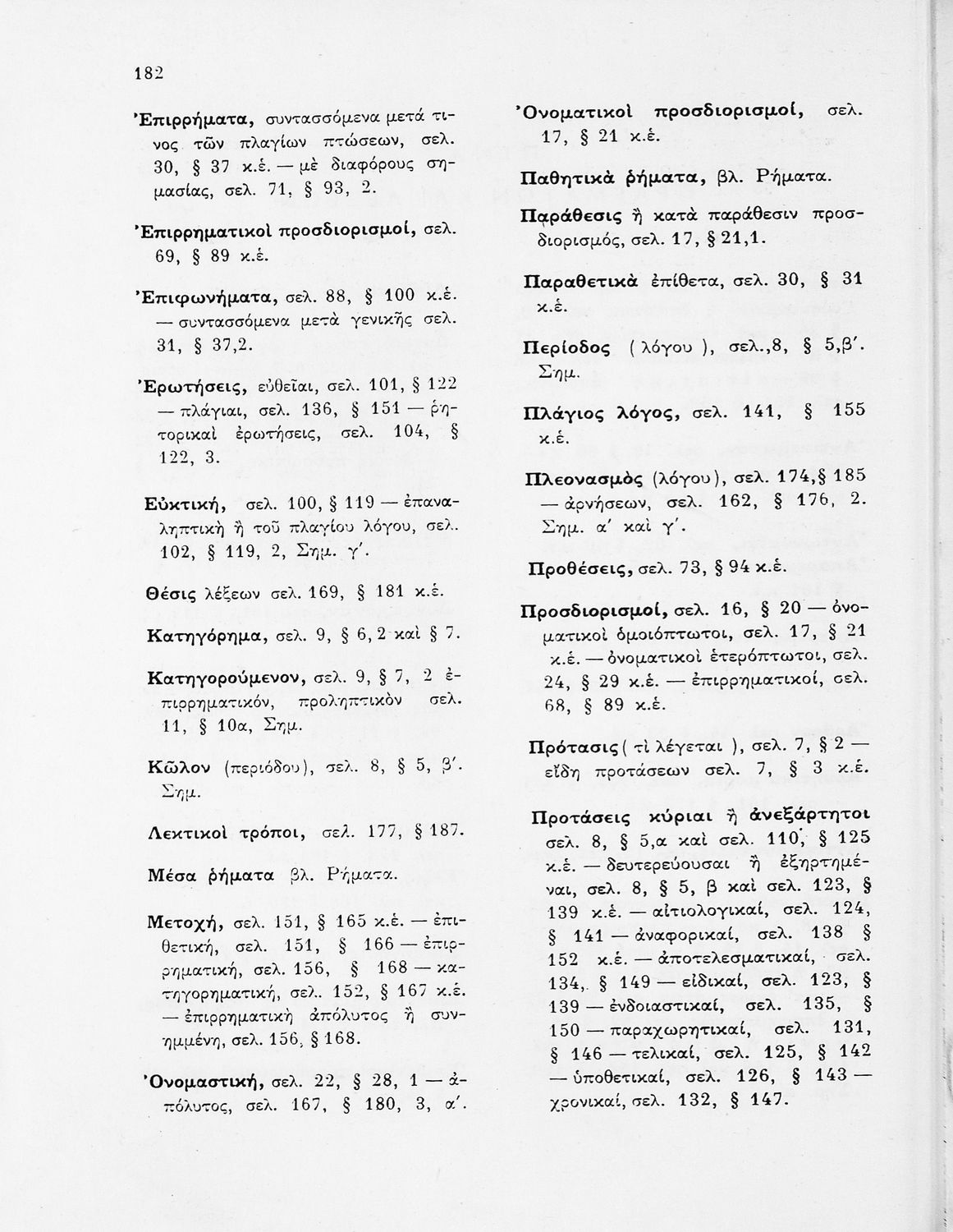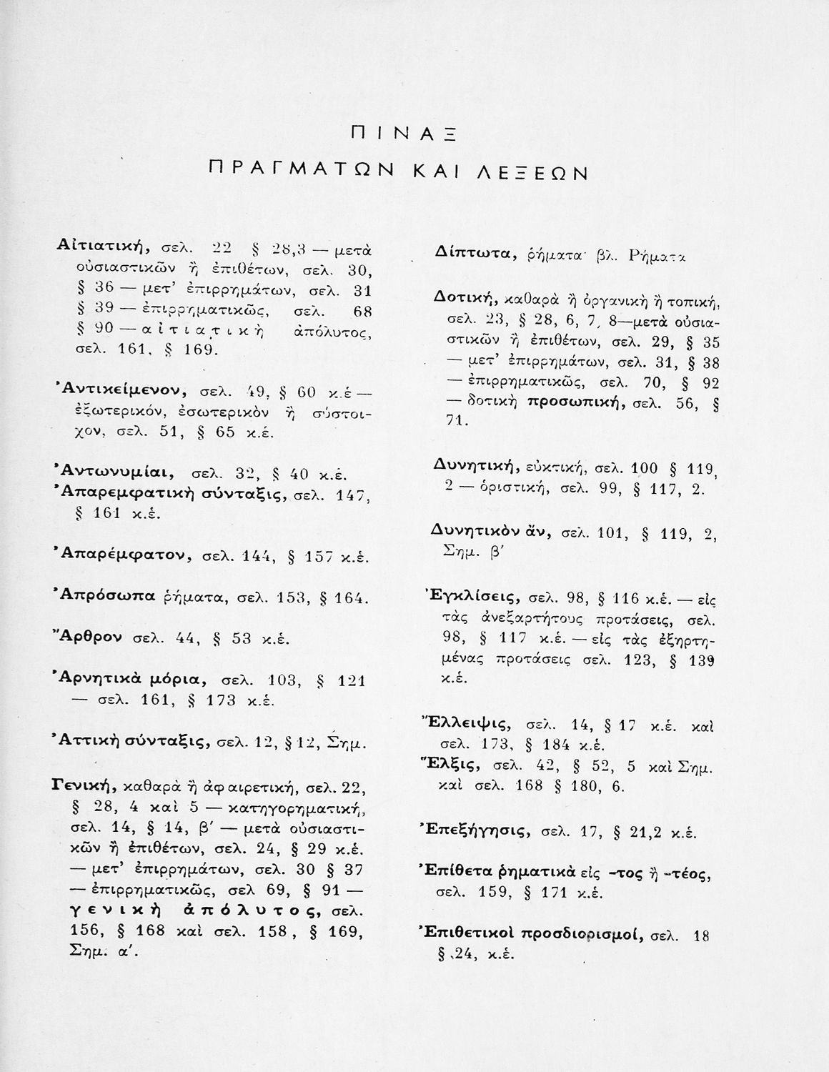 Βαθμίδα εκπαίδευσης: Δευτεροβάθμια Μάθημα: Αρχαία Ελληνικά Γλώσσα: Καθαρεύουσα Παρουσίαση περιεχομένου: Σχολικό εγχειρίδιο Αρχαίων Ελληνικών Γυμνασίου που εξετάζει τα μέρη του λόγου και την σύνταξή τους. |