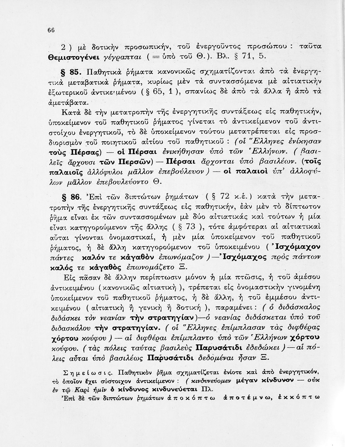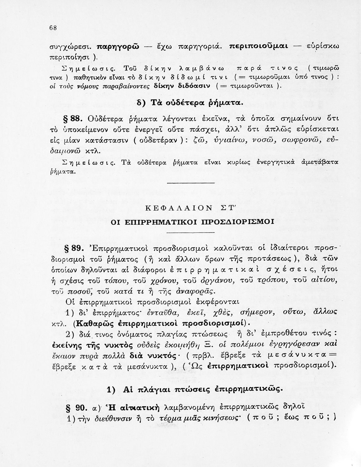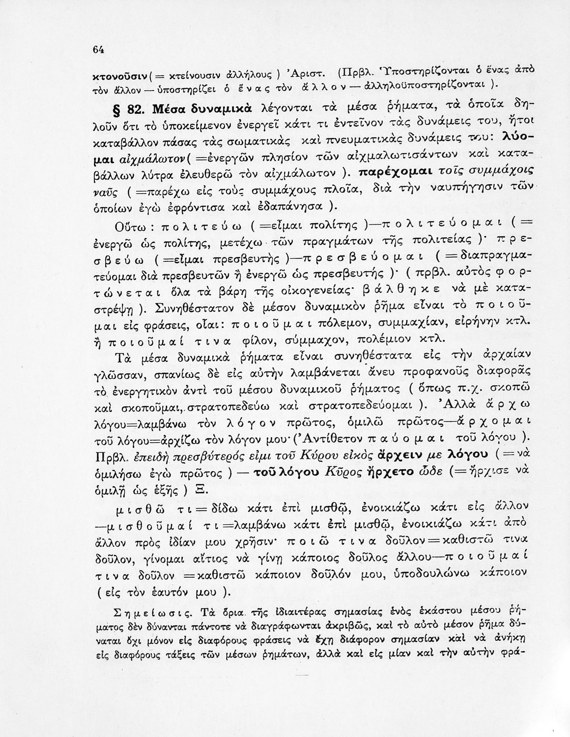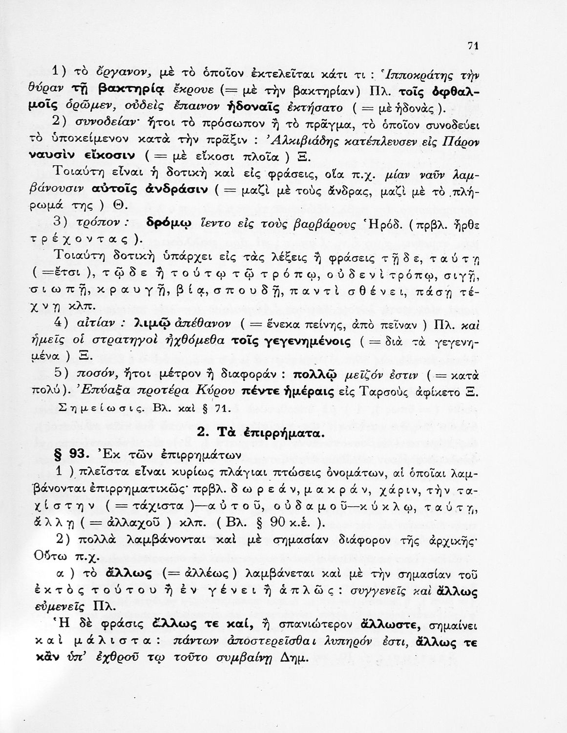 Βαθμίδα εκπαίδευσης: Δευτεροβάθμια Μάθημα: Αρχαία Ελληνικά Γλώσσα: Καθαρεύουσα Παρουσίαση περιεχομένου: Σχολικό εγχειρίδιο Αρχαίων Ελληνικών Γυμνασίου που εξετάζει τα μέρη του λόγου και την σύνταξή τους. |