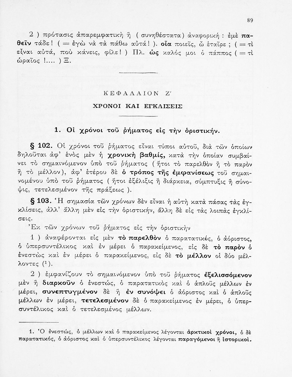 Σχολικό Εγχειρίδιο Αρχαίων Ελληνικών που περιλαμβάνει κείμενα προσαρμοσμένα στη διδασκαλία των γραμματικών και συντακτικών φαινομένων, και ερμηνευτικές και λεξιλογικές σημειώσεις.
