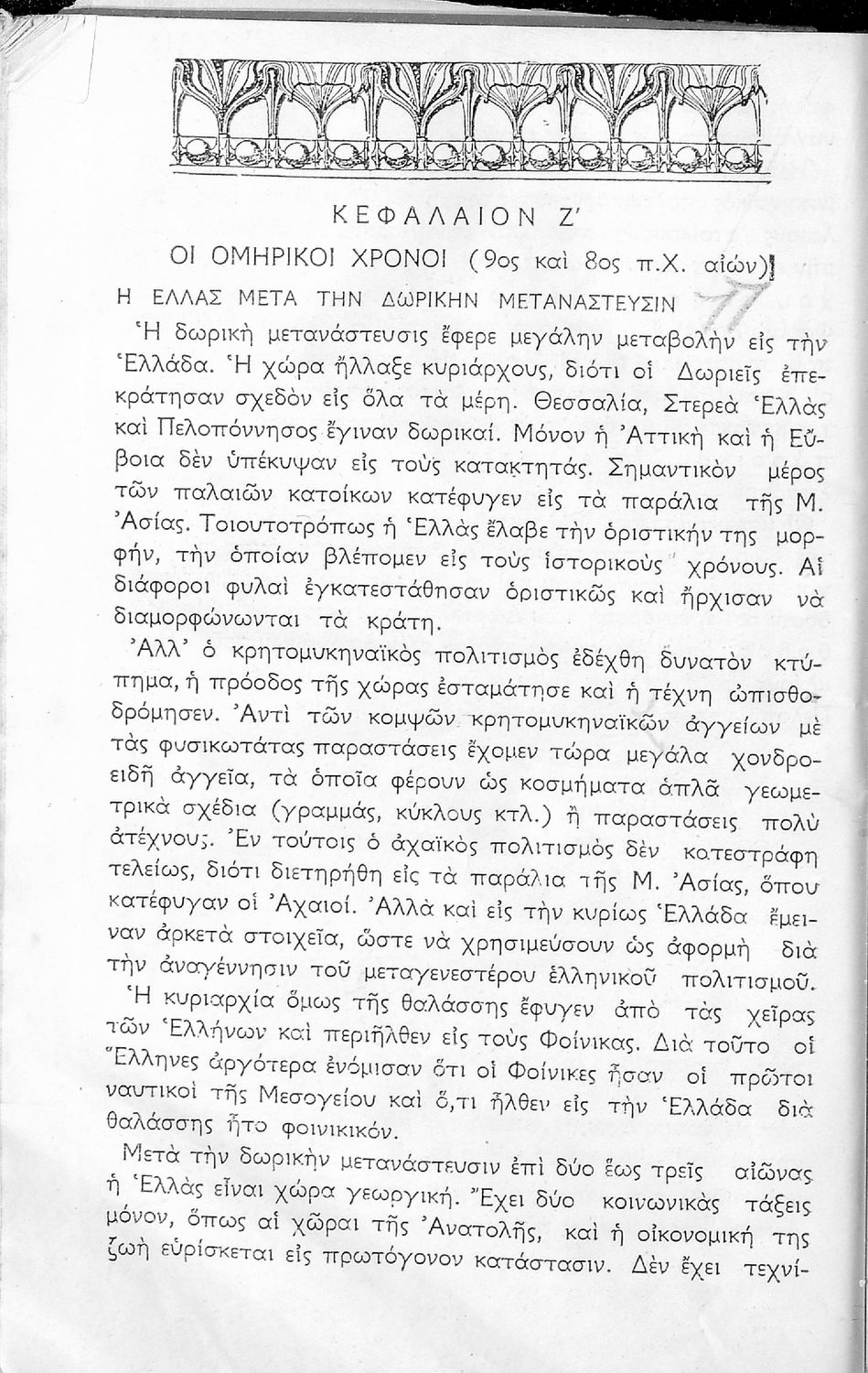 Σχολικό εγχειρίδιο Ιστορίας Α΄ Γυμνασίου που καλύπτει την περίοδο από τους προϊστορικούς χρόνους ως τις μεταρρυθμίσεις του Κλεισθένη. Περιέχει και εκτενή αναφορά στην ανάπτυξη των γραμμάτων, των τεχνών και του