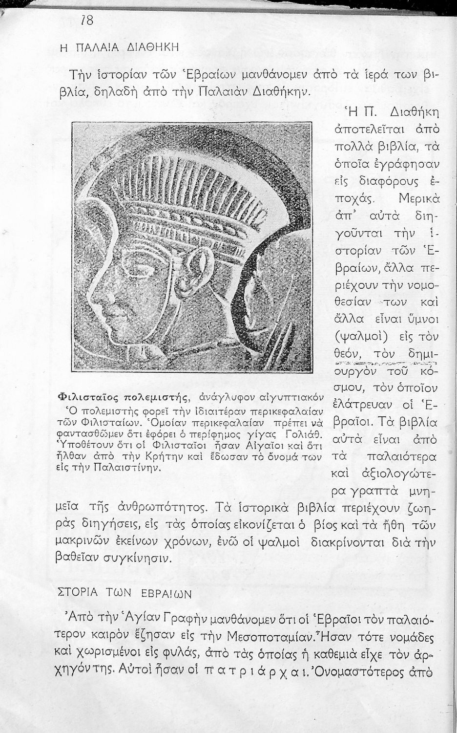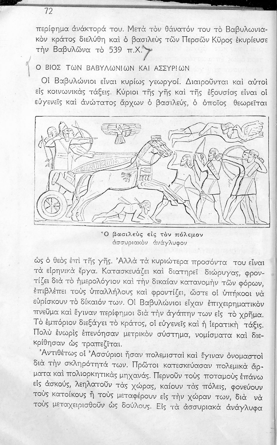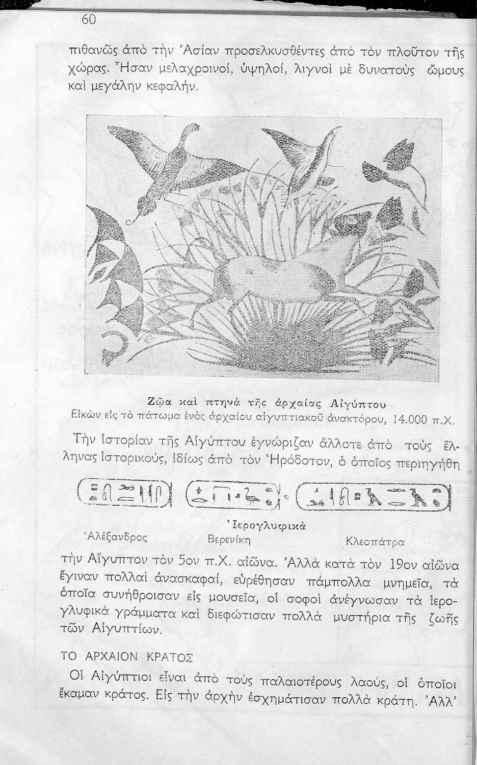 Σχολικό εγχειρίδιο Ιστορίας Α΄ Γυμνασίου που καλύπτει την περίοδο από την εμφάνιση των πρώτων πολιτισμών ως το τέλος της Μακεδονικής Ηγεμονίας. Φέρει το σύμβολο της δικτατορίας.