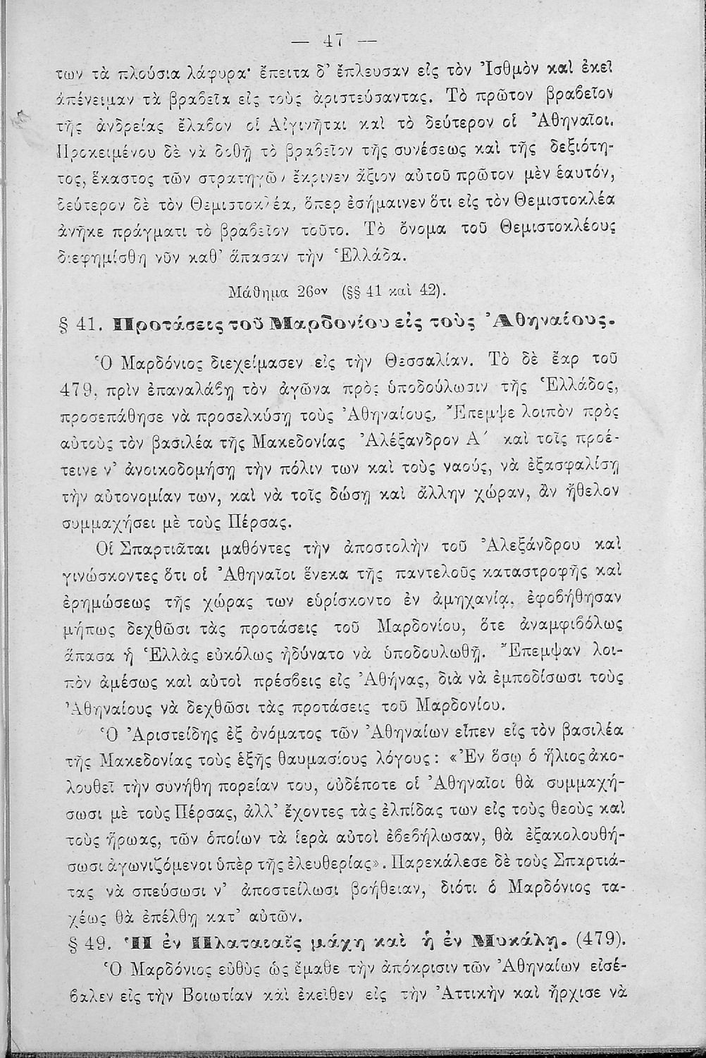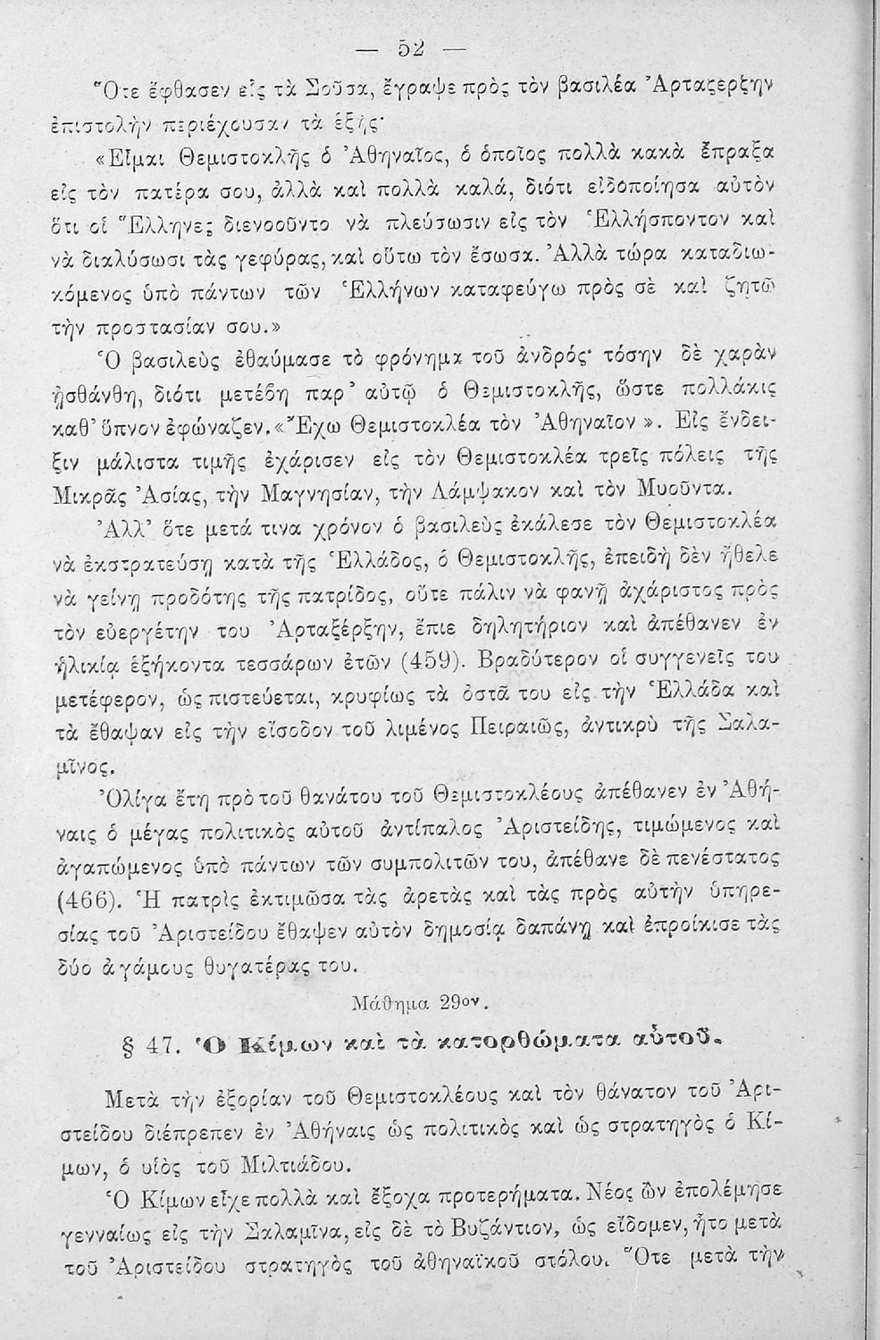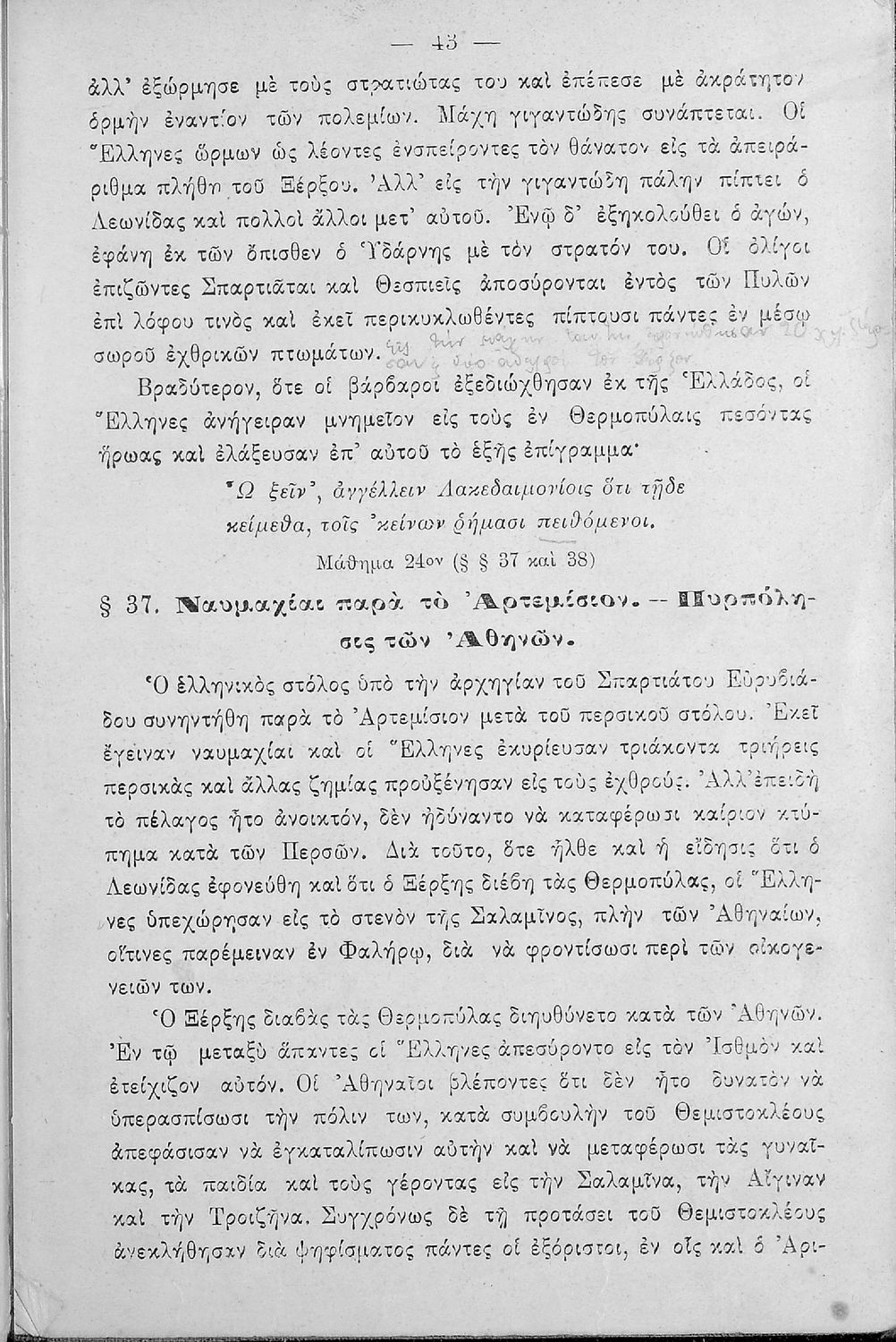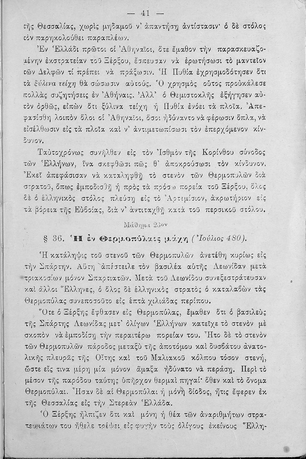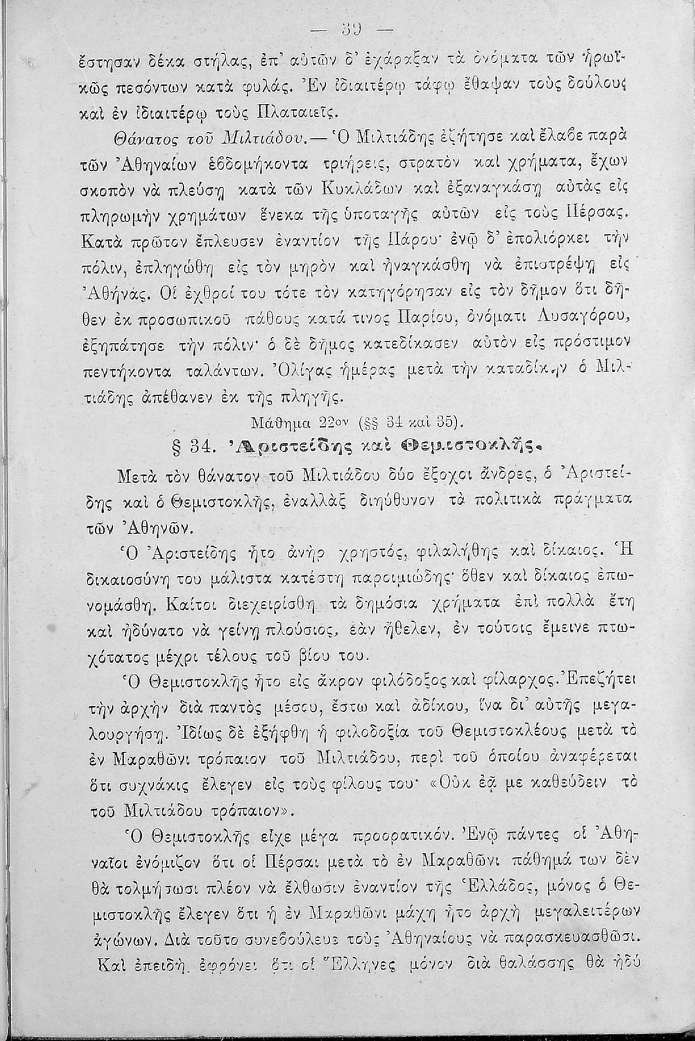 Σχολικό εγχειρίδιο Ιστορίας Α΄ Ελληνικού και Παρθεναγωγείου που καλύπτει την περίοδο από τους μυθικούς και ηρωικούς χρόνους μέχρι την μάχη της Μαντινείας και τον θάνατο του Επαμεινώνδα.