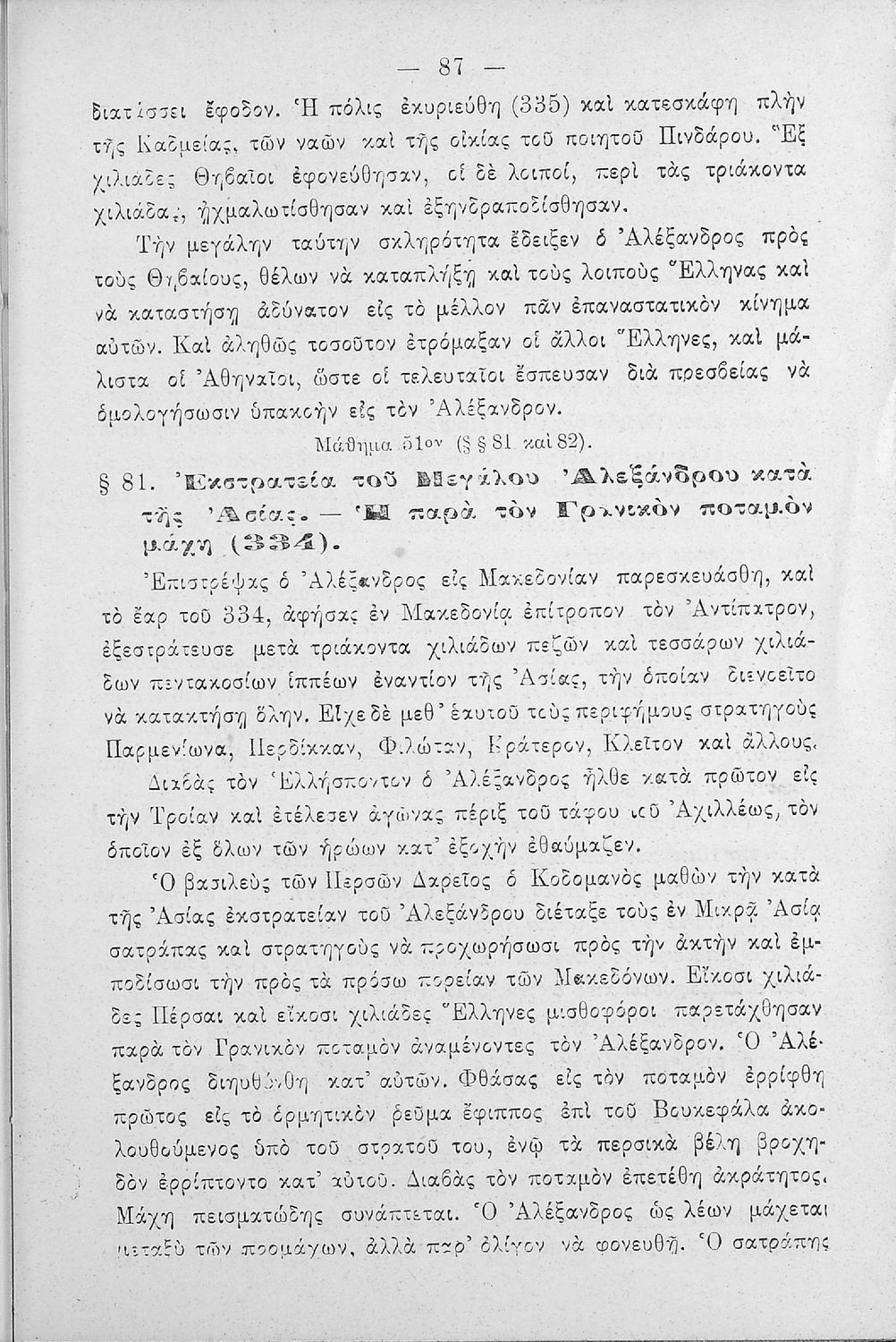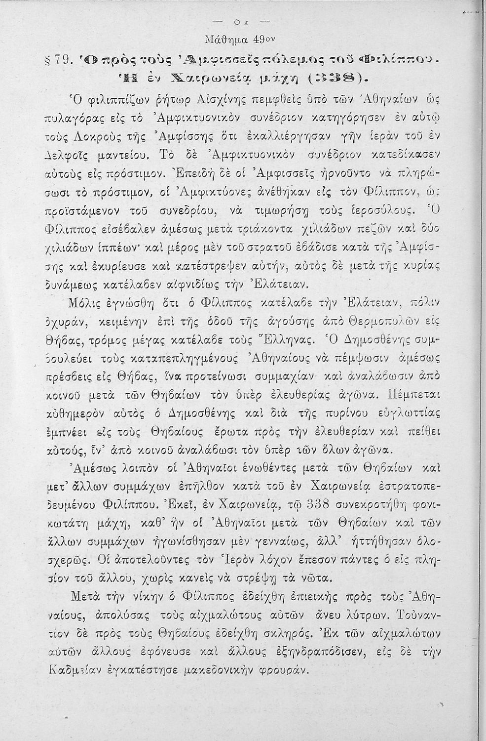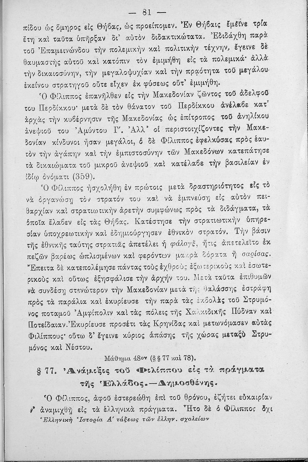 Σχολικό εγχειρίδιο Ιστορίας Α΄ Ελληνικού και Παρθεναγωγείου που καλύπτει την περίοδο από τους μυθικούς και ηρωικούς χρόνους μέχρι την μάχη της Μαντινείας και τον θάνατο του Επαμεινώνδα.