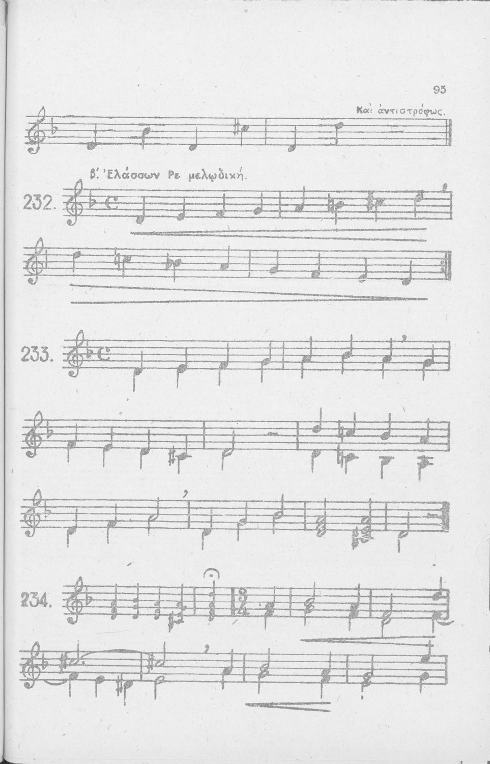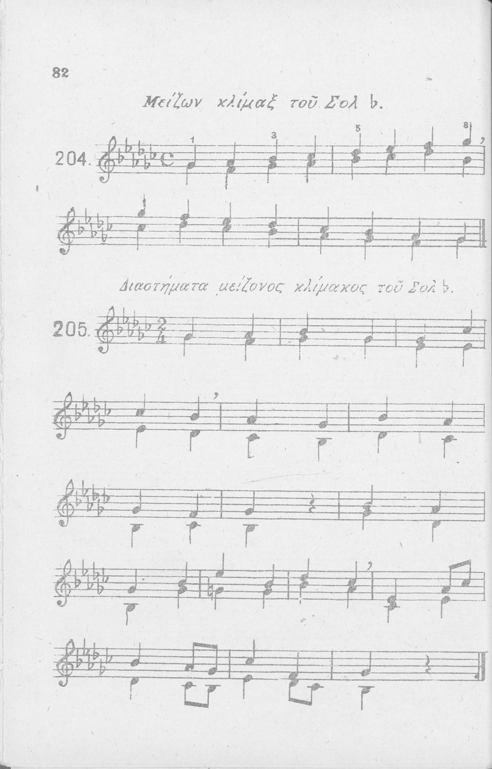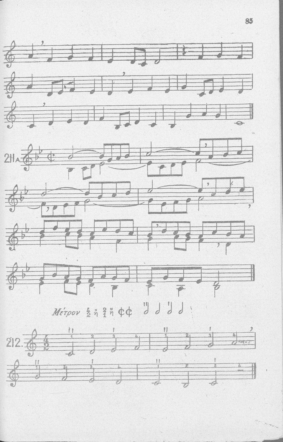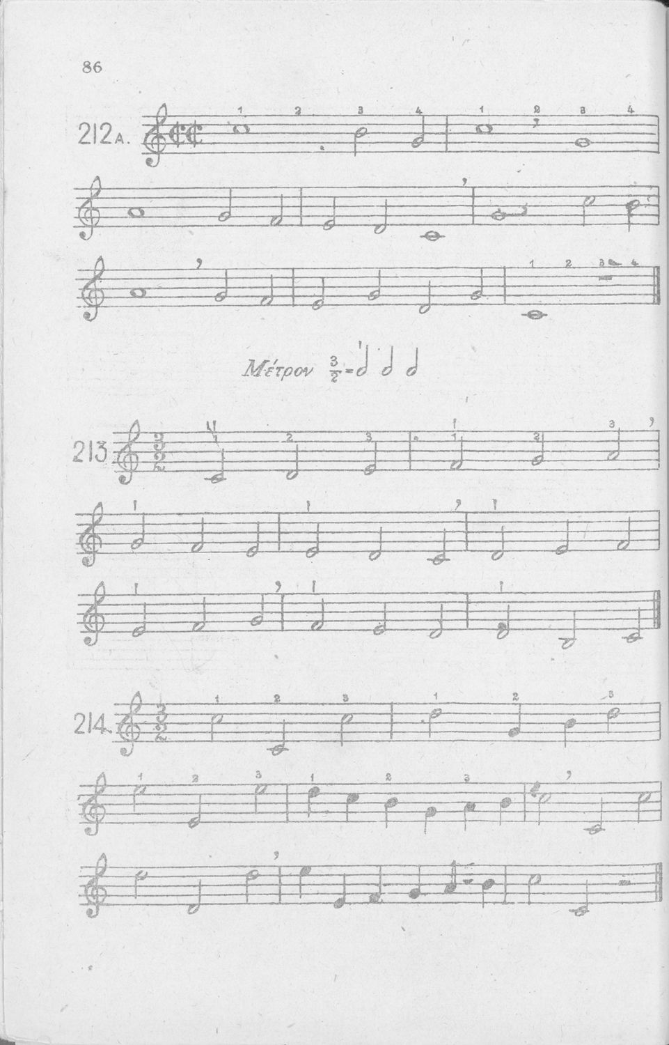 Σχολικό εγχειρίδιο Μουσικής για Γυμνάσια, Παρθεναγωγεία και Διδασκαλεία. Περιέχει ασκήσεις μελωδικές, χωρίς θεωρία.