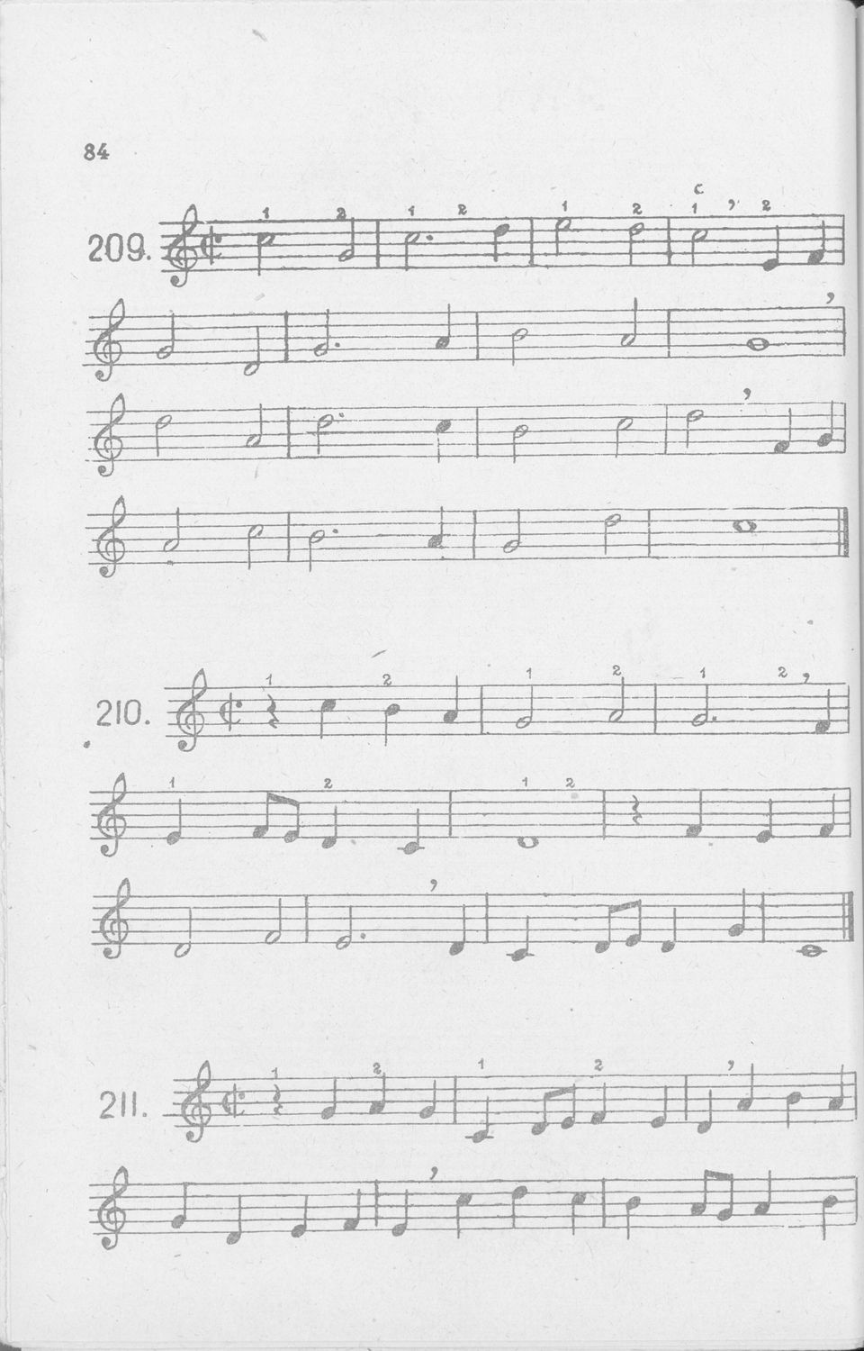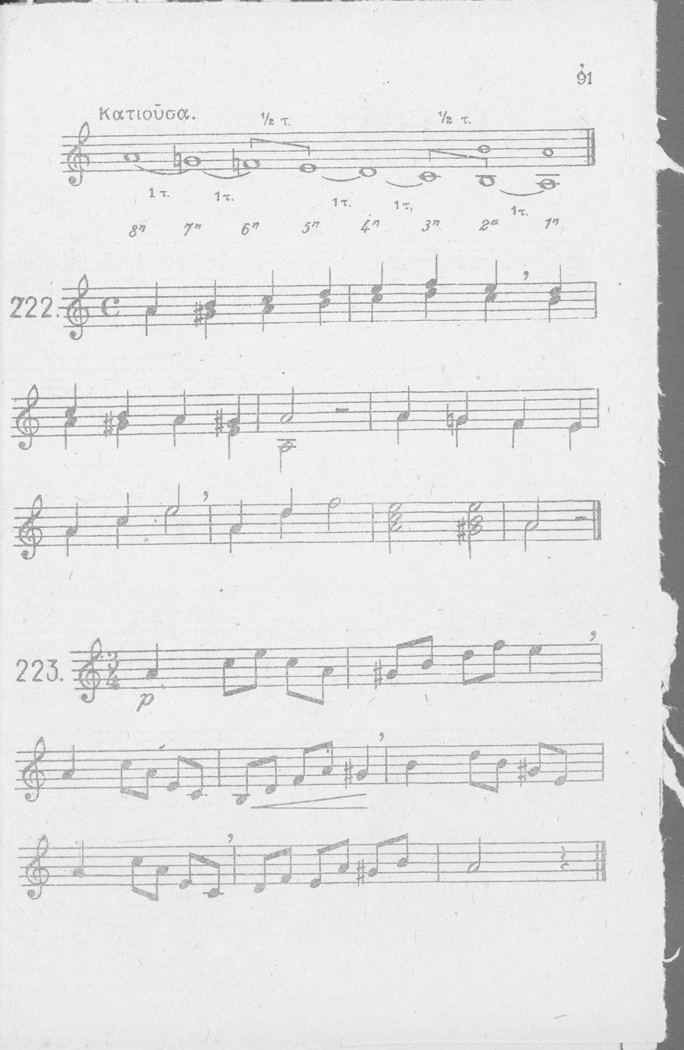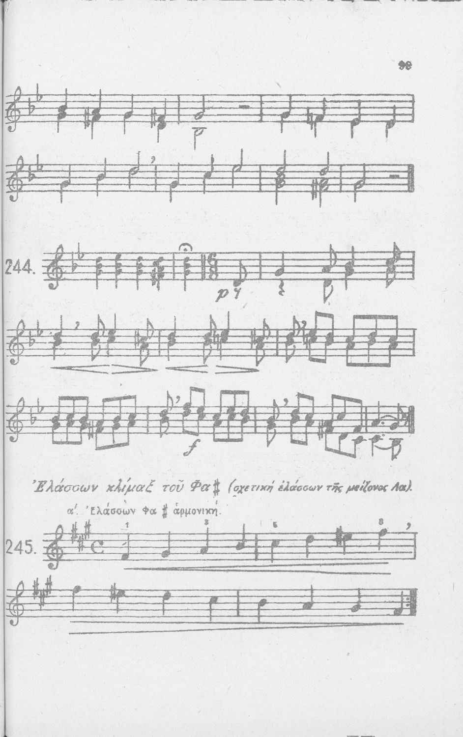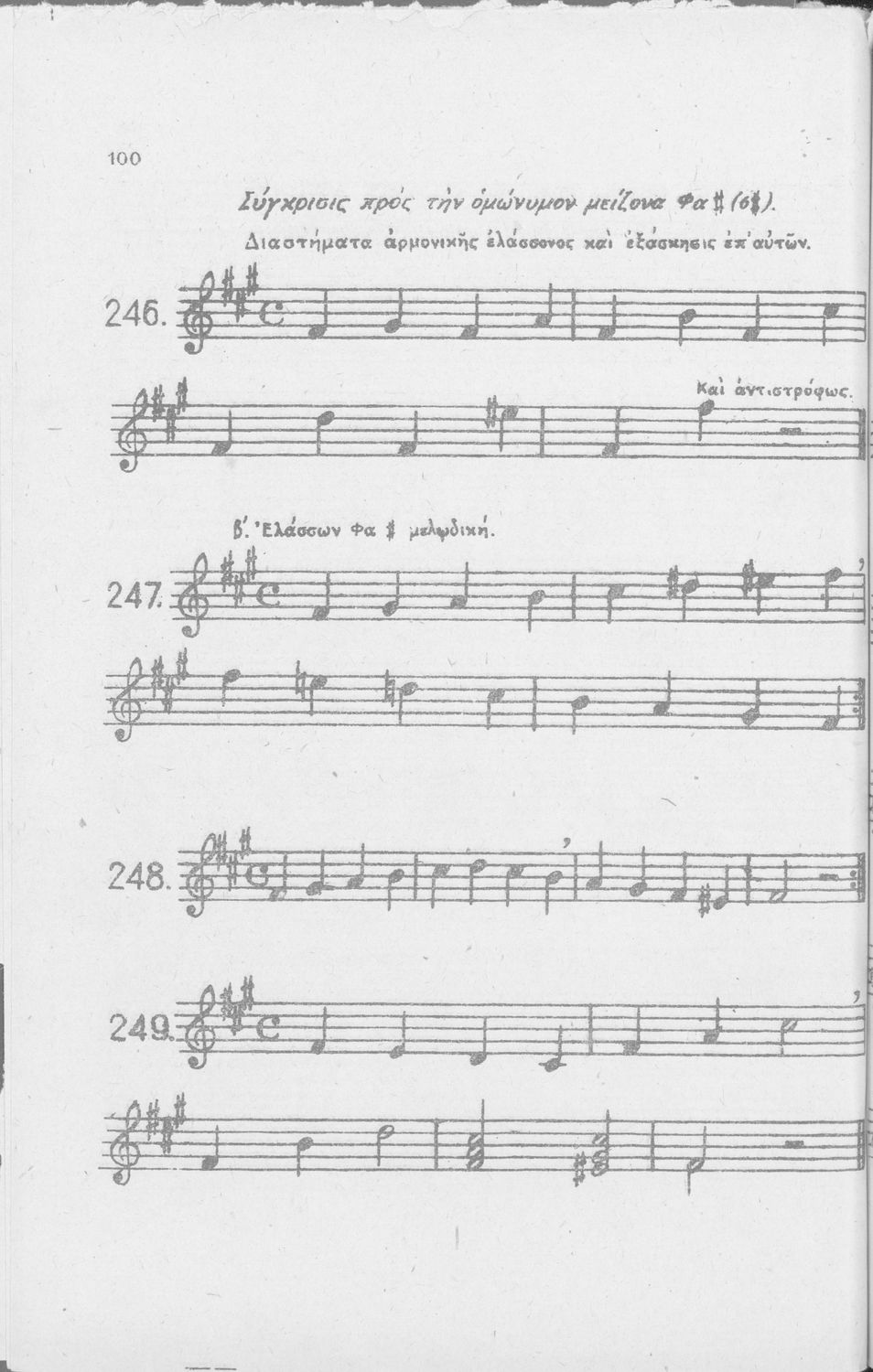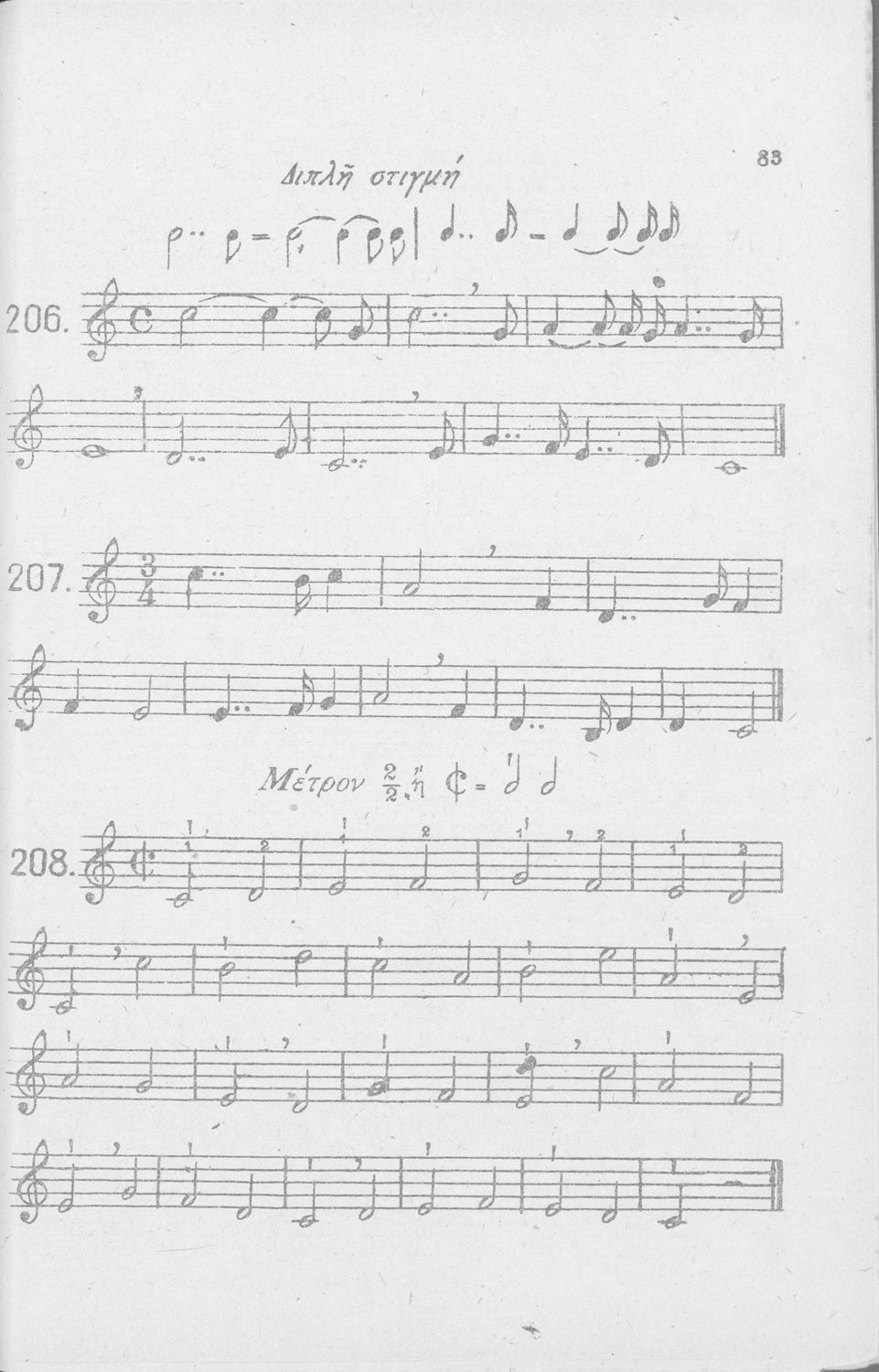 Σχολικό εγχειρίδιο Μουσικής για Γυμνάσια, Παρθεναγωγεία και Διδασκαλεία. Περιέχει ασκήσεις μελωδικές, χωρίς θεωρία.