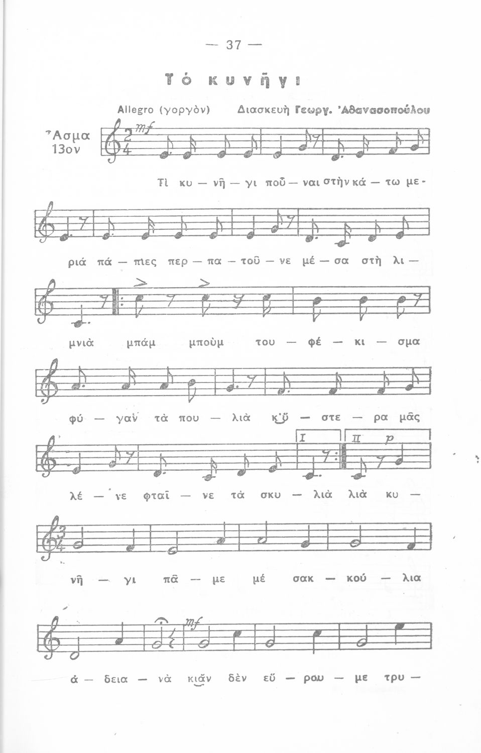 Σχολικό εγχειρίδιο Μουσικής για την Γ' τάξη του οκταταξίου Γυμνασίου. Ο συγγραφέας υπήρξε καθηγητής της Μουσικής. Το βιβλίο περιέχει Θεωρία, Μελωδικές ασκήσεις και διάφορα τραγούδια.
