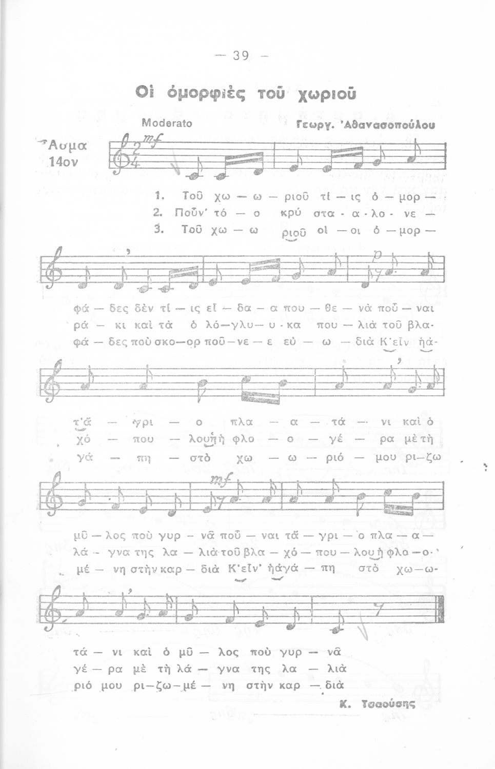 Σχολικό εγχειρίδιο Μουσικής για την Γ' τάξη του οκταταξίου Γυμνασίου. Ο συγγραφέας υπήρξε καθηγητής της Μουσικής. Το βιβλίο περιέχει Θεωρία, Μελωδικές ασκήσεις και διάφορα τραγούδια.