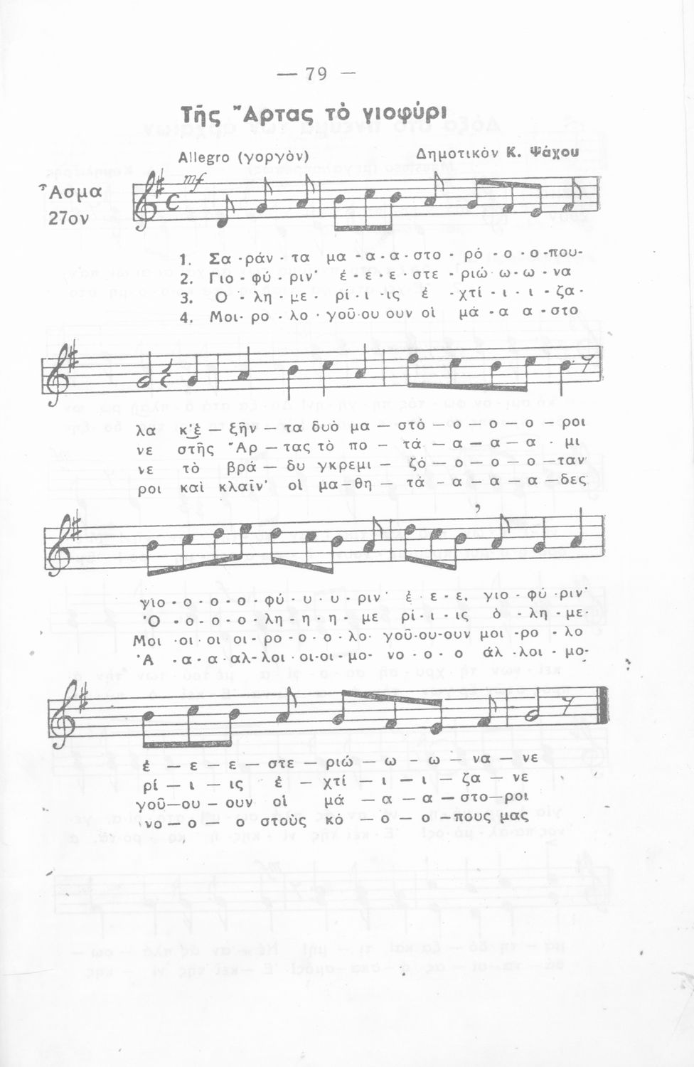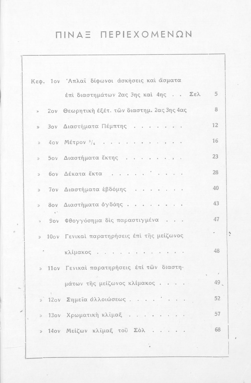 Σχολικό εγχειρίδιο Μουσικής για την Γ' τάξη του οκταταξίου Γυμνασίου. Ο συγγραφέας υπήρξε καθηγητής της Μουσικής. Το βιβλίο περιέχει Θεωρία, Μελωδικές ασκήσεις και διάφορα τραγούδια.