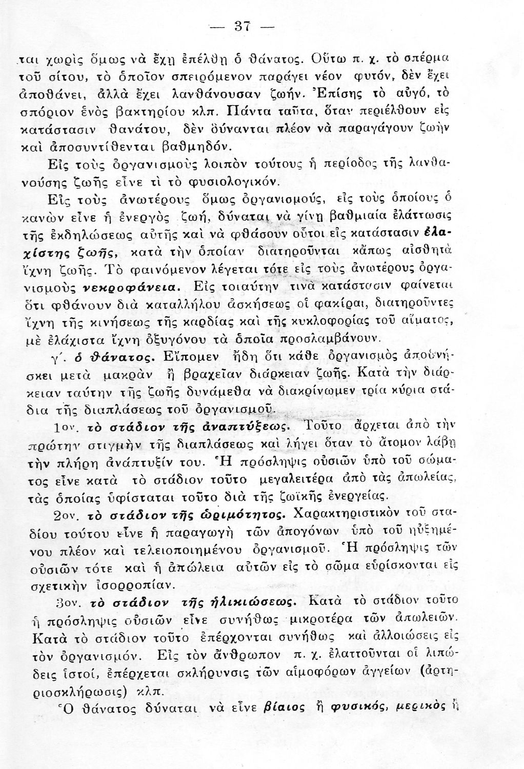 Σχολικό εγχειρίδιο Βιολογίας Δ΄ Γυμνασίου που εστιάζει στις συνθήκες γέννησης, μεταβολής και θανάτου των έμβιων οργανισμών. Ο συγγραφέας ήταν πρώην καθηγητής στο Πανεπιστήμιο Αθηνών.