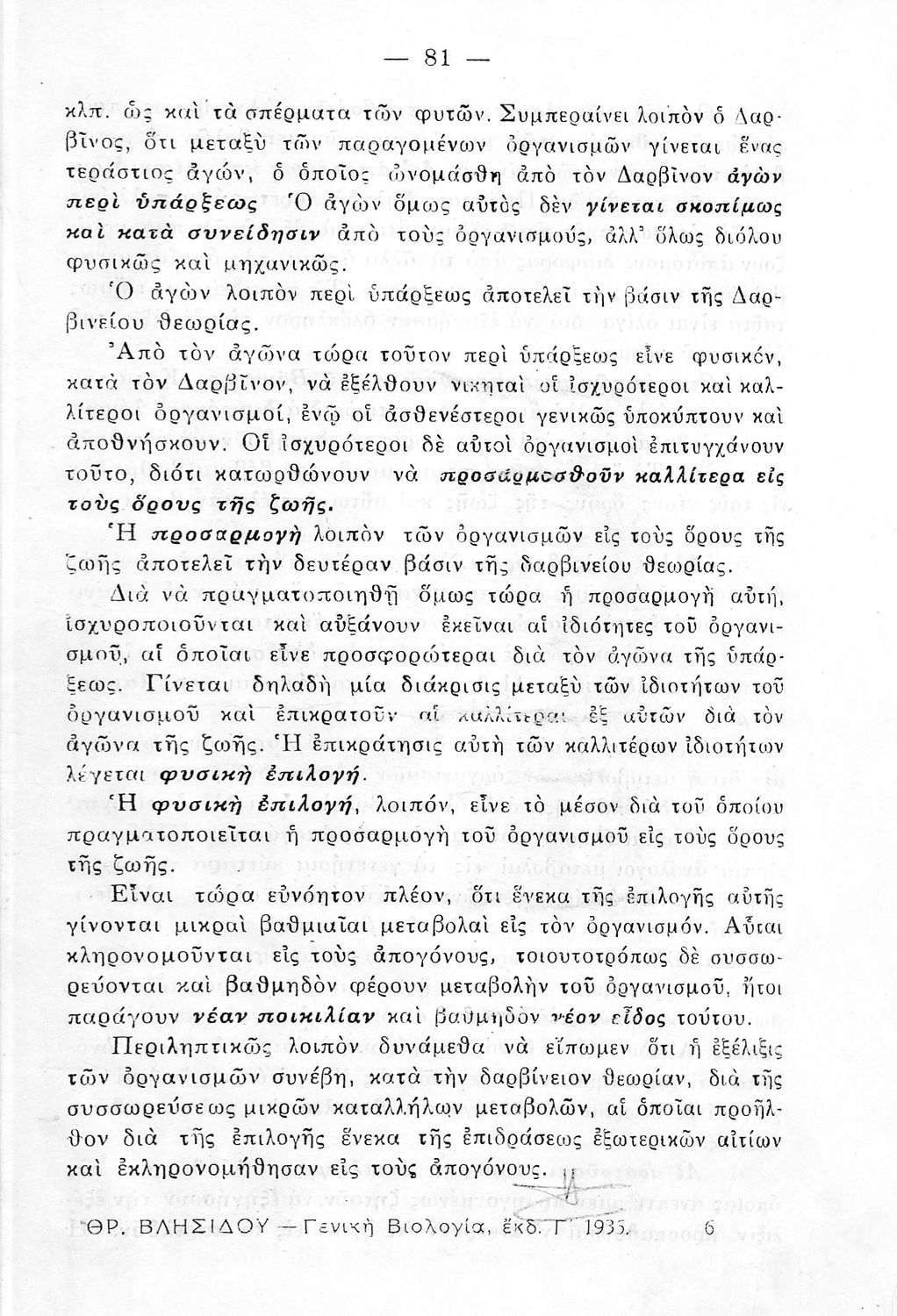 Σχολικό εγχειρίδιο Βιολογίας Δ΄ Γυμνασίου που εστιάζει στις συνθήκες γέννησης, μεταβολής και θανάτου των έμβιων οργανισμών. Ο συγγραφέας ήταν πρώην καθηγητής στο Πανεπιστήμιο Αθηνών.