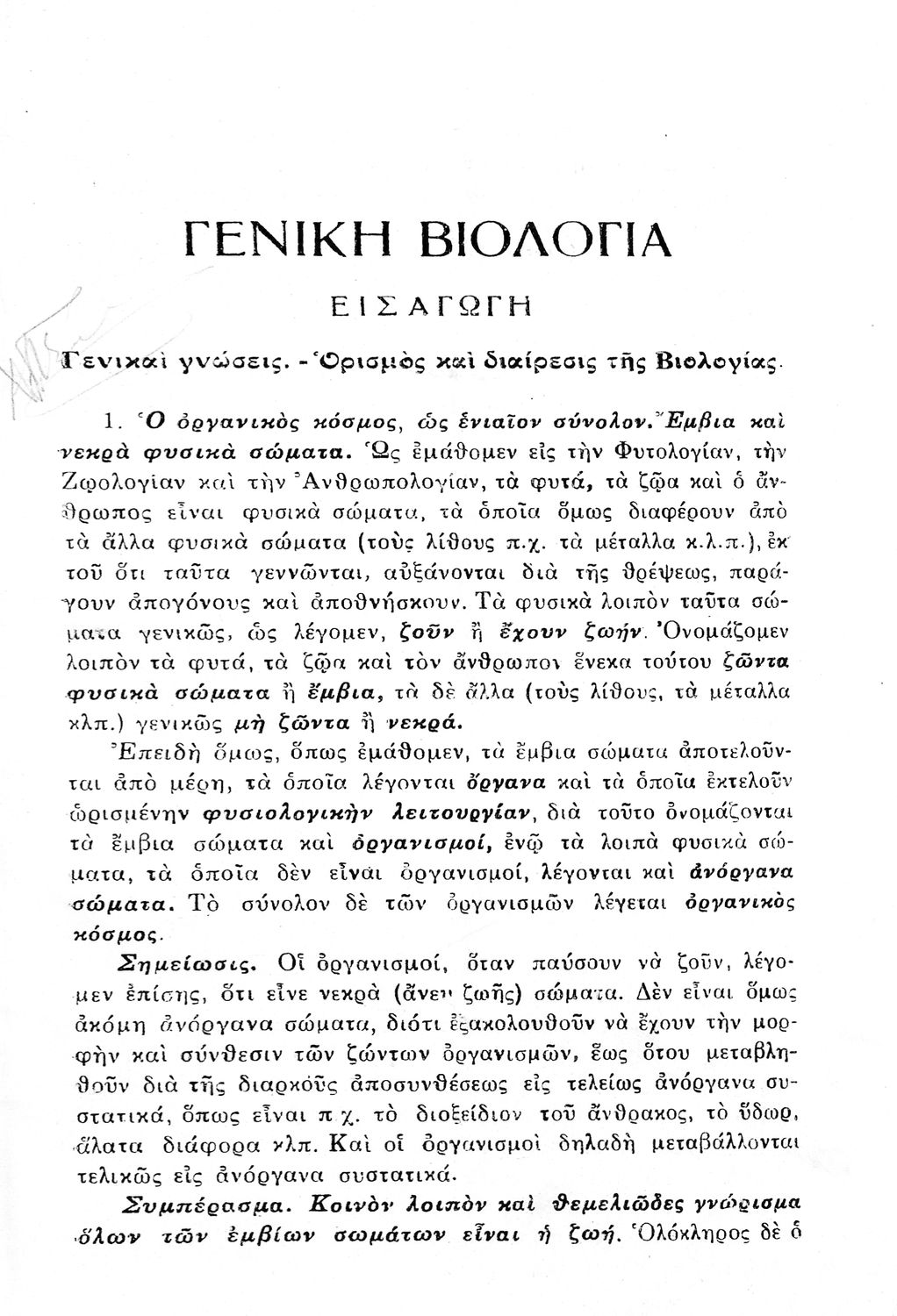 Σχολικό εγχειρίδιο Βιολογίας Δ΄ Γυμνασίου που εστιάζει στις συνθήκες γέννησης, μεταβολής και θανάτου των έμβιων οργανισμών. Ο συγγραφέας ήταν πρώην καθηγητής στο Πανεπιστήμιο Αθηνών.