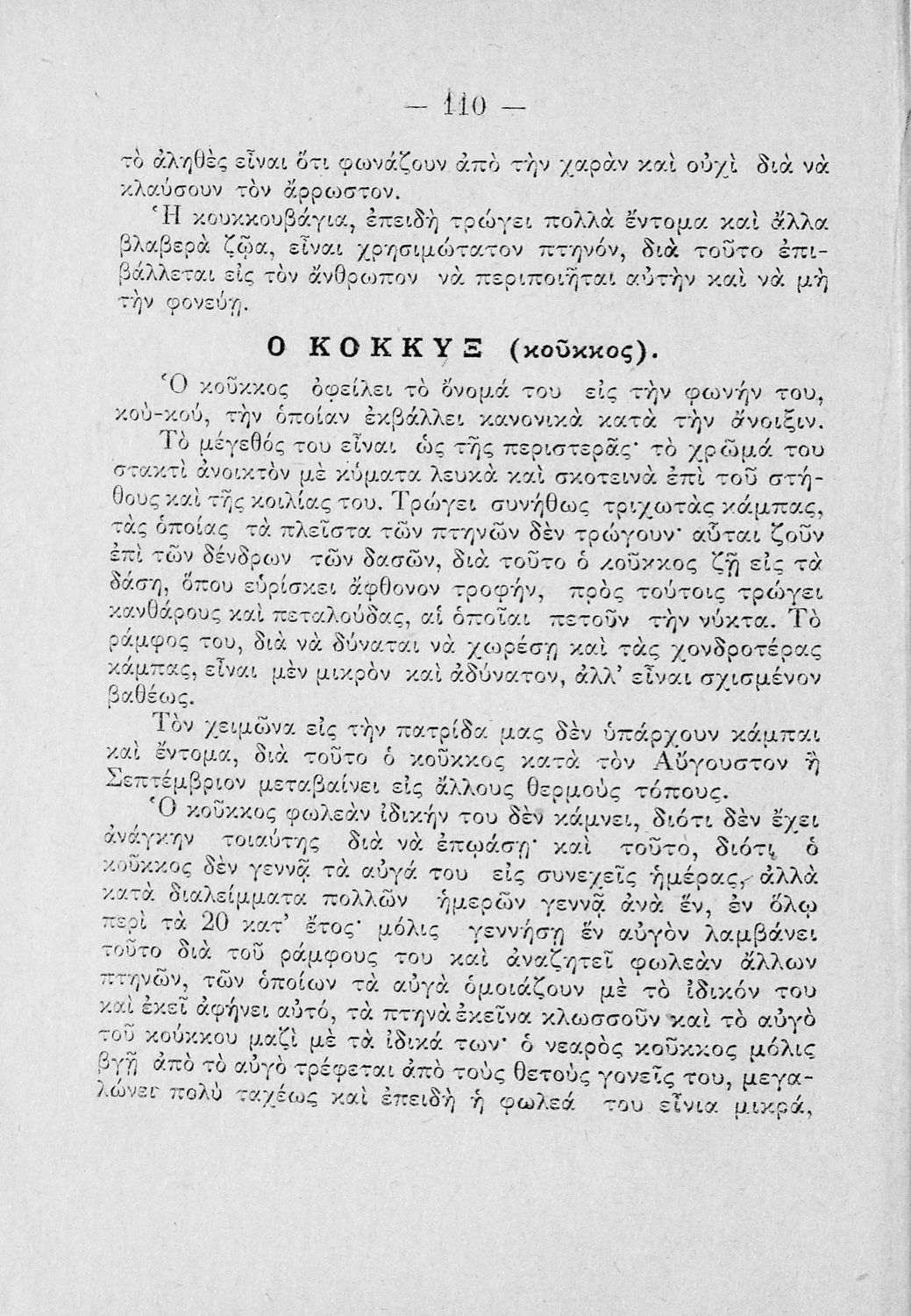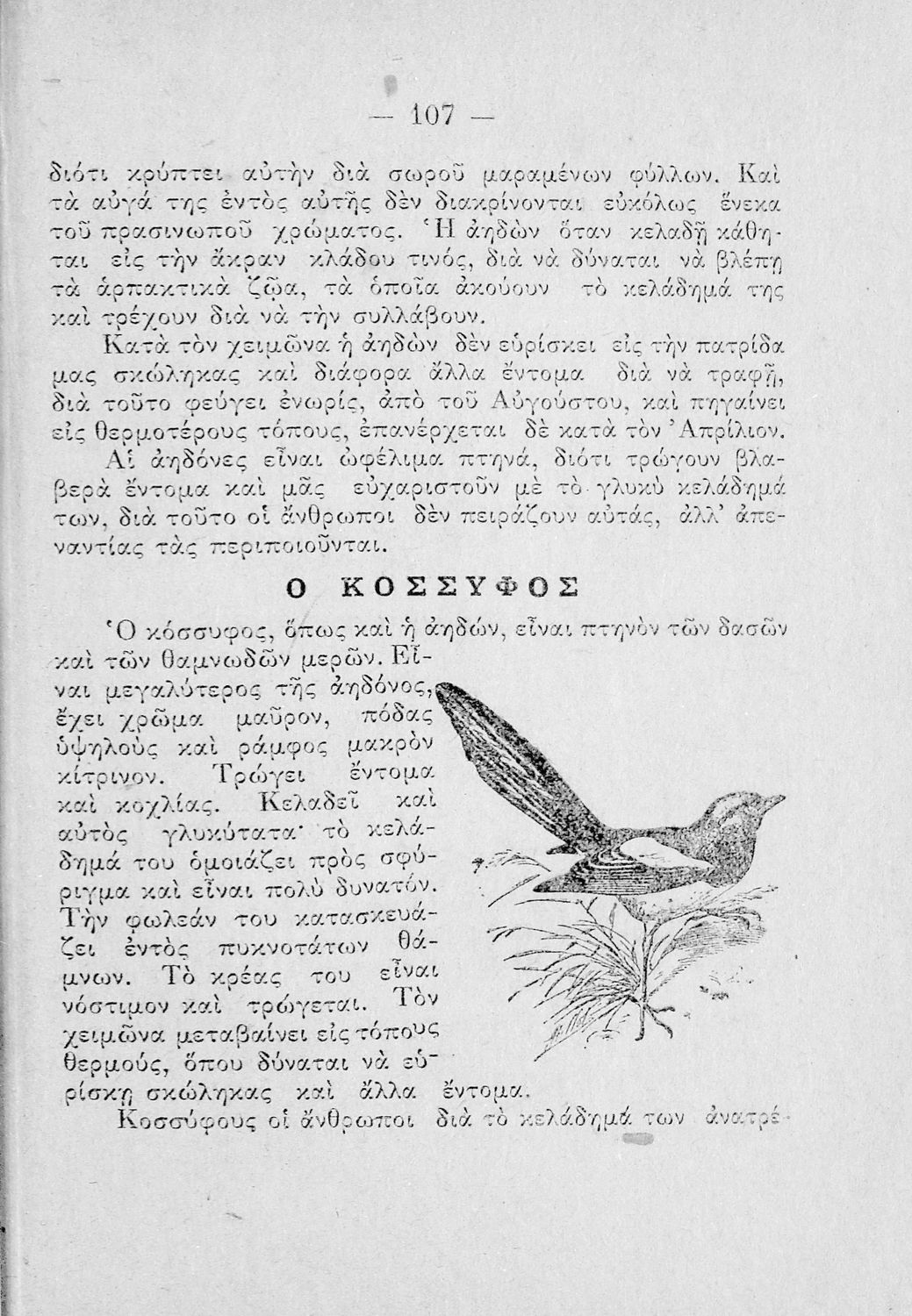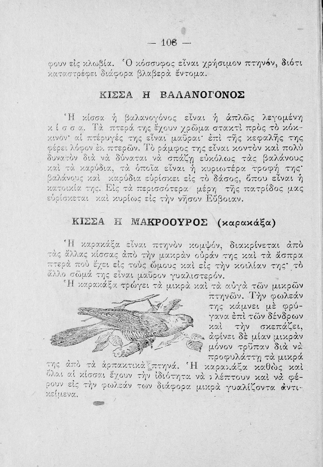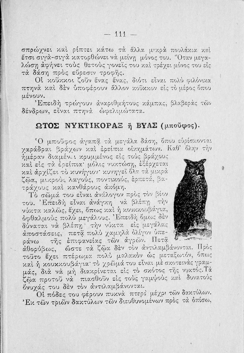Βαθμίδα εκπαίδευσης: Πρωτοβάθμια Τάξη: Γ' Δημοτικού / Δ' Δημοτικού Μάθημα: Ζωολογία Γλώσσα: Απλή καθαρεύουσα Παρουσίαση περιεχομένου: Μαθητικό βοήθημα Ζωολογίας για τις Γ΄ και Δ΄ Δημοτικού που αποτελείται από μικρά κεφάλαια τα οποία είναι αφιερωμένα στην περιγραφή ενός ζώου. |