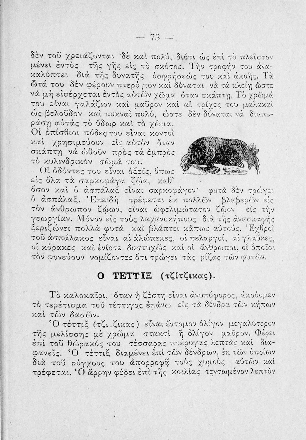 Μαθητικό βοήθημα Ζωολογίας για τις Γ΄ και Δ΄ Δημοτικού που αποτελείται από μικρά κεφάλαια τα οποία είναι αφιερωμένα στην περιγραφή ενός ζώου.