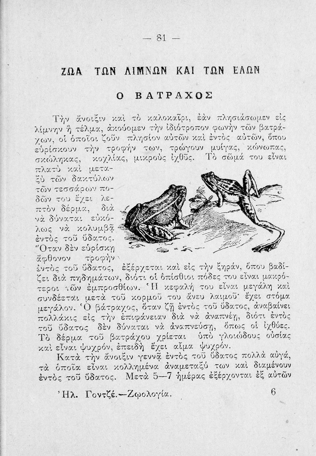 Σχολικό εγχειρίδιο Ζωολογίας των Γυμνασίων, Διδασκαλείων και Παρθεναγωγείων. Στο πρώτο μέρος του βιβλίου παρουσιάζεται η δομή του ανθρώπινου σώματος και τα διάφορα συστήματα του ανθρώπινου οργανισμού, όπως το ...