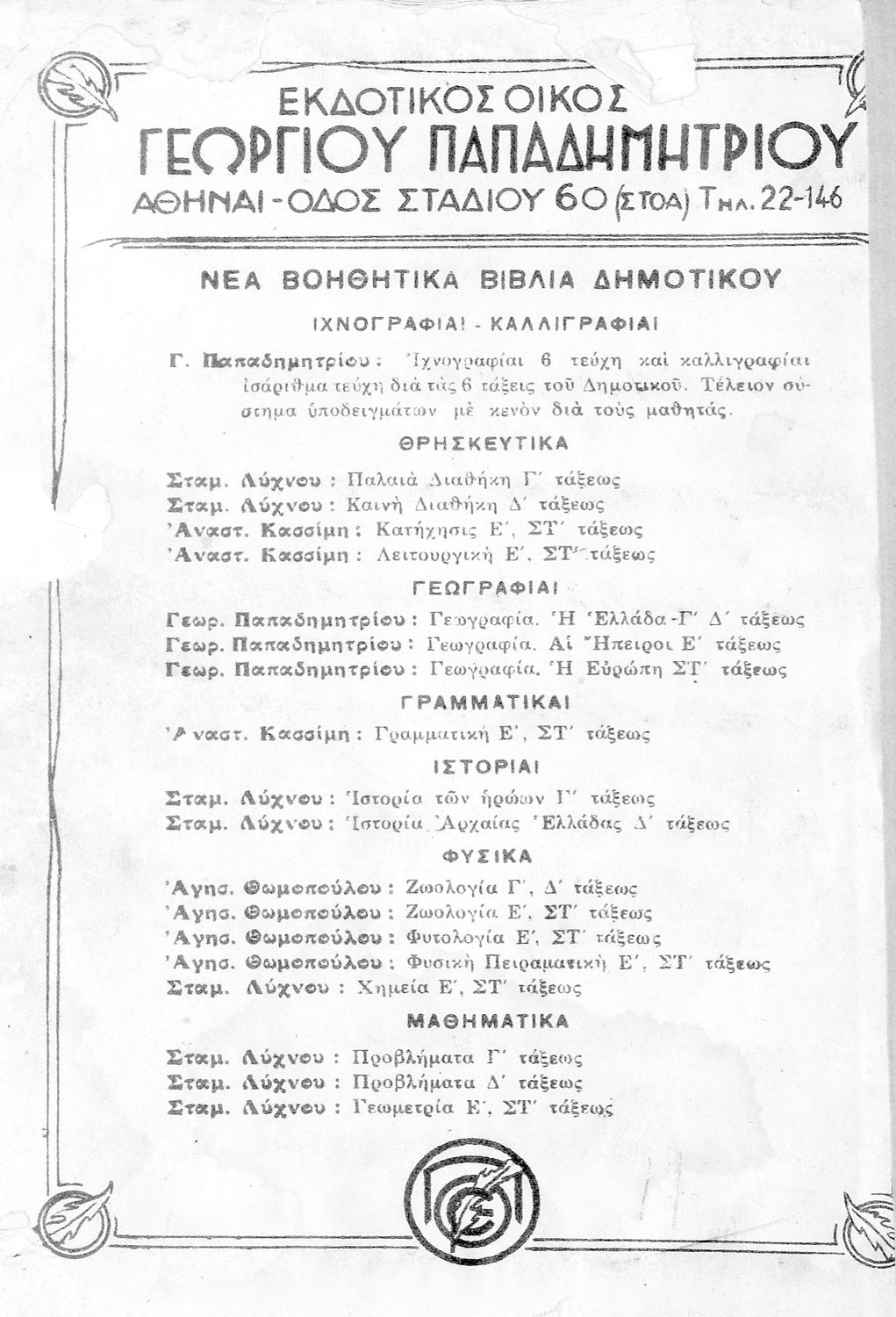 Εκδότης: Γεώργιος Παπαδημητρίου Έτος έκδοσης: 1936 Τόπος έκδοσης: Αθήνα |