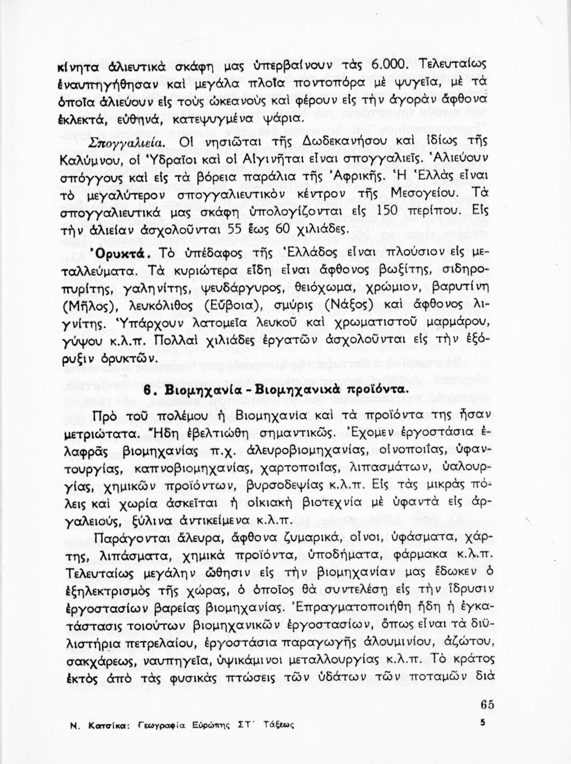 Σχολικό εγχειρίδιο Γεωγραφίας ΣΤ΄ Δημοτικού που περιλαμβάνει στοιχεία γενικής και μαθηματικής γεωγραφίας και εξετάζει από γεωφυσική και πολιτική πλευρά τις χώρες της Ευρώπης. Φέρει το σύμβολο της δικτατορίας.